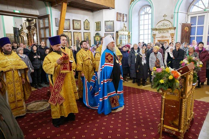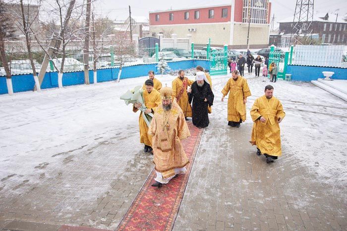 К началу богослужения для молитвенного поклонения и духовного укрепления верующих был доставлен ковчег с честными мощами блаженной старицы Матроны Московской. Принесение святыни на землю Рудного Алтая совершается в рамках празднования 20-летия учреждения Казахстанского Митрополичьего округа и 100-летия со дня архипастырской хиротонии священномученика Александра, архиепископа Семипалатинского.