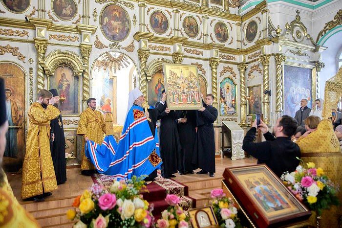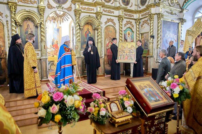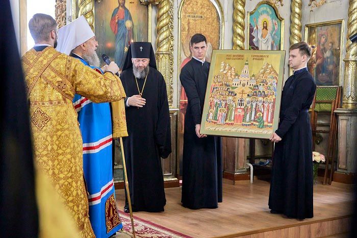 Его Высокопреосвященство передал в дар главному храму города Семипалатинска икону Собора новомучеников и исповедников Казахстанских. Священный дар принял протоиерей Евгений Яганов.