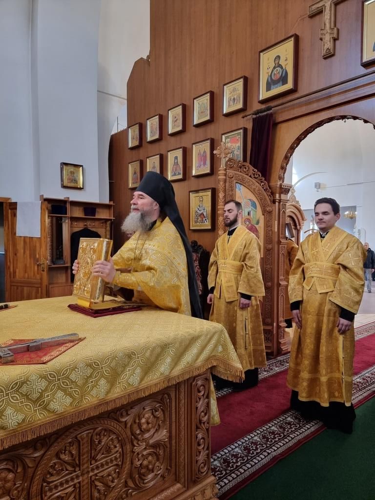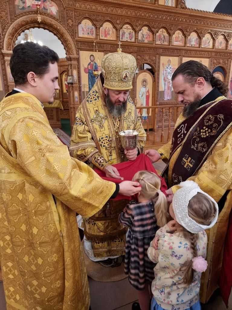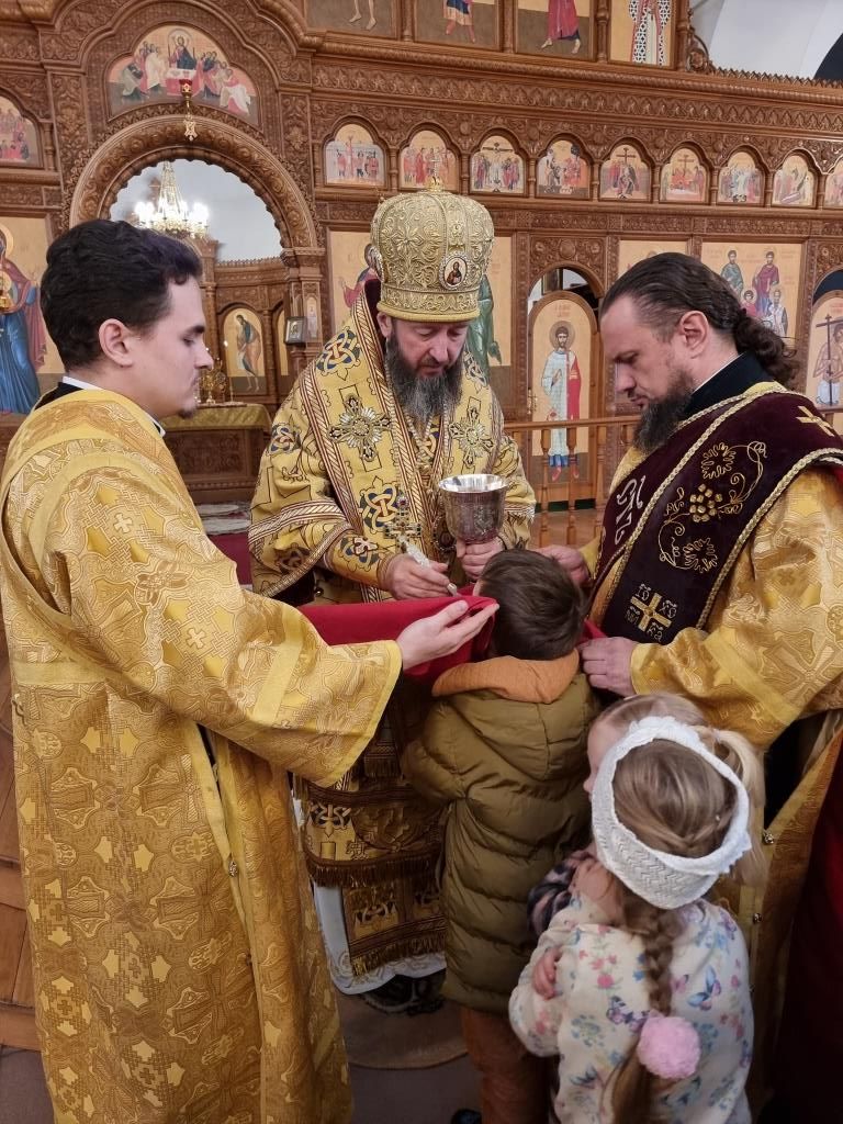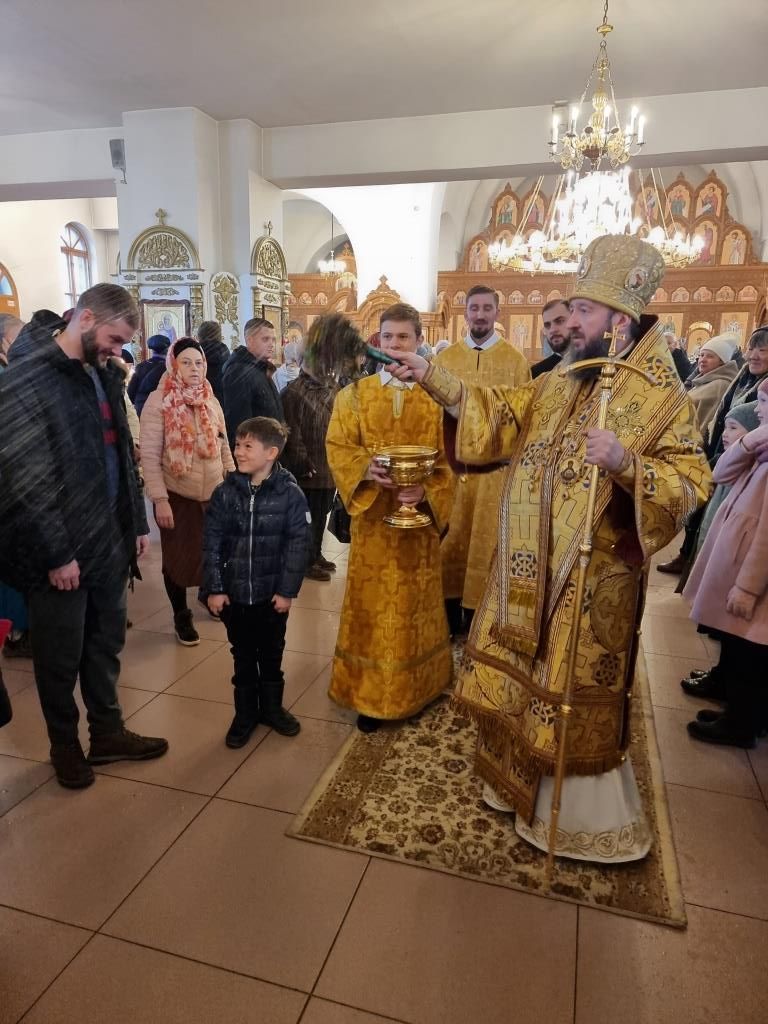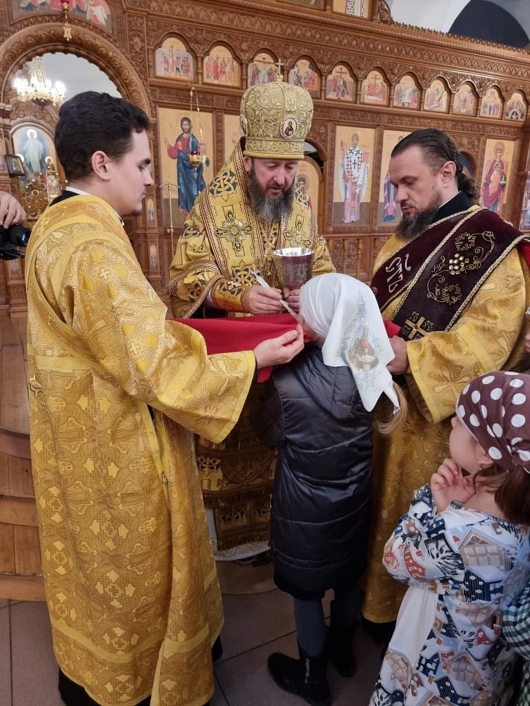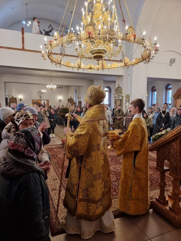 Перед причастием мирян проповедовал священник Виталий Адаменков. После завершения богослужения Владыка Амфилохий обратился к прихожанам со словами Архипастырского наставления.