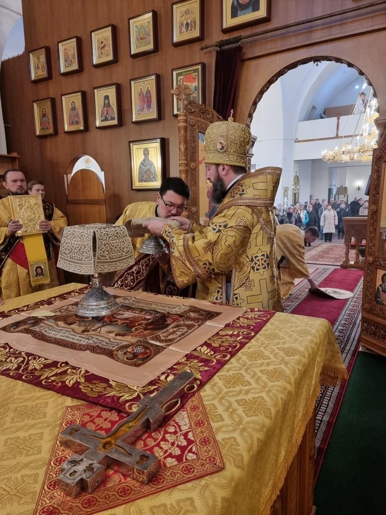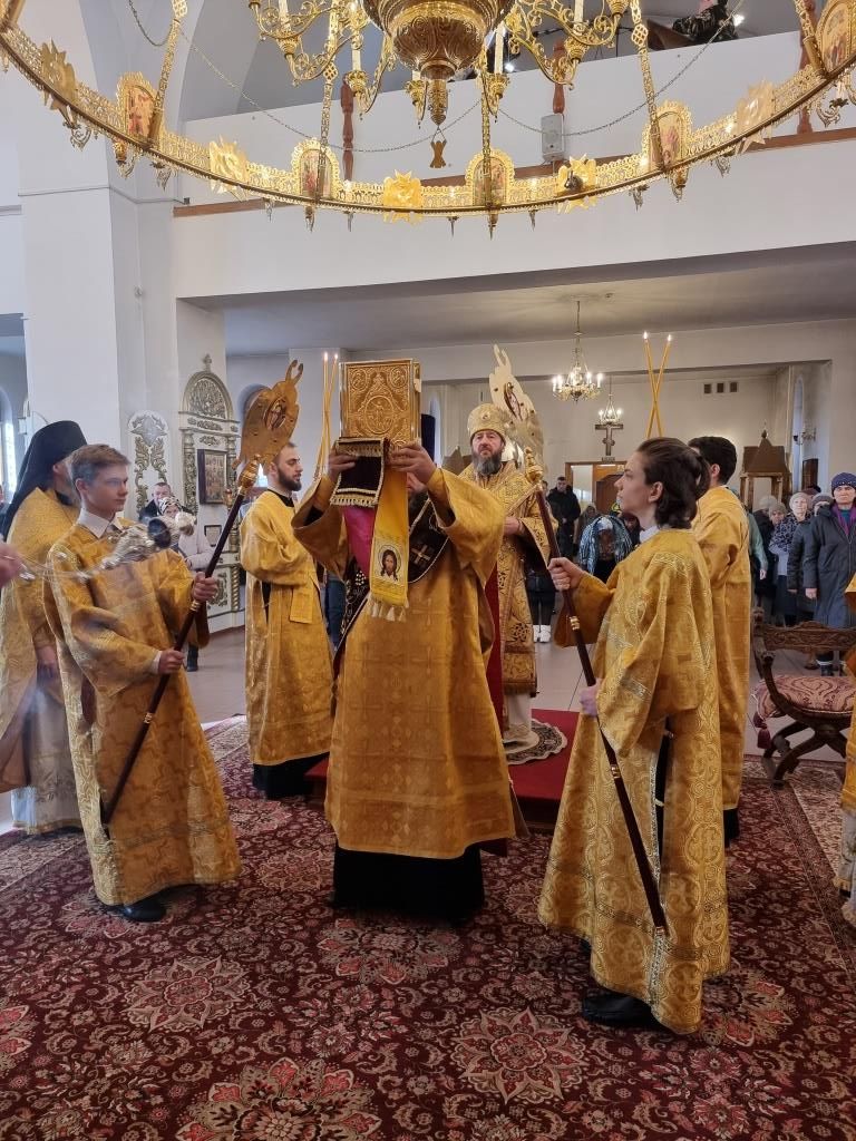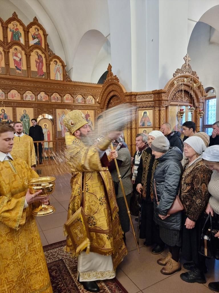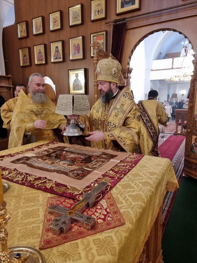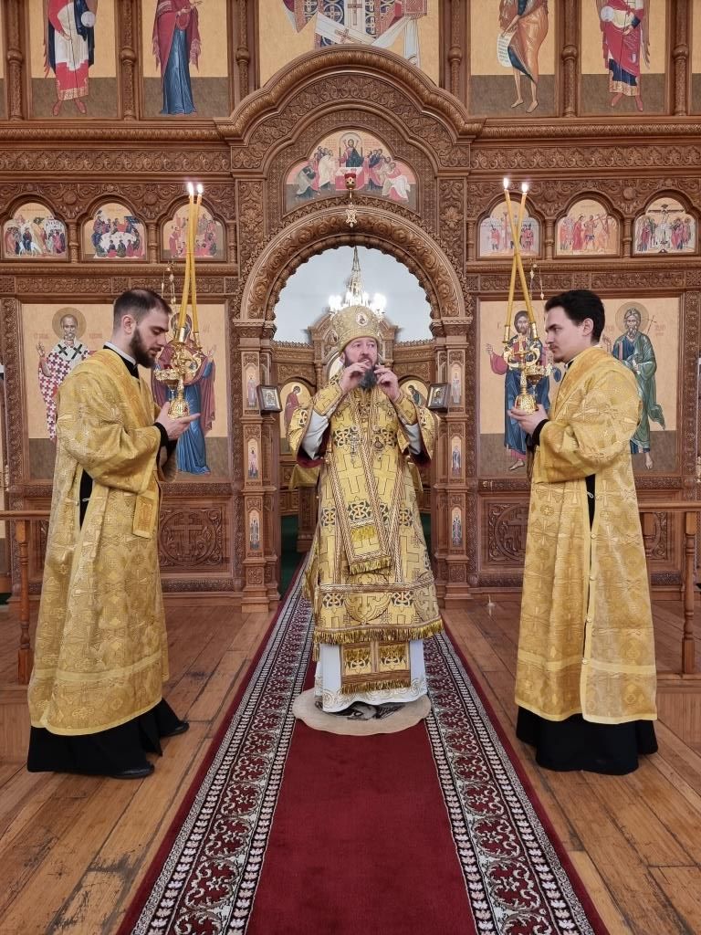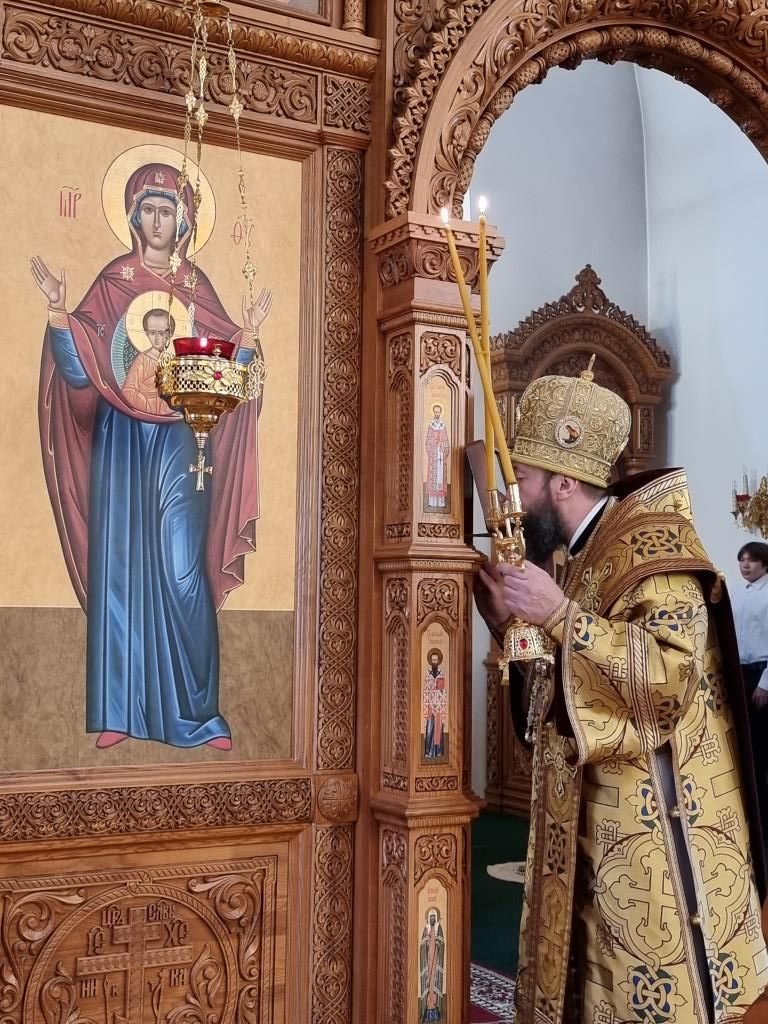 Перед причастием мирян проповедовал священник Виталий Адаменков. После завершения богослужения Владыка Амфилохий обратился к прихожанам со словами Архипастырского наставления.