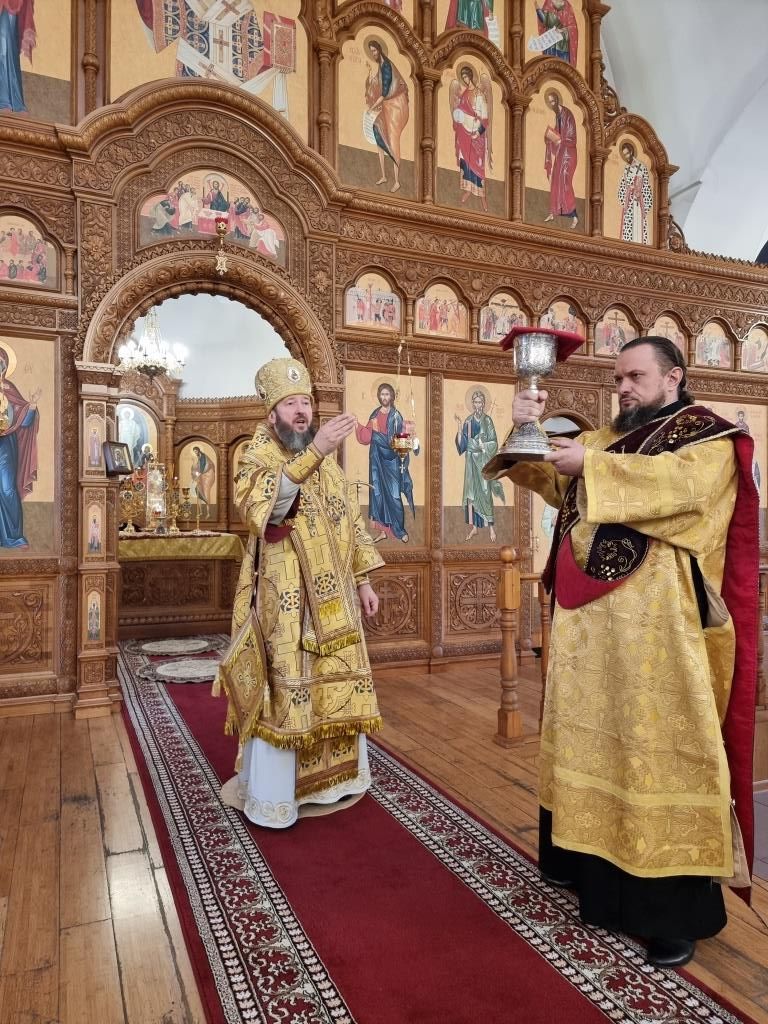 В воскресный день архиепископ Усть-Каменогорский и Семипалатинский Амфилохий совершил Божественную Литургию святителя Иоанна Златоуста в Андреевском кафедральном соборе города Усть-Каменогорска.