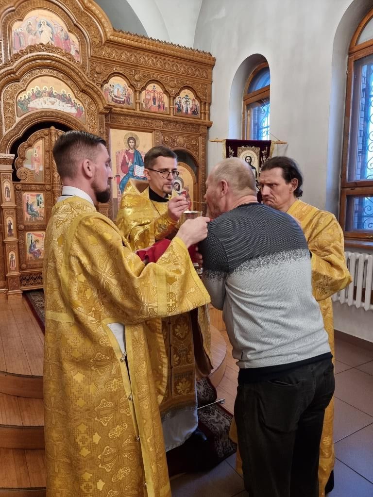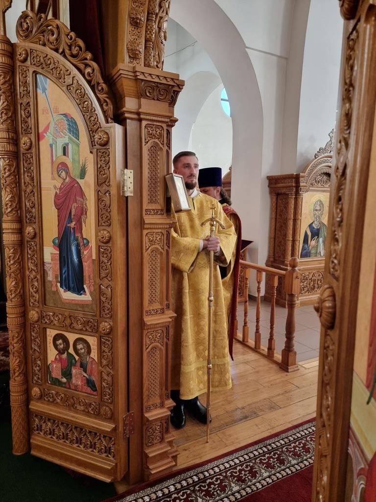 Песнопения Божественной Литургии исполнял хор кафедрального собора под управлением регента Н. Романцовой. За воскресным богослужением молились прихожане кафедрального собора, преподаватели и воспитанники Центральной воскресной школы, сотрудники епархиального управления и насельники Свято-Троицкого мужского монастыря города Усть-Каменогорска. Перед причастием мирян проповедовал священник Роман Подрезов.