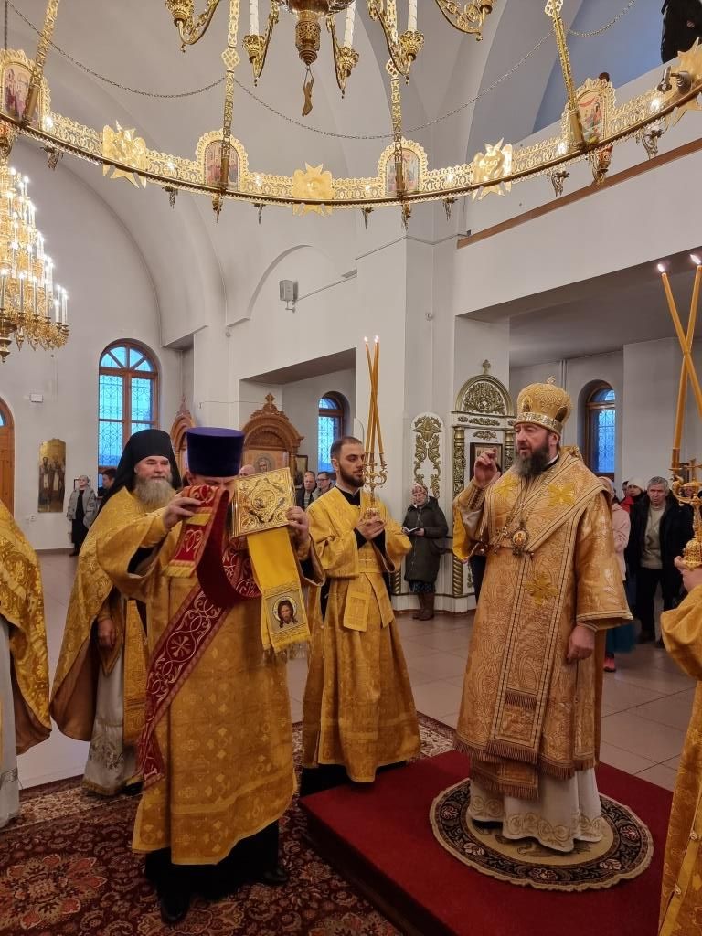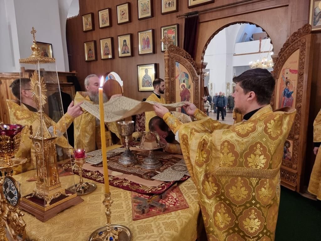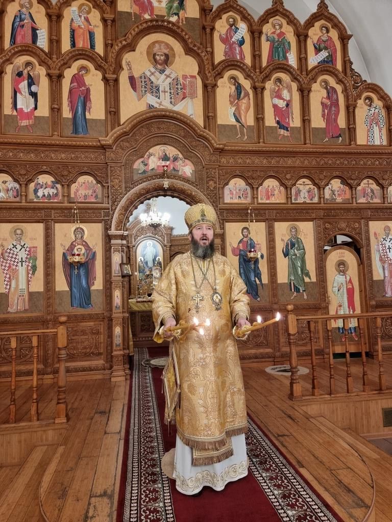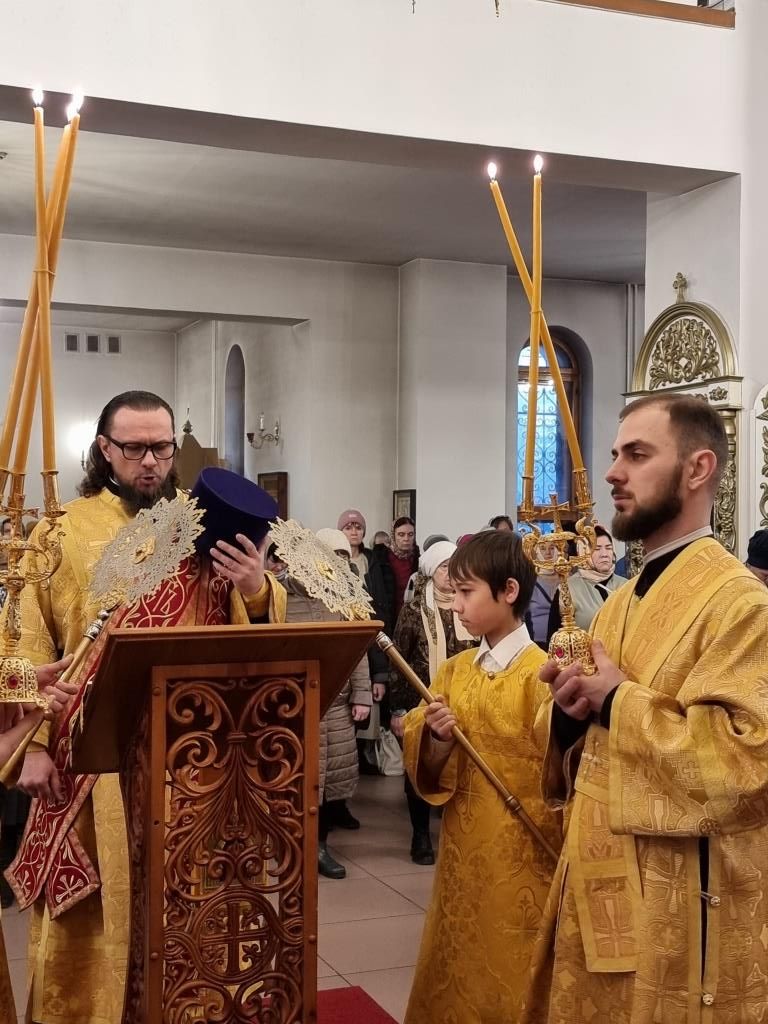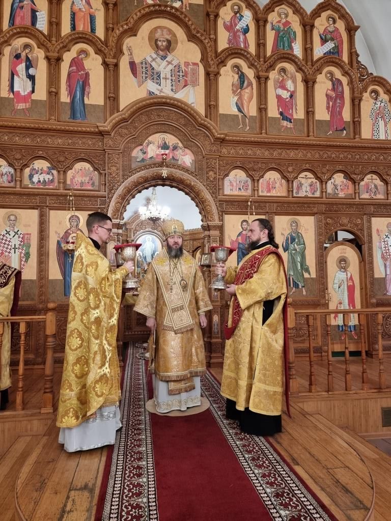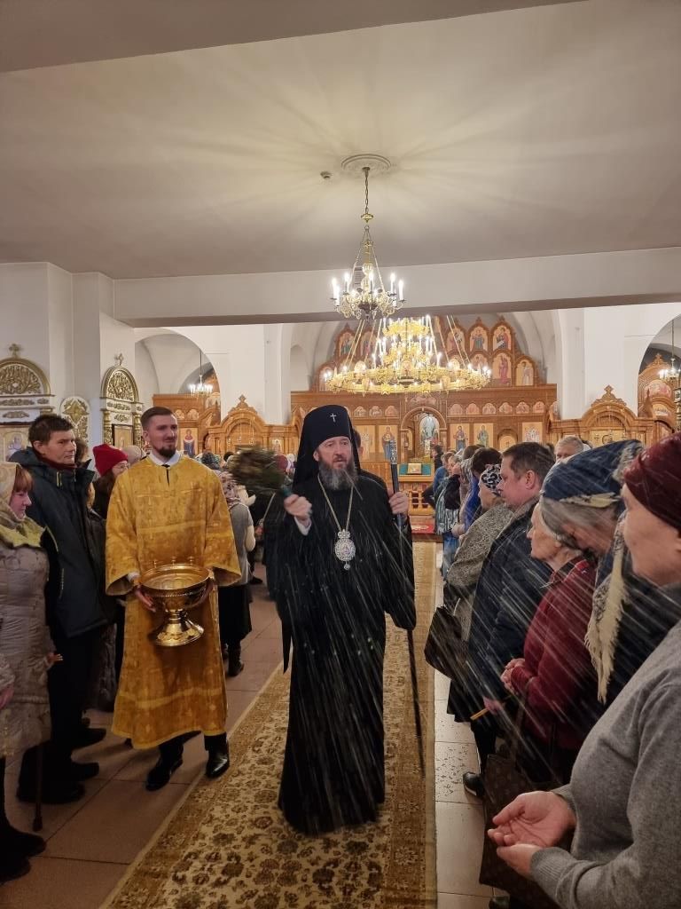 Архипастырю сослужили: ключарь кафедрального собора иеромонах Никодим (Авдеев), клирики кафедрального собора иерей Роман Подрезов и иерей Константин Дьяков, секретарь епархии диакон Илия Кван, протодиакон Андрей Дудник.