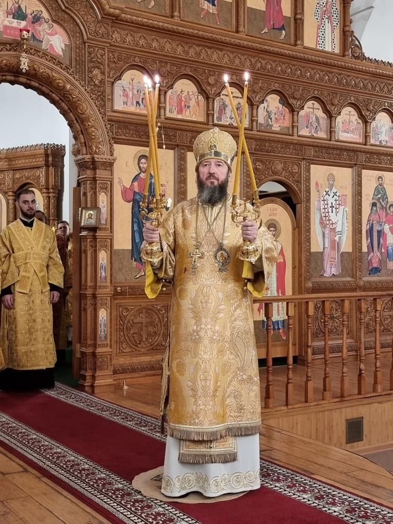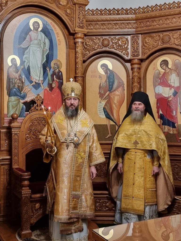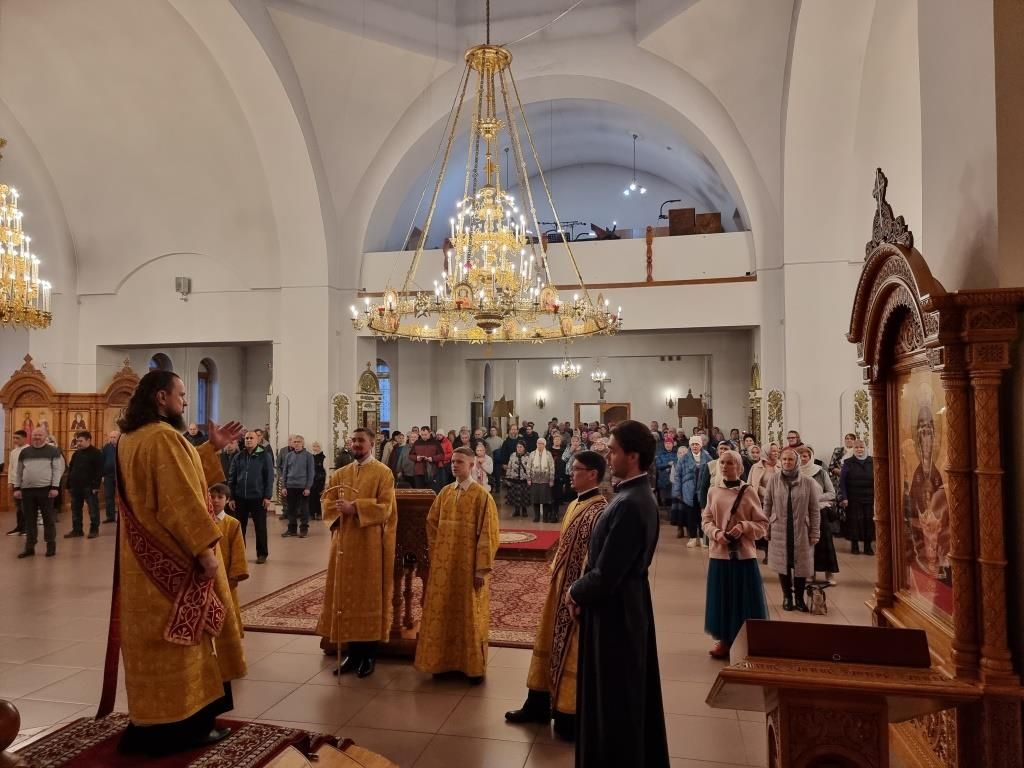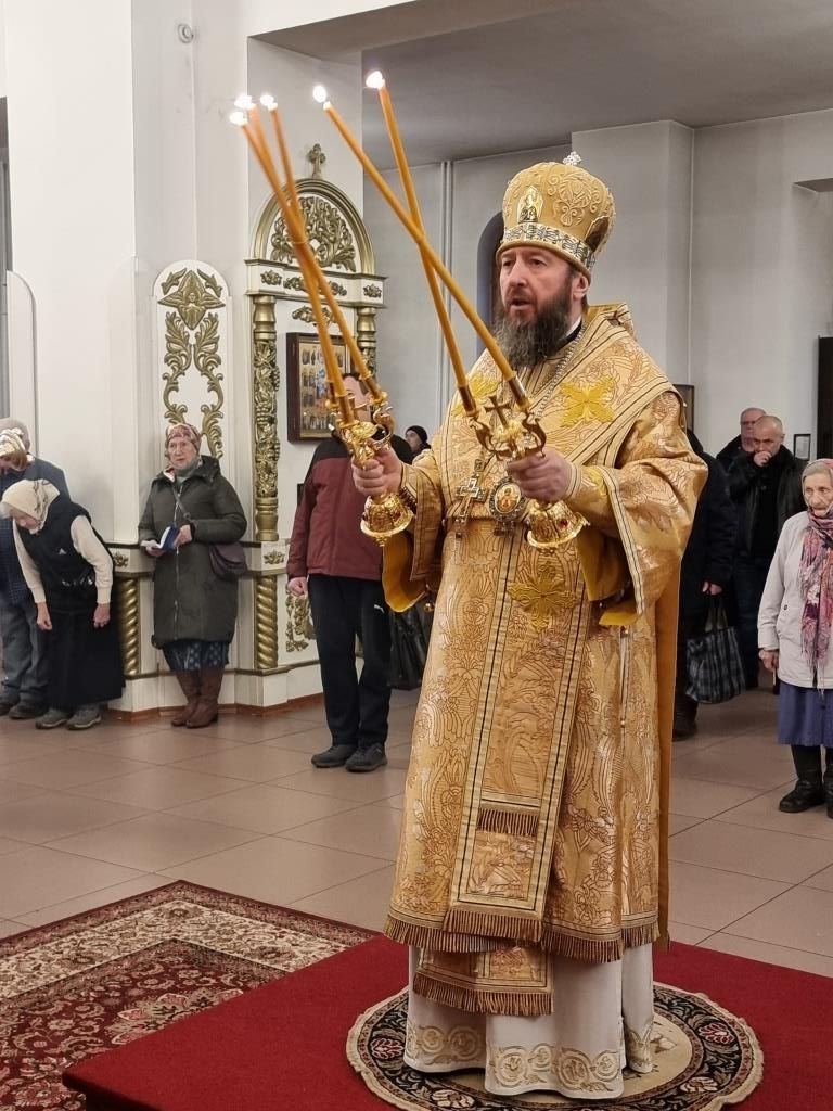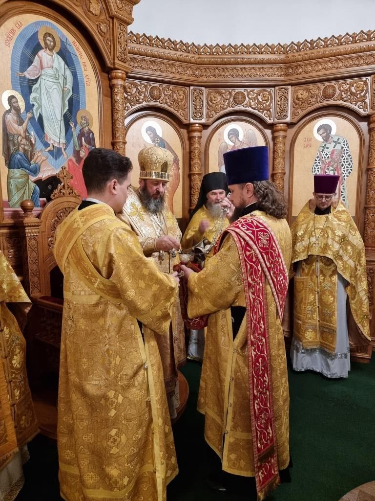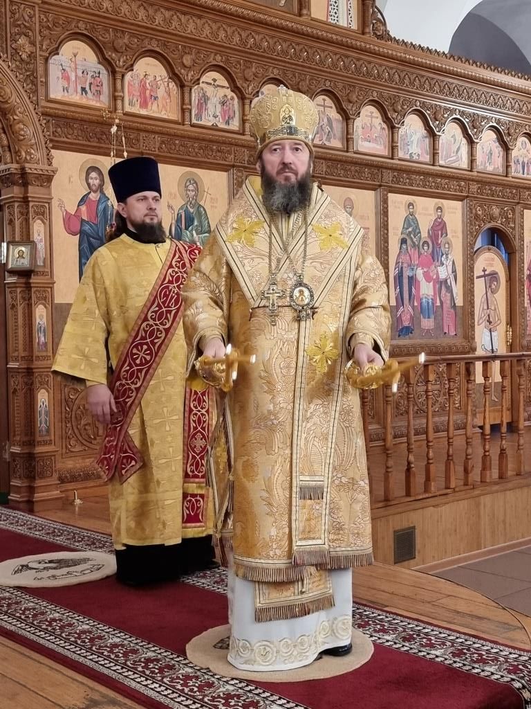 Архипастырю сослужили: ключарь кафедрального собора иеромонах Никодим (Авдеев), клирики кафедрального собора иерей Роман Подрезов и иерей Константин Дьяков, секретарь епархии диакон Илия Кван, протодиакон Андрей Дудник.