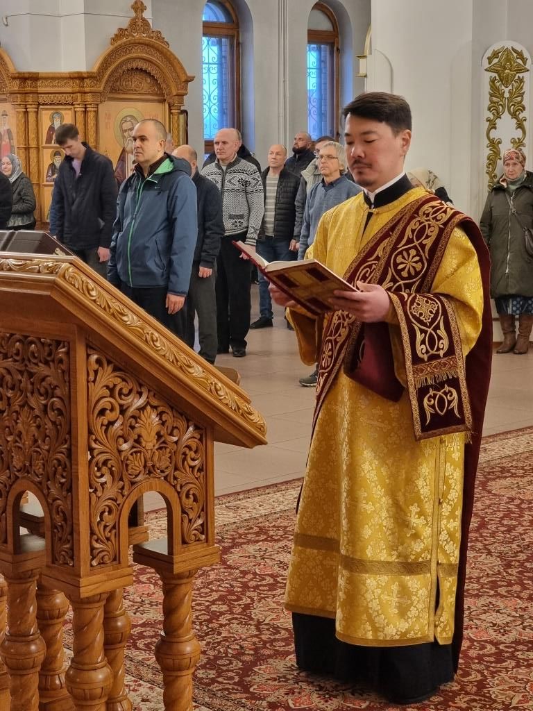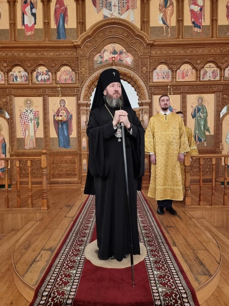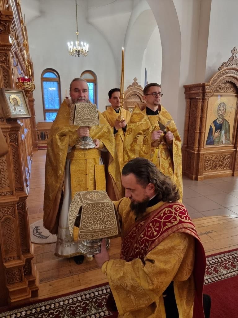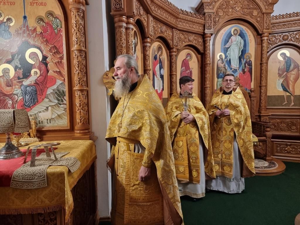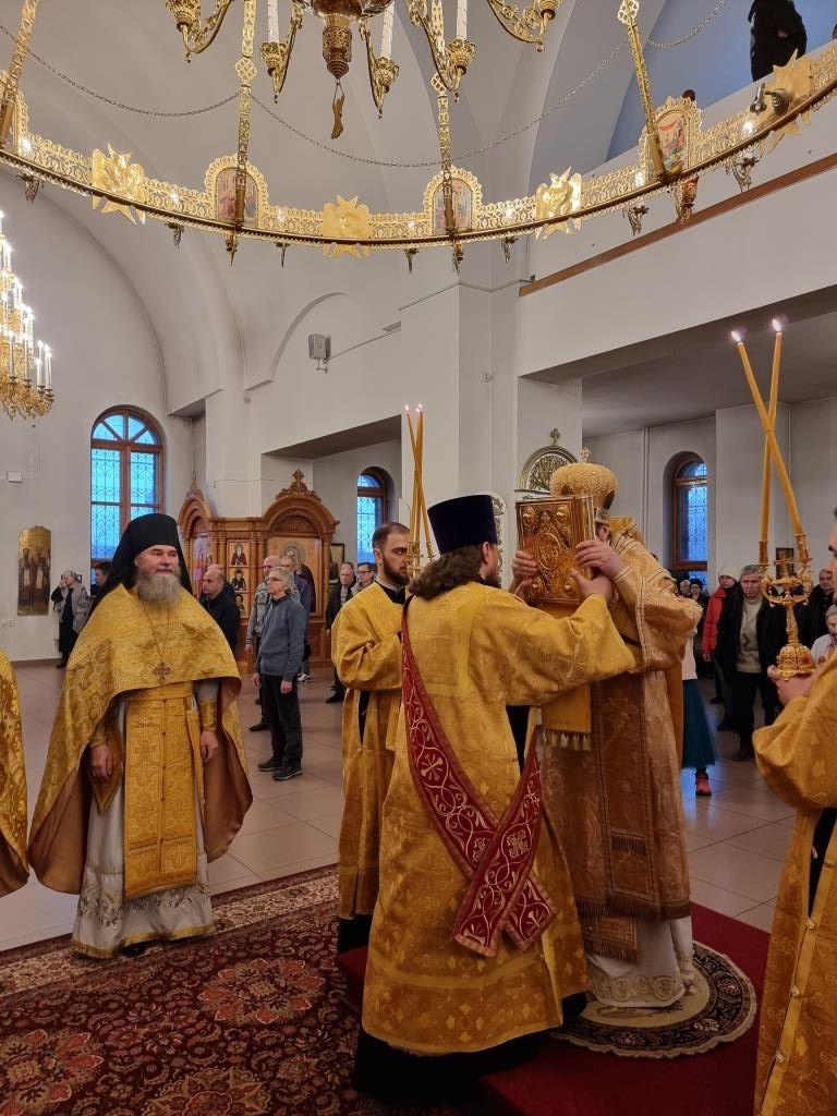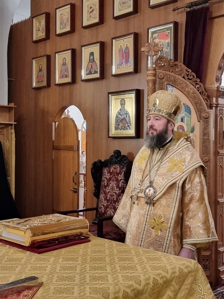 Архипастырю сослужили: ключарь кафедрального собора иеромонах Никодим (Авдеев), клирики кафедрального собора иерей Роман Подрезов и иерей Константин Дьяков, секретарь епархии диакон Илия Кван, протодиакон Андрей Дудник.
