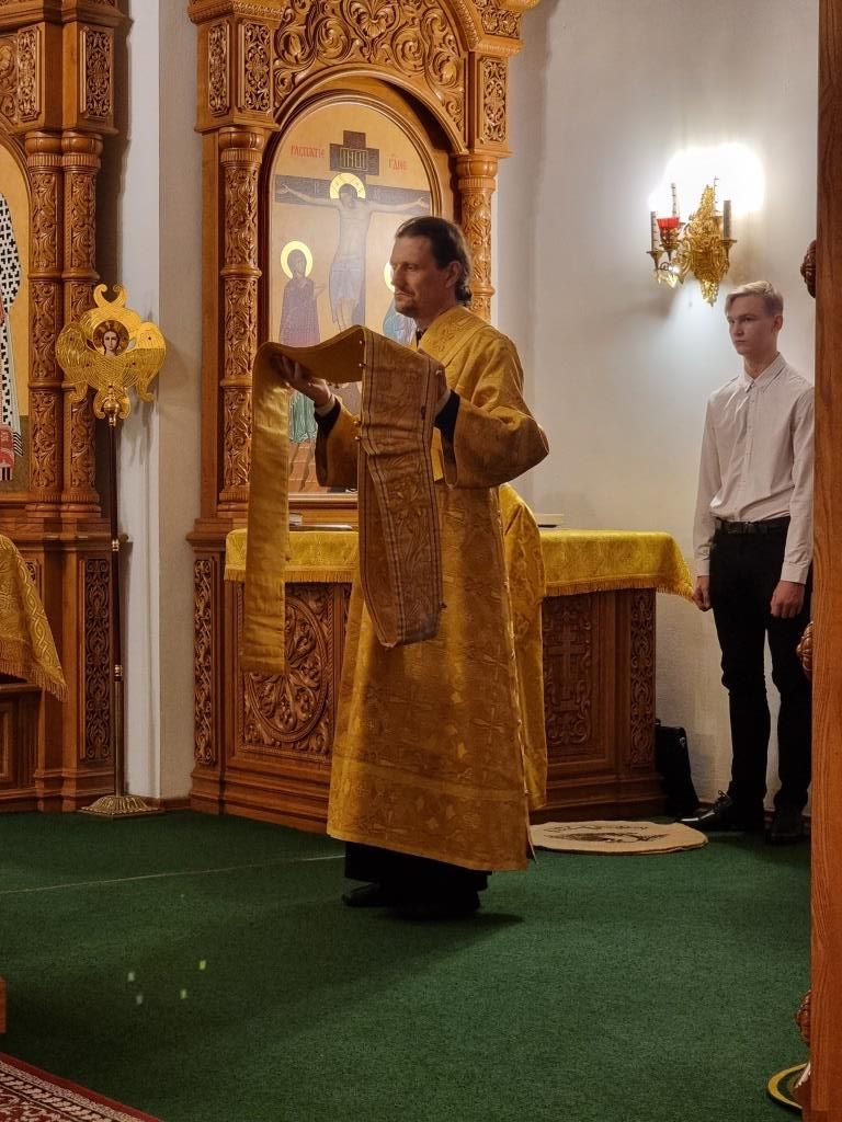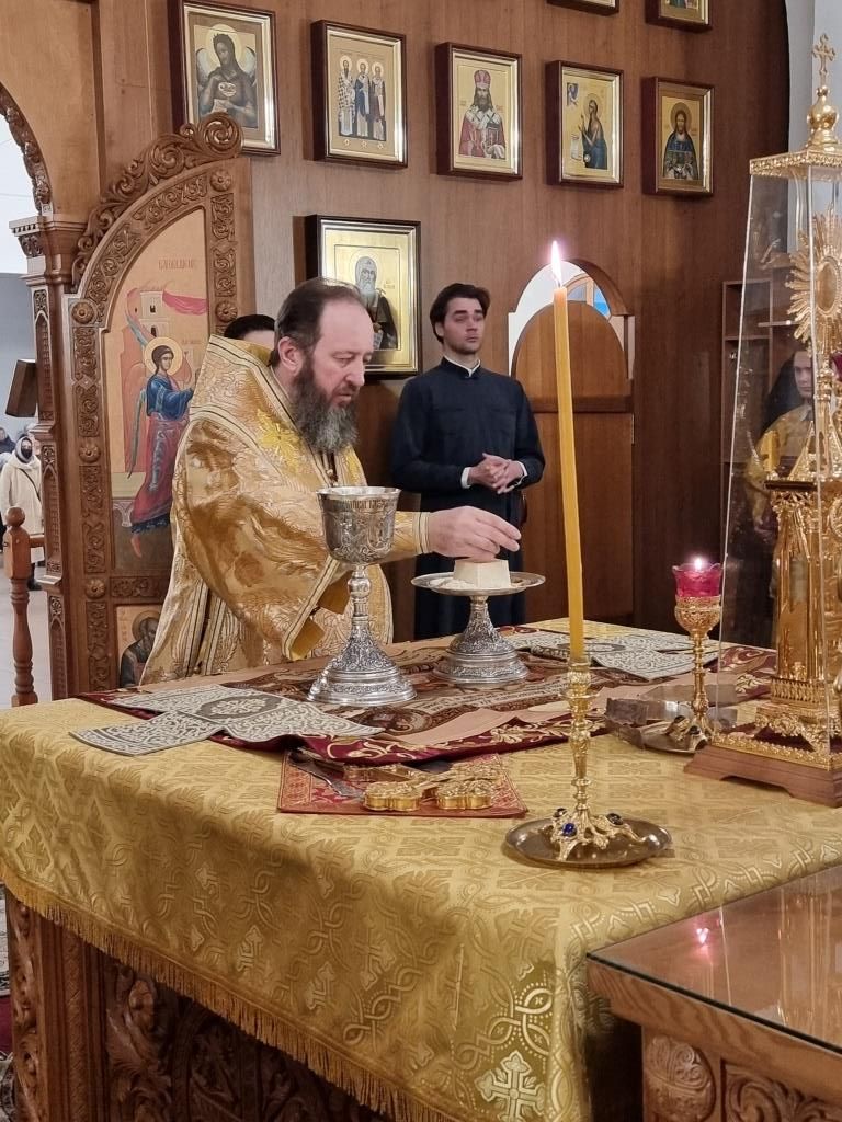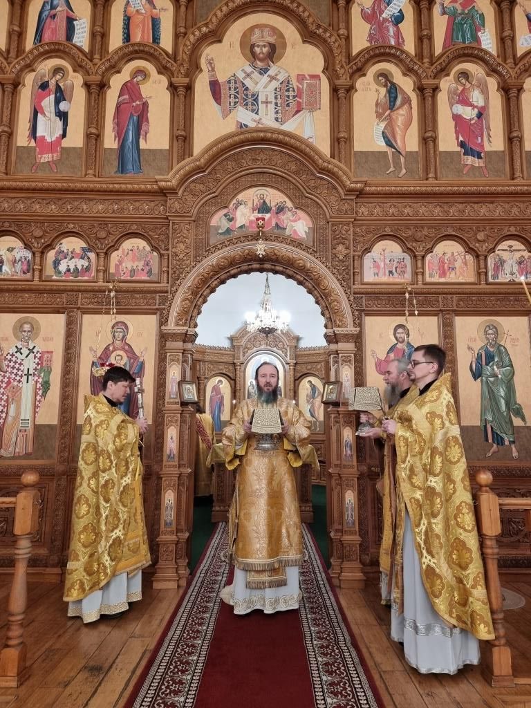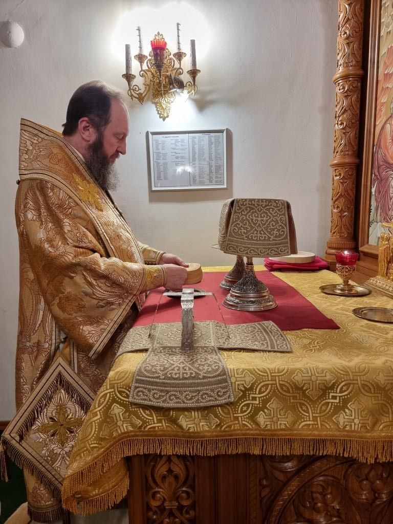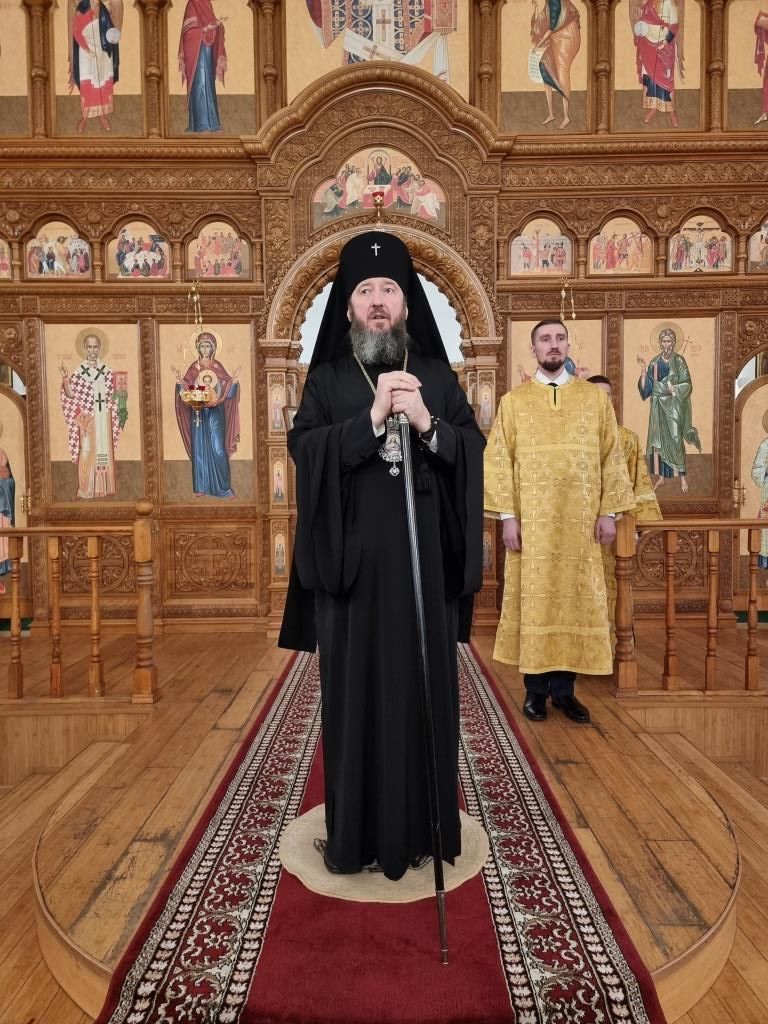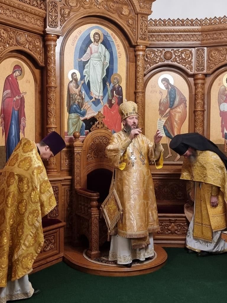 Архипастырю сослужили: ключарь кафедрального собора иеромонах Никодим (Авдеев), клирики кафедрального собора иерей Роман Подрезов и иерей Константин Дьяков, секретарь епархии диакон Илия Кван, протодиакон Андрей Дудник.