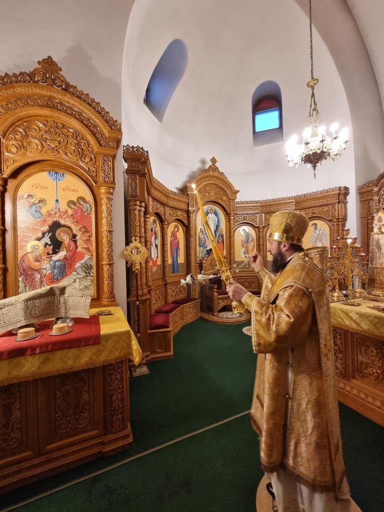 После окончания воскресного богослужения Высокопреосвященнейший Владыка поздравил всех собравшихся с праздником и обратился к прихожанам со словами поучения.