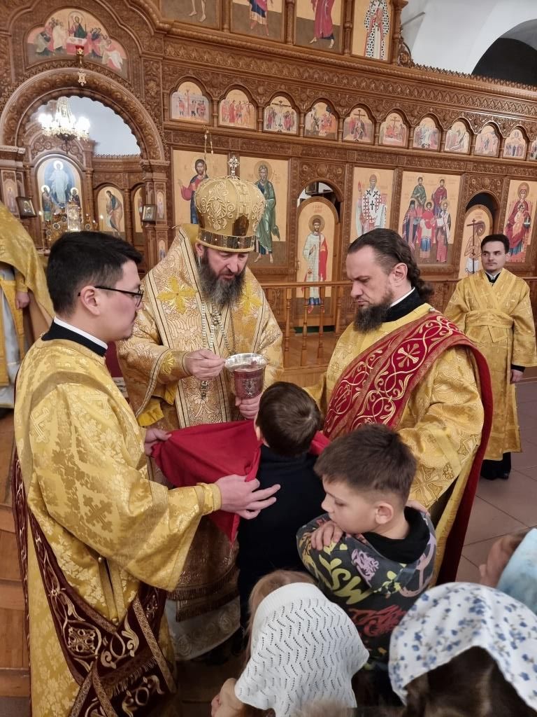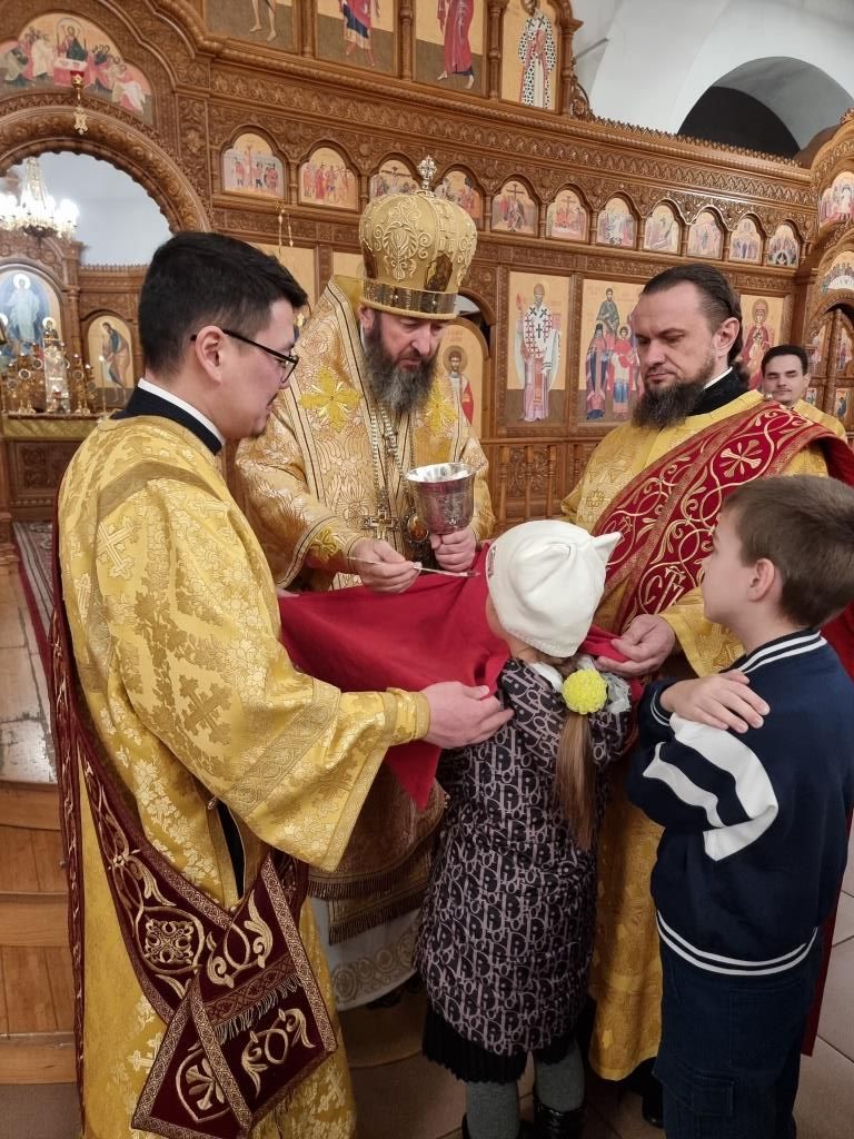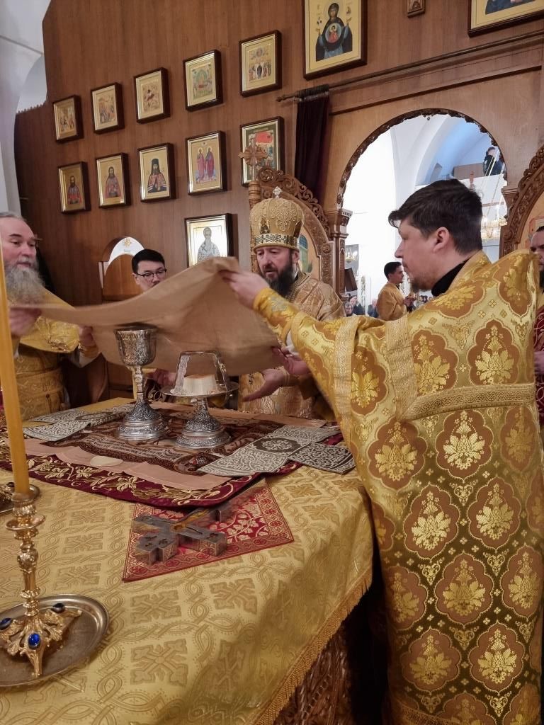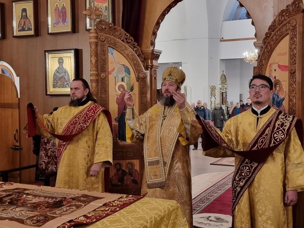 Высокопреосвященнейший архиепископ Усть-Каменогорский и Семипалатинский Амфилохий возглавил служение Божественной Литургии святителя Иоанна Златоуста в Андреевском кафедральном соборе столицы Восточного Казахстана.
