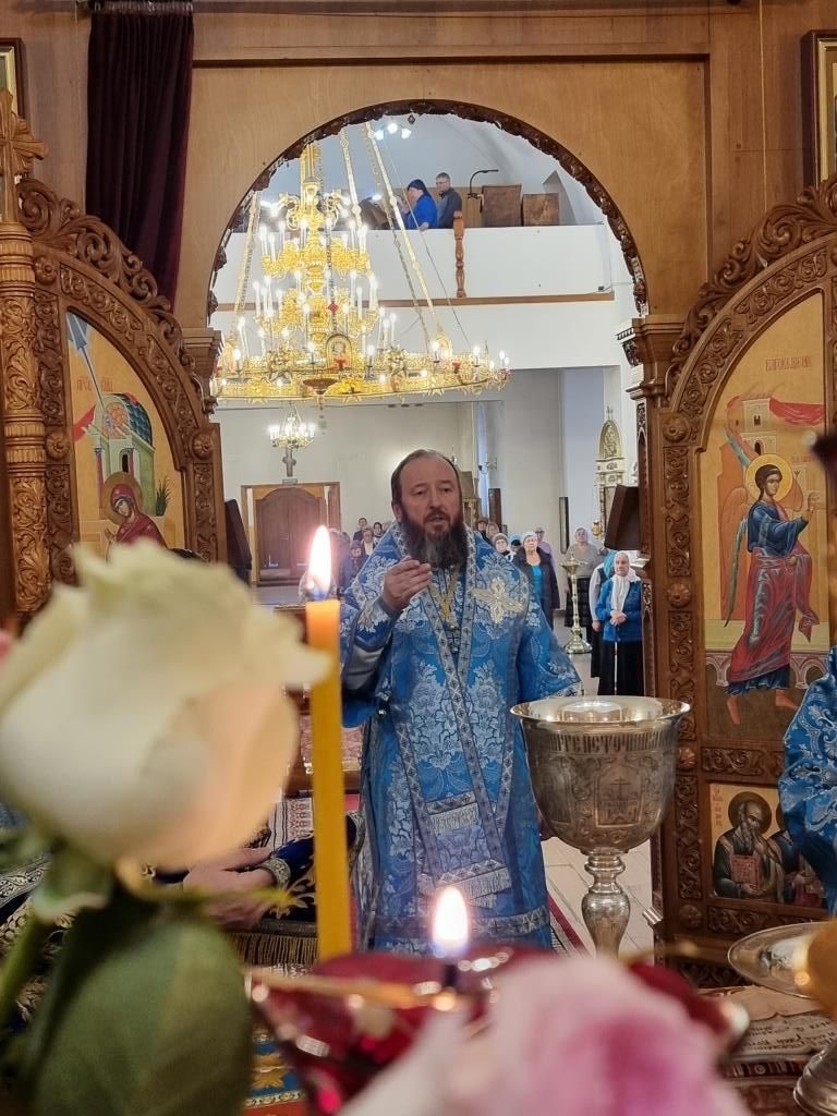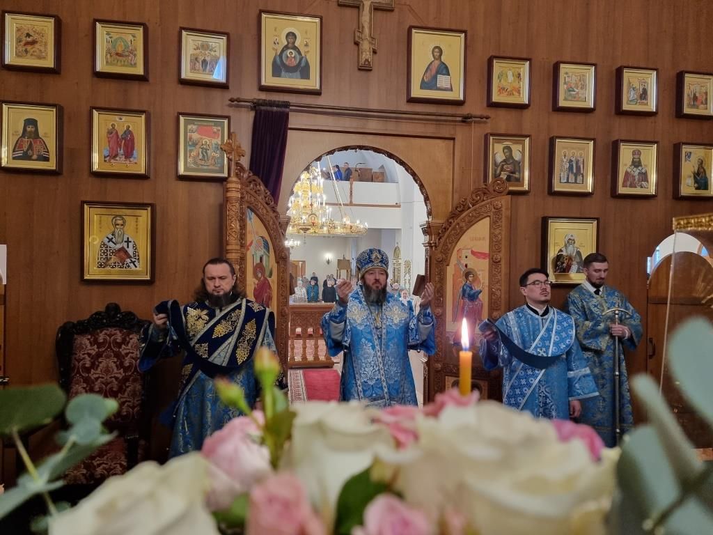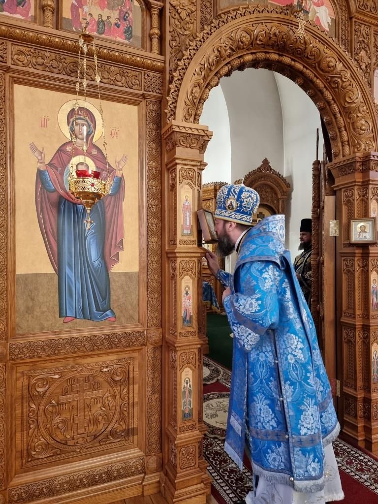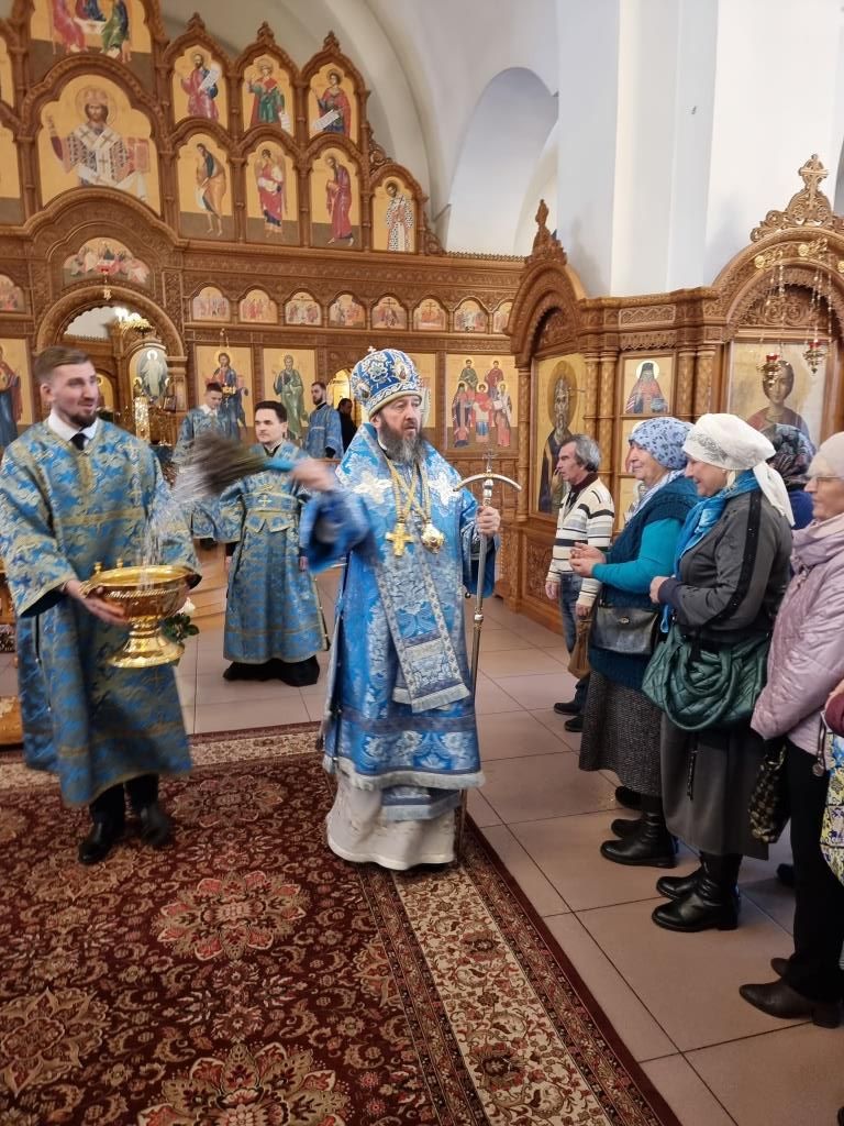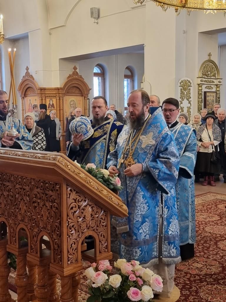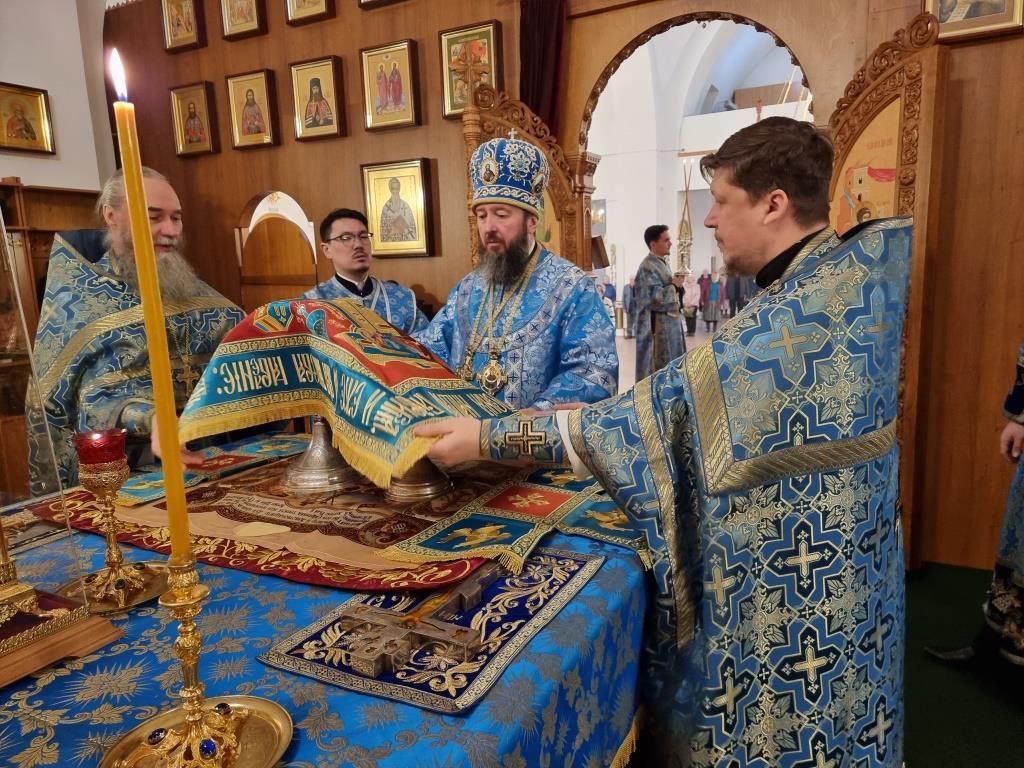 После заамвонной молитвы архиепископ Амфилохий с духовенством и народом Божиим воспел славление Пресвятой Богородице перед праздничной иконой. Завершая богослужение, Высокопреосвященнейший Владыка поздравил клир и паству с двунадесятым торжеством и обратился к молящимся со словом поучения.