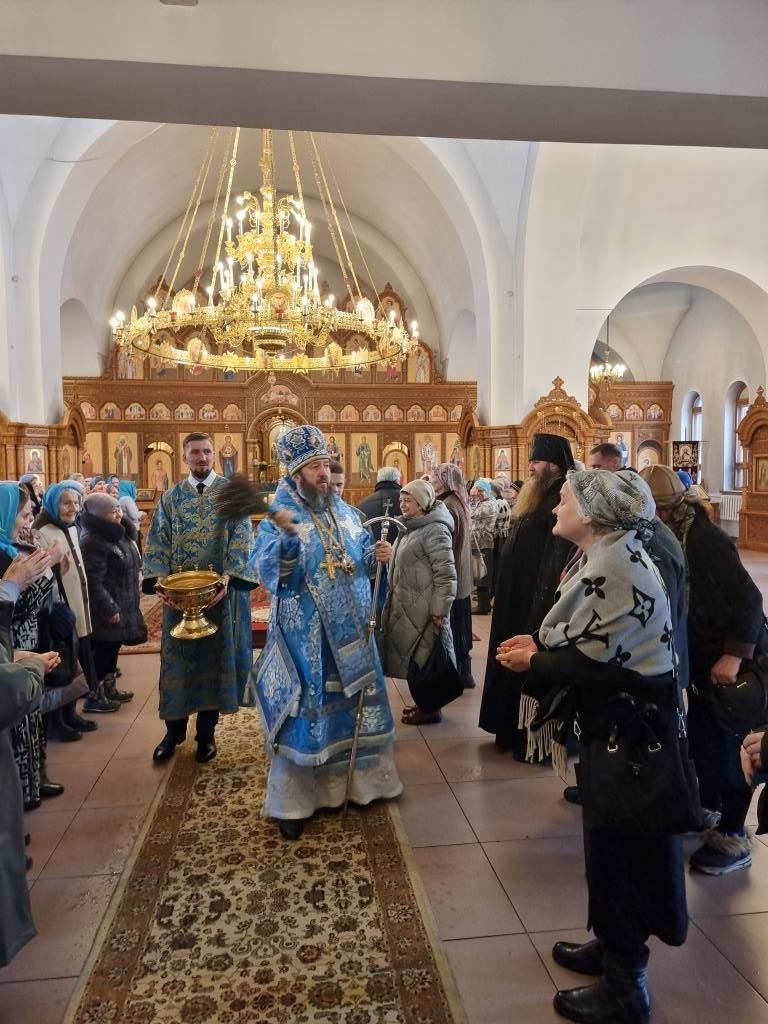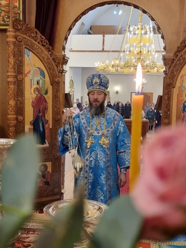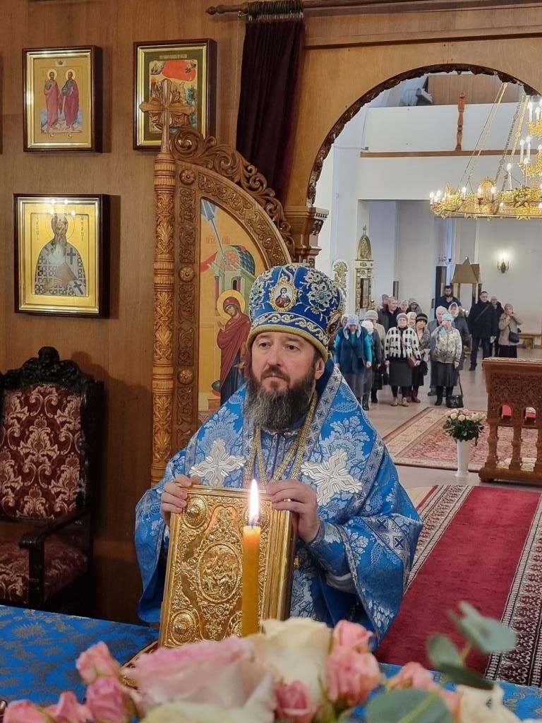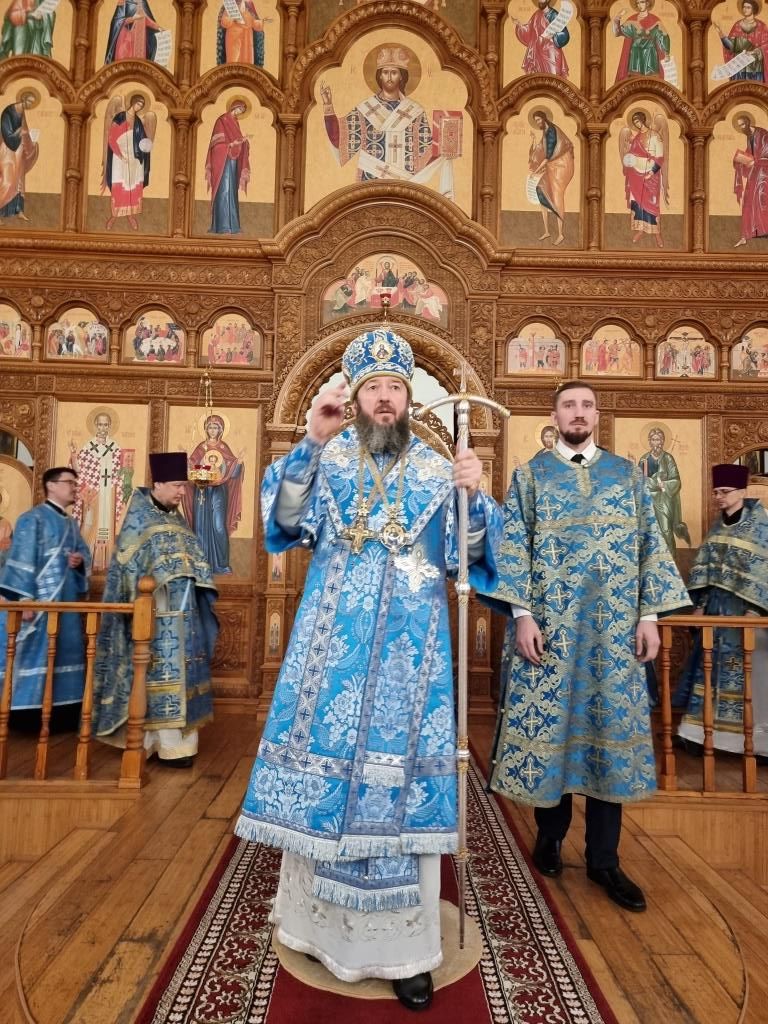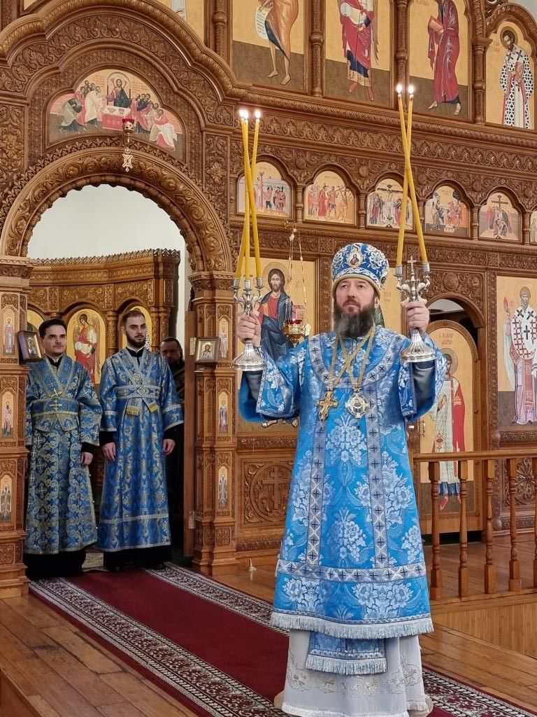 После заамвонной молитвы архиепископ Амфилохий с духовенством и народом Божиим воспел славление Пресвятой Богородице перед праздничной иконой. Завершая богослужение, Высокопреосвященнейший Владыка поздравил клир и паству с двунадесятым торжеством и обратился к молящимся со словом поучения.