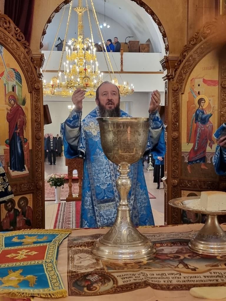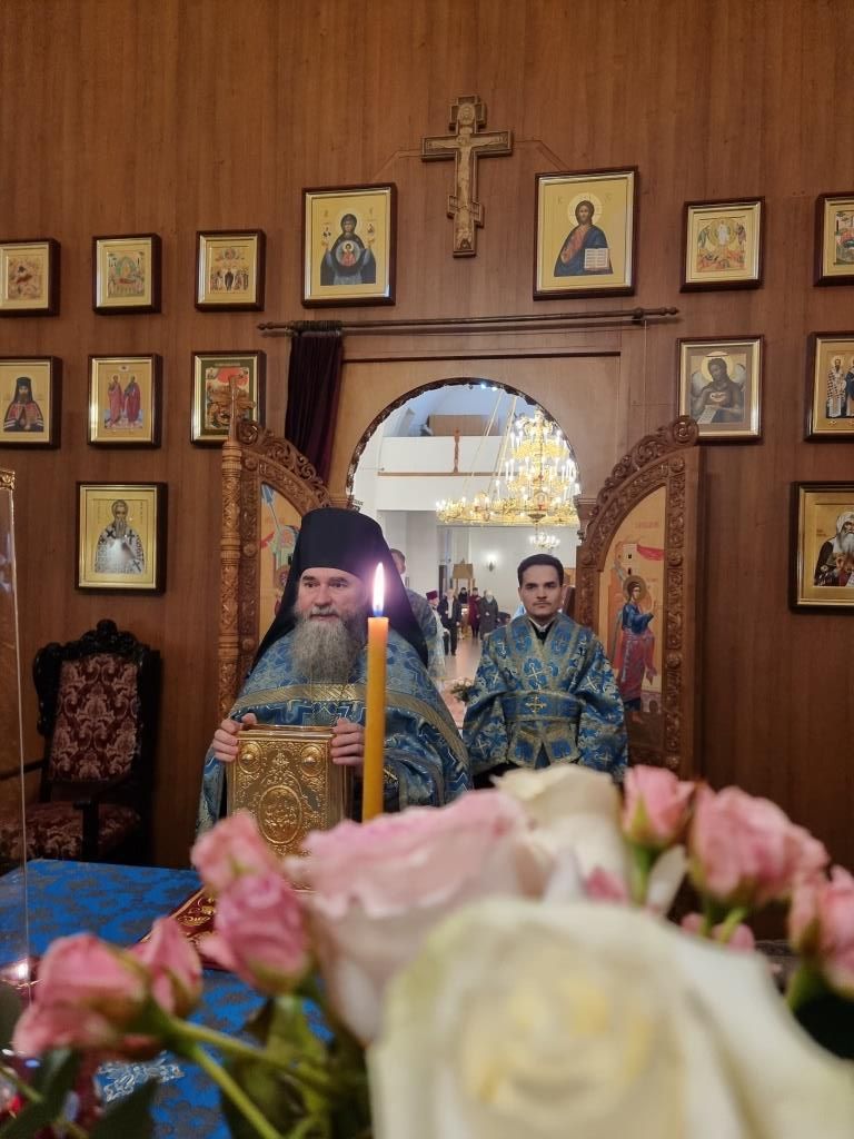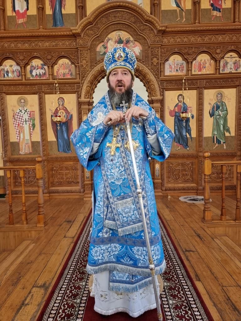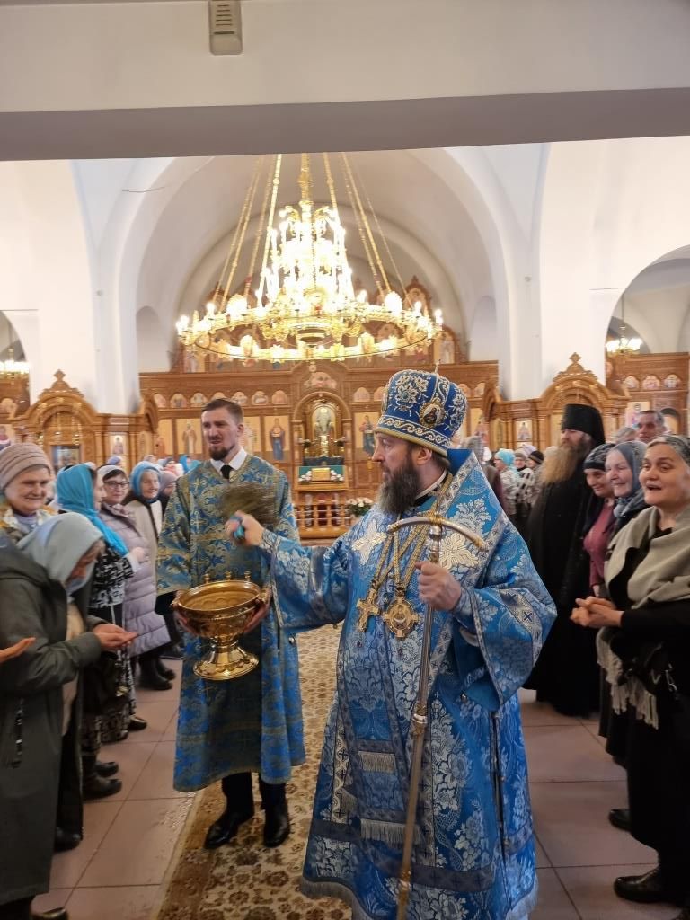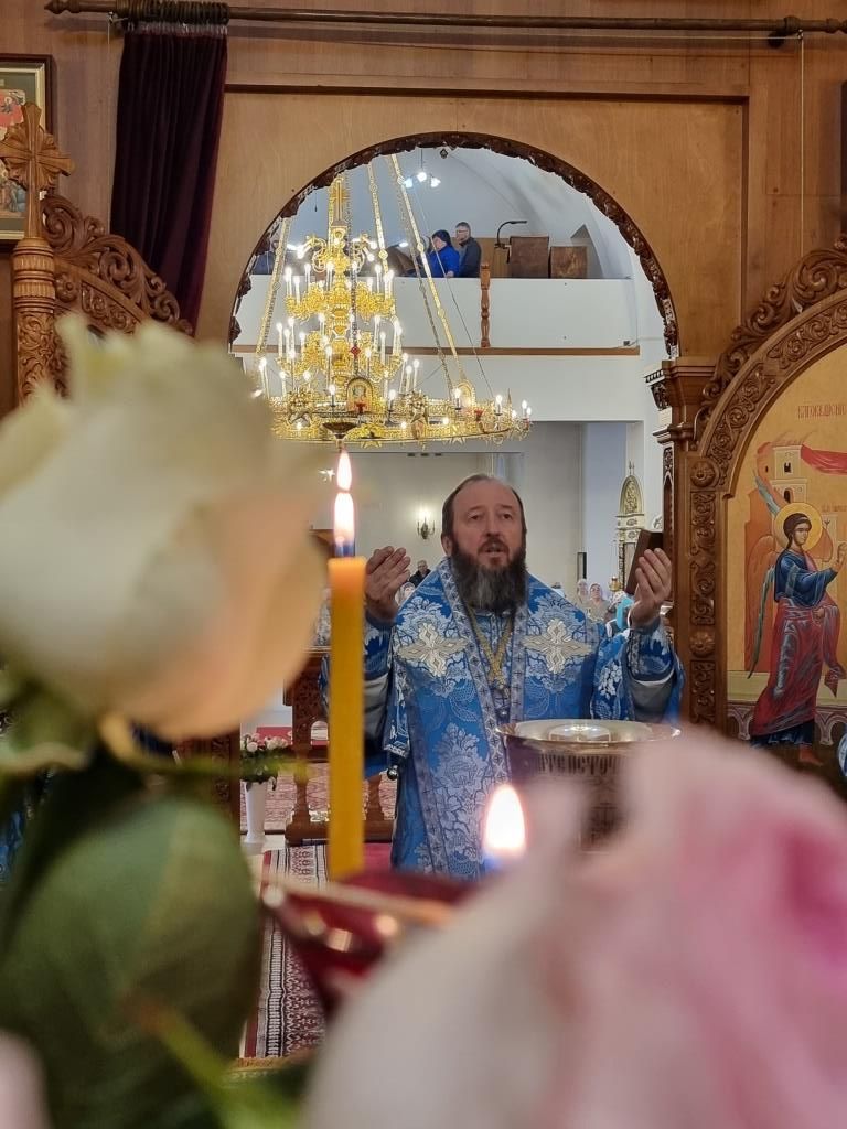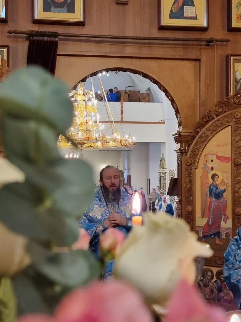 После заамвонной молитвы архиепископ Амфилохий с духовенством и народом Божиим воспел славление Пресвятой Богородице перед праздничной иконой. Завершая богослужение, Высокопреосвященнейший Владыка поздравил клир и паству с двунадесятым торжеством и обратился к молящимся со словом поучения.