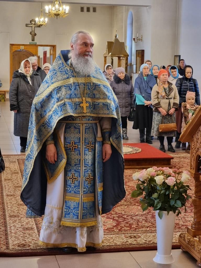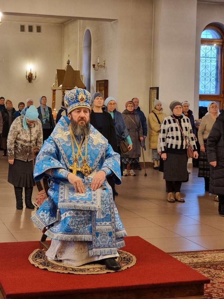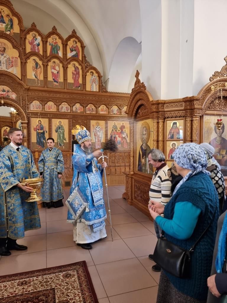 За праздничным богослужением молились насельники Свято-Троицкого мужского монастыря города Усть-Каменогорска, сотрудники епархиального управления и прихожане Андреевского собора. Песнопения Божественной Литургии и праздника Введения во храм Пресвятой Богородицы исполнял хор кафедрального собора под управлением регента Н. Романцовой. Перед причастием мирян иерей Роман Подрезов произнёс проповедь на тему праздника.