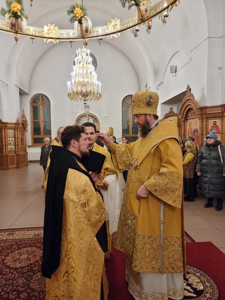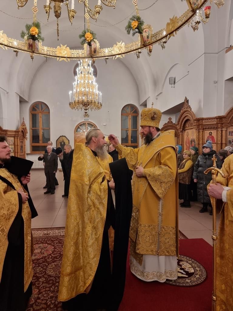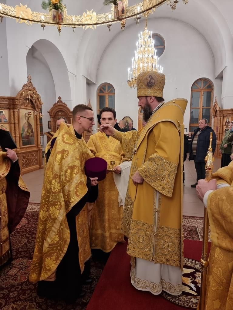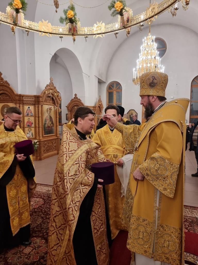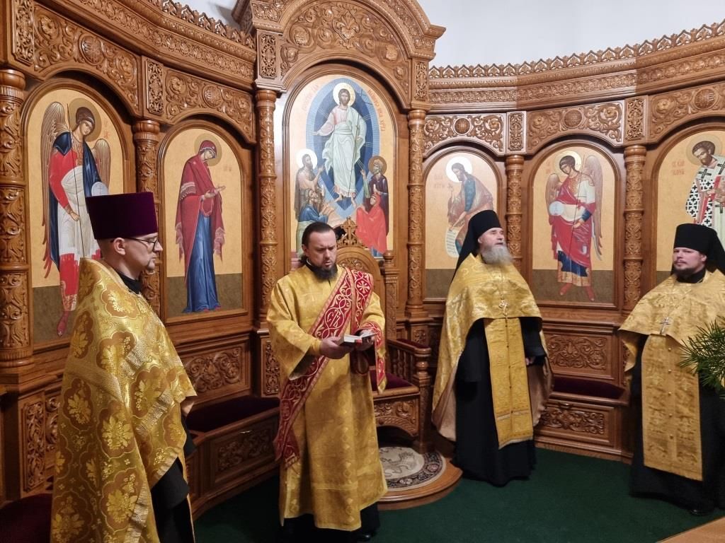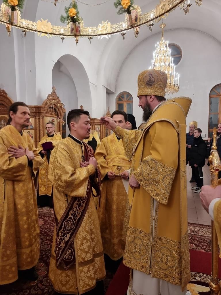 Владыке архиепископу сослужили: благочинный Усть-Каменогорского церковного округа иеромонах Силуан (Магилев), ключарь Андреевского кафедрального собора иеромонах Никодим (Авдеев), настоятель Казанского храма посёлка Усть-Таловка протоиерей Роман Сычук, клирики кафедрального собора иерей Роман Подрезов и иерей Константин Дьяков, настоятель Зиновьевского храма города Усть-Каменогорска иеромонах Мефодий (Шевчук), секретарь епархии диакон Илия Кван, протодиакон Андрей Дудник.