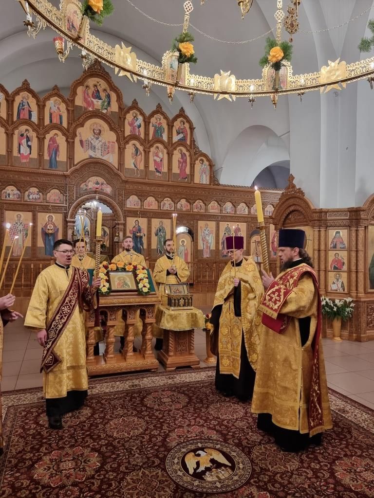 На утрене, после чтения праздничного евангельского зачала, архиепископ Амфилохий помазал духовенство освященным елеем. Участники богослужения имели возможность приложиться к святыне православного мира – честному поясу Пресвятой Богородицы.