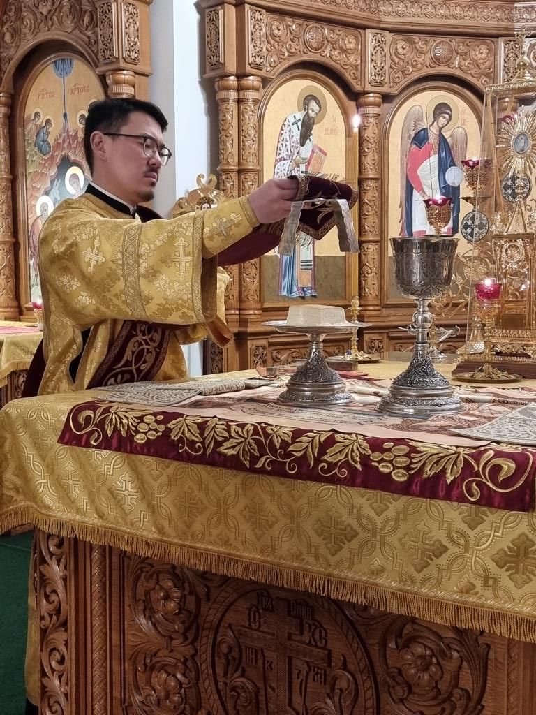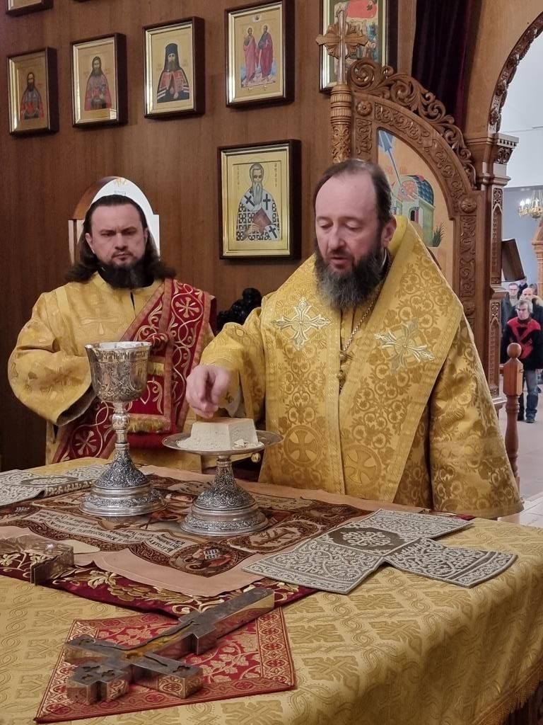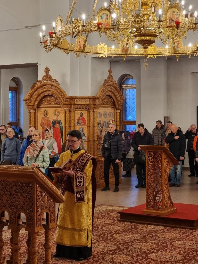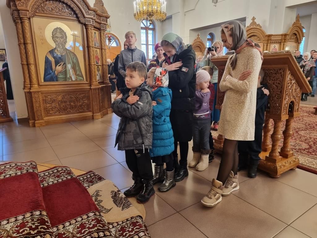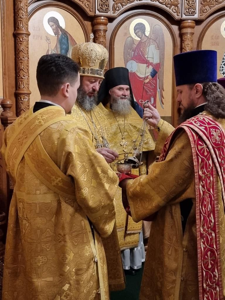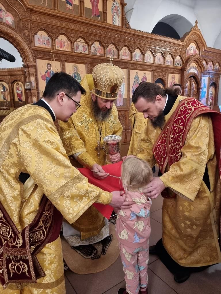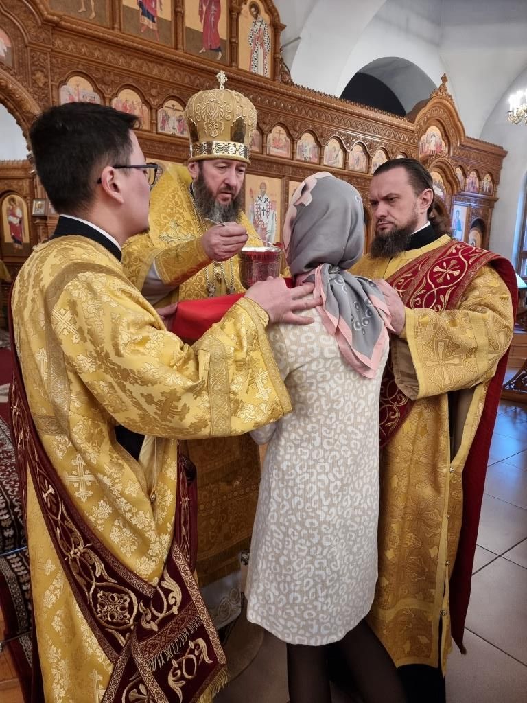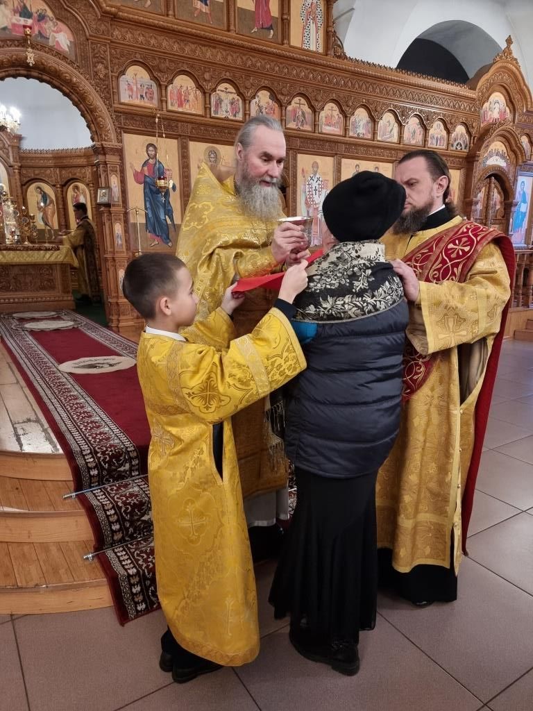 Архипастырю сослужили: ключарь кафедрального собора иеромонах Никодим (Авдеев), клирики собора иерей Виталий Адаменков и иерей Константин Дьяков, секретарь епархии диакон Илия Кван, протодиакон Андрей Дудник.