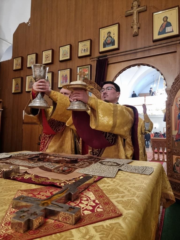 Управляющий Усть-Каменогорской и Семипалатинской епархией Высокопреосвященнейший архиепископ Амфилохий возглавил служение Божественной Литургии святителя Иоанна Златоуста в кафедральном соборе во имя святого апостола Андрея Первозванного города Усть-Каменогорска.