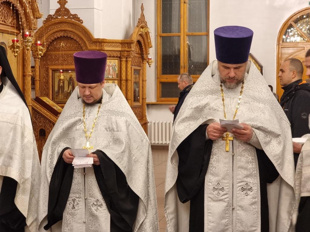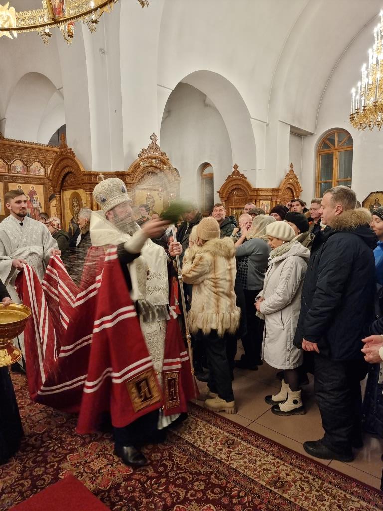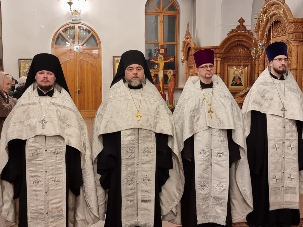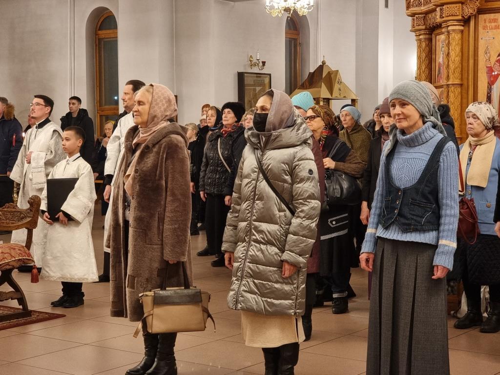 За богослужением пел хор кафедрального собора под управлением регента Н. Романцовой. В канун Нового года в храме молились прихожане городских храмов, сотрудники епархиального управления и насельники Свято-Троицкого мужского монастыря.