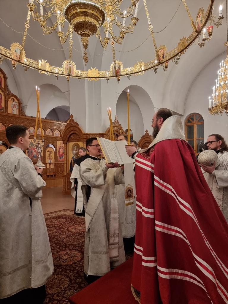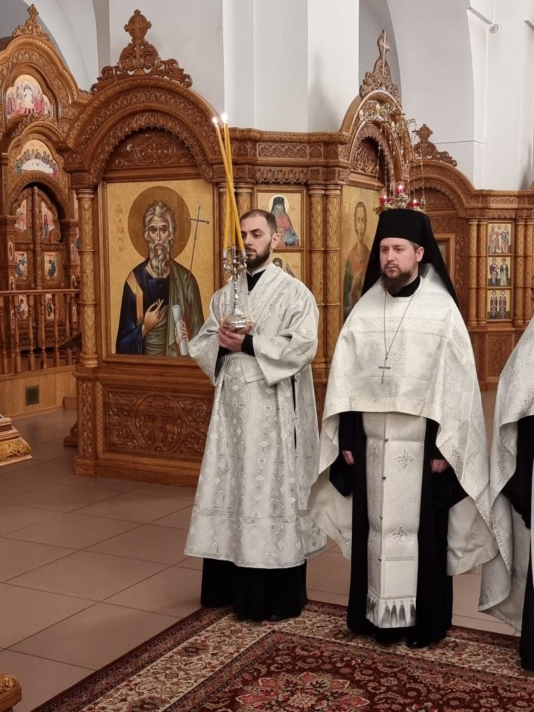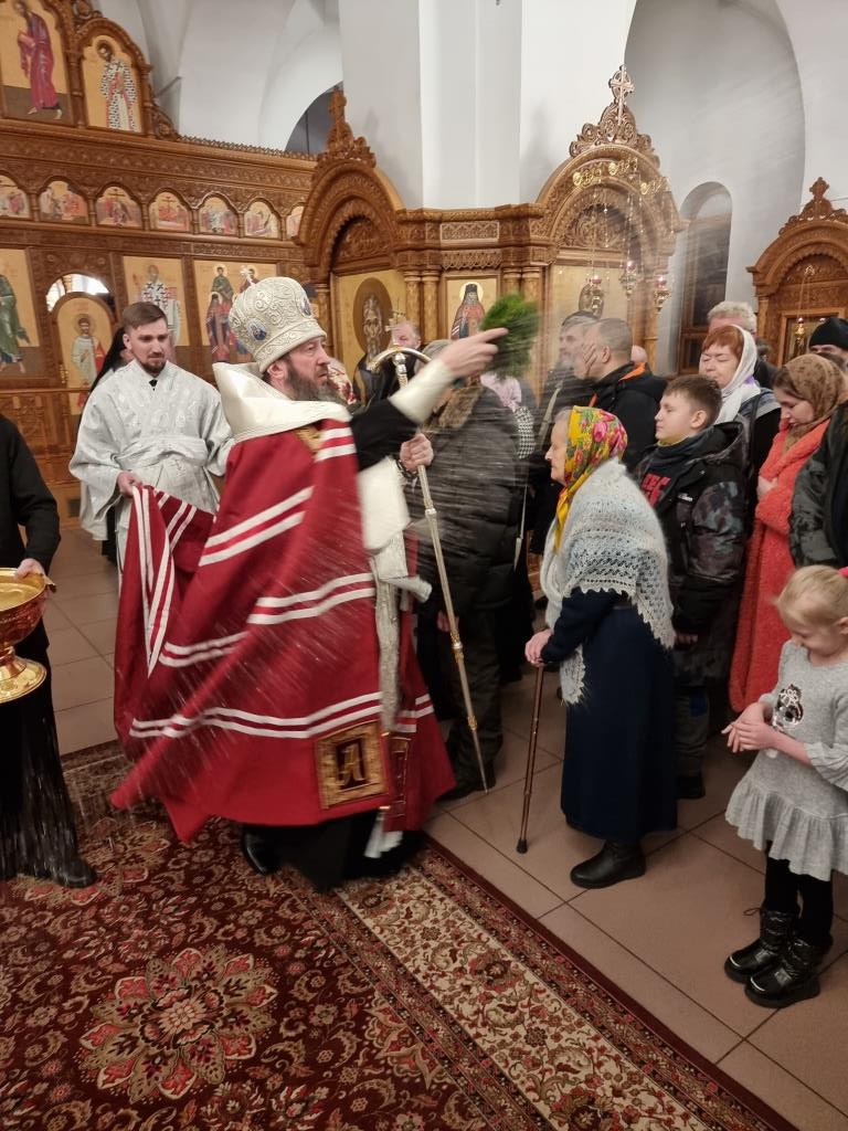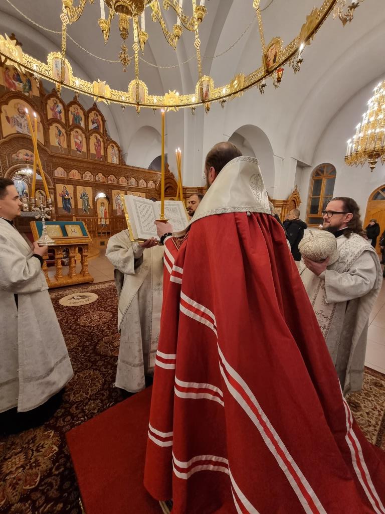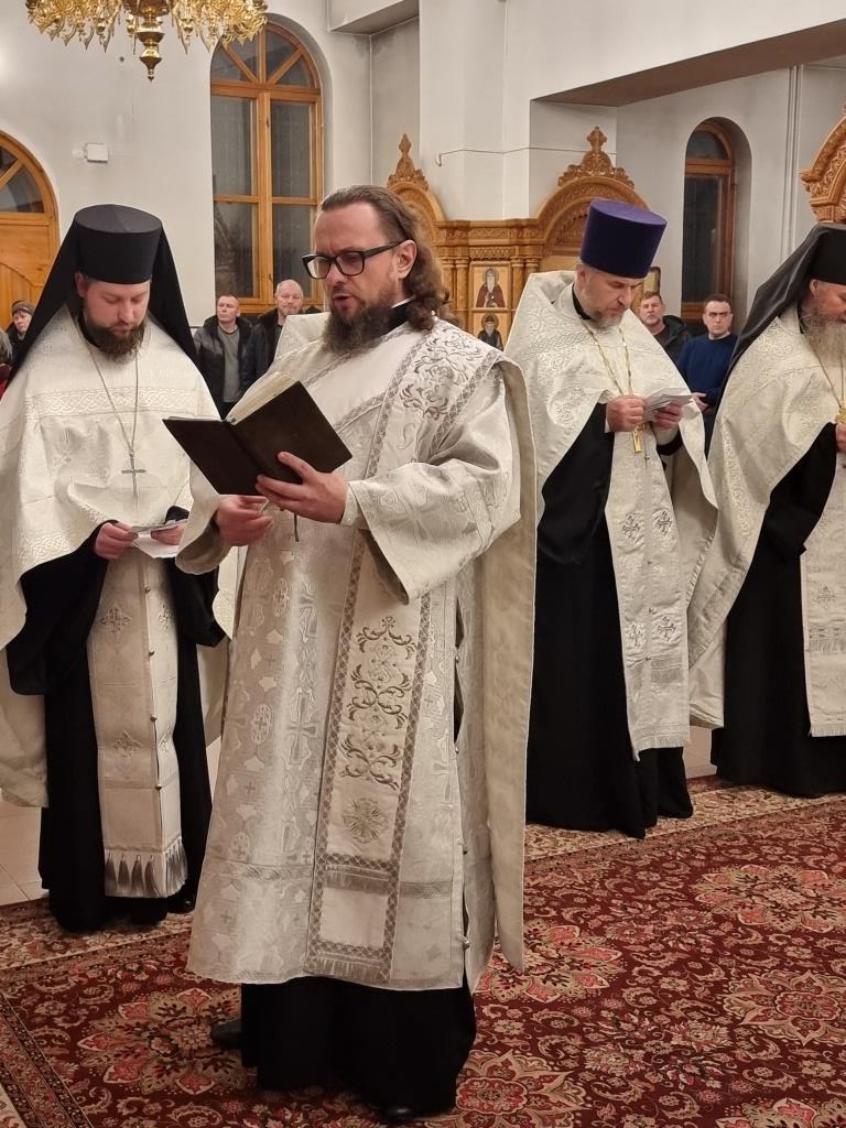 За богослужением пел хор кафедрального собора под управлением регента Н. Романцовой. В канун Нового года в храме молились прихожане городских храмов, сотрудники епархиального управления и насельники Свято-Троицкого мужского монастыря.