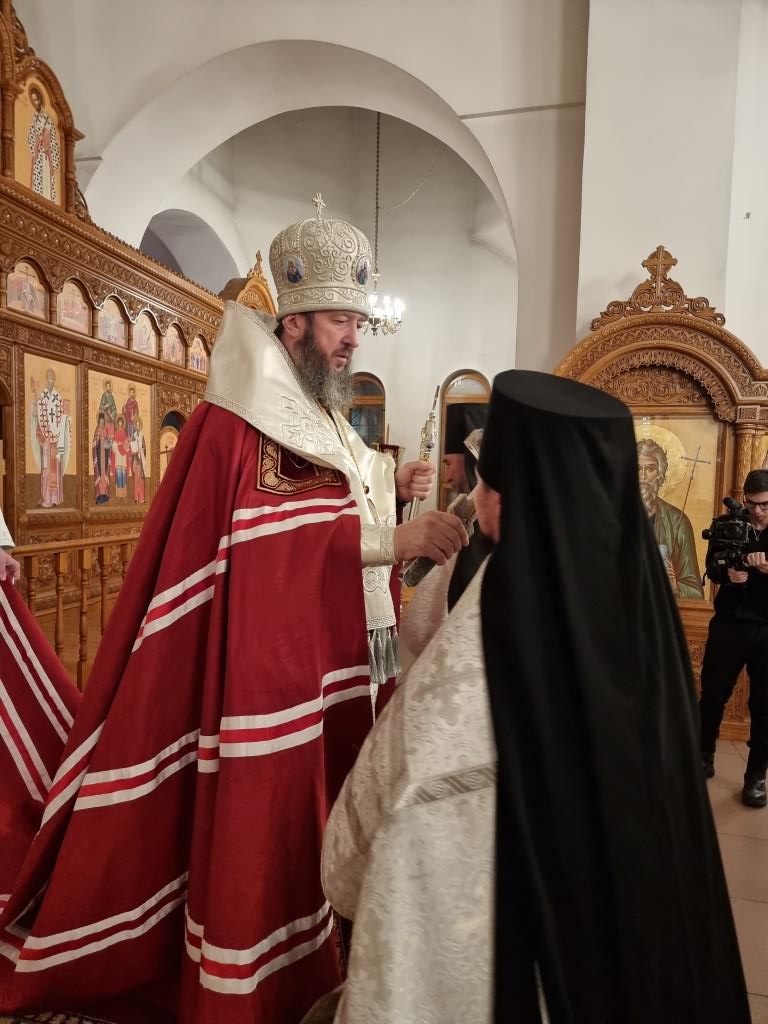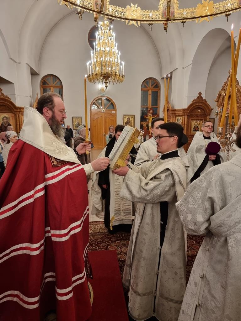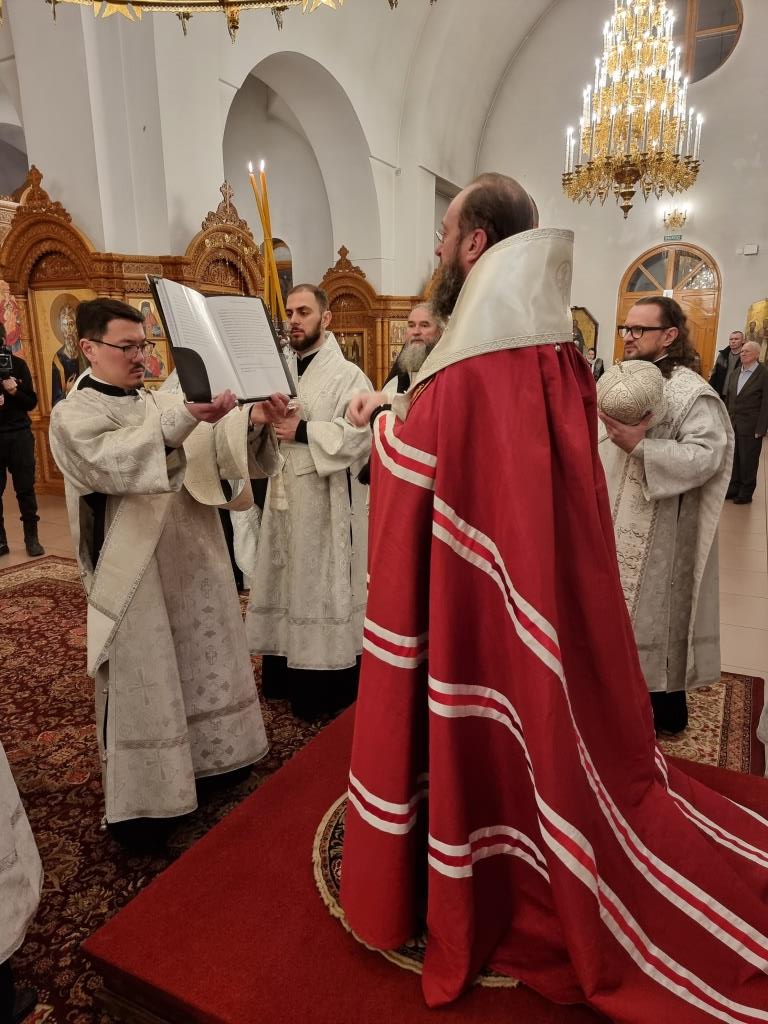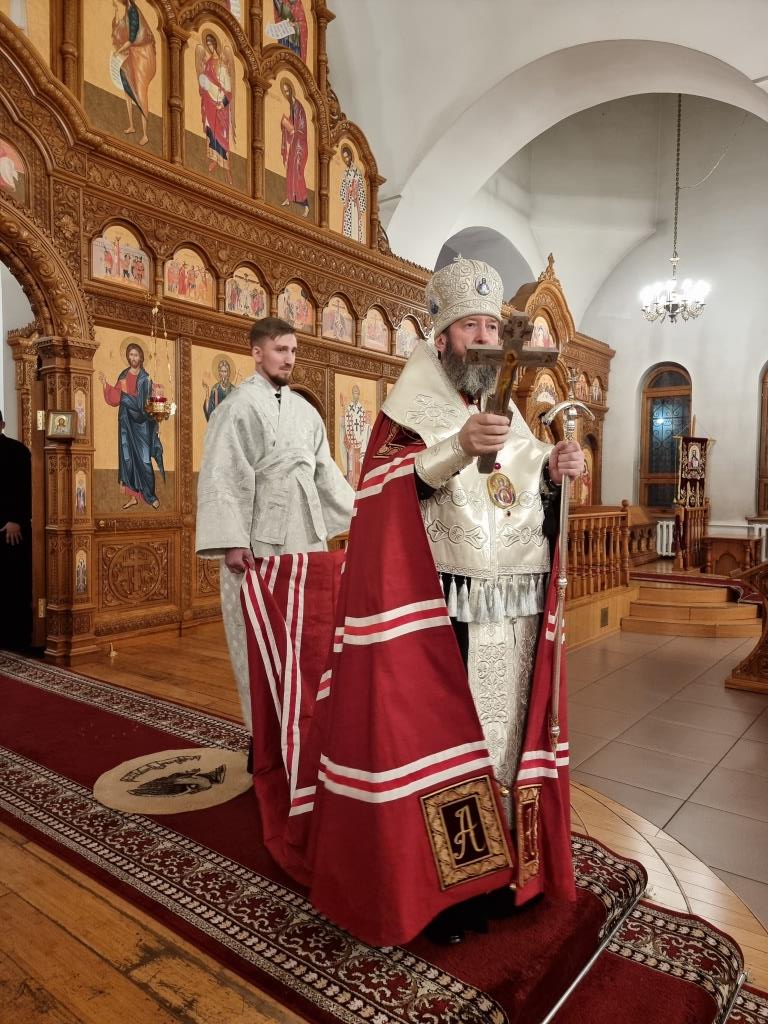 Архипастырю сослужили: благочинный Усть-Каменогорского церковного округа иеромонах Силуан (Магилев), ключарь Андреевского кафедрального собора иеромонах Никодим (Авдеев), настоятель Богородице-Рождественского храма города Усть-Каменогорска иеромонах Севастиан (Андрющенко), настоятель Зиновьевского храма города Усть-Каменогорска иеромонах Мефодий (Шевчук), духовенство города Усть-Каменогорска.