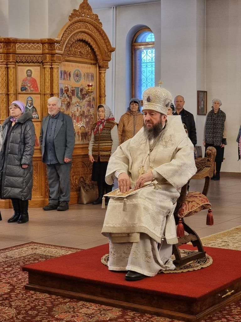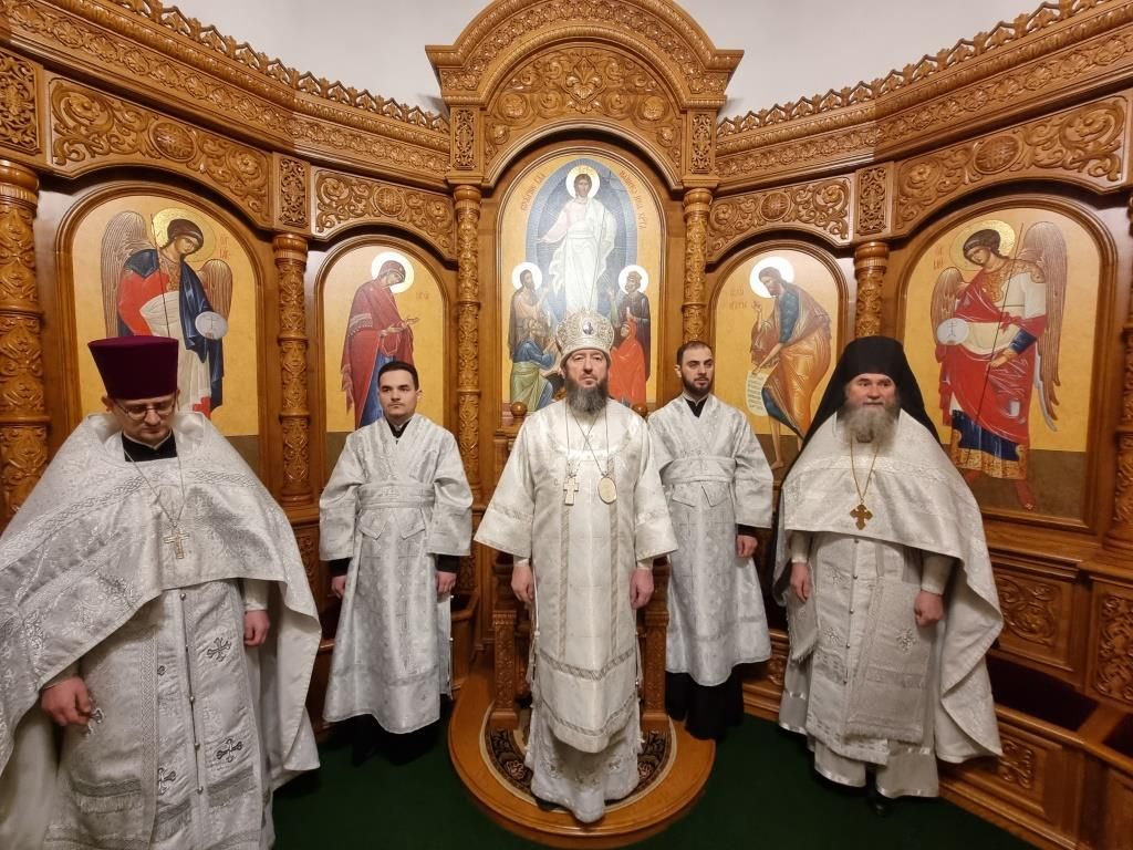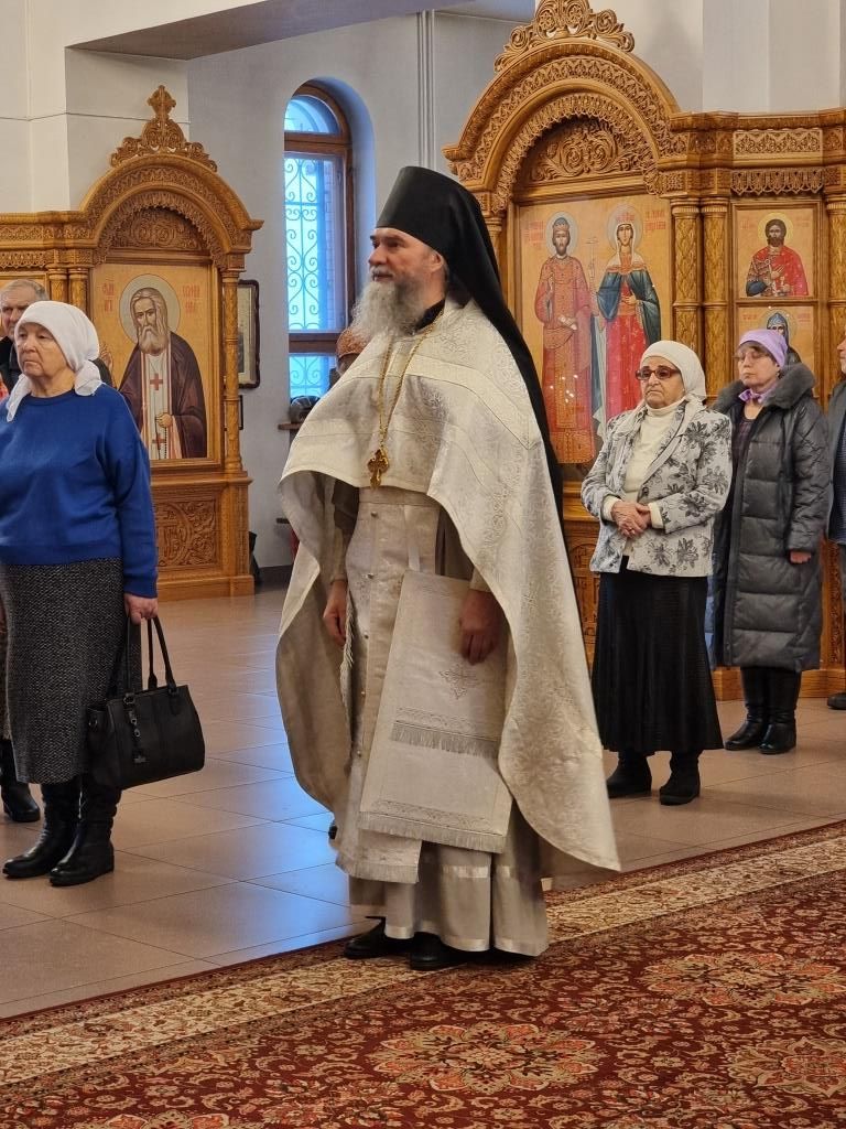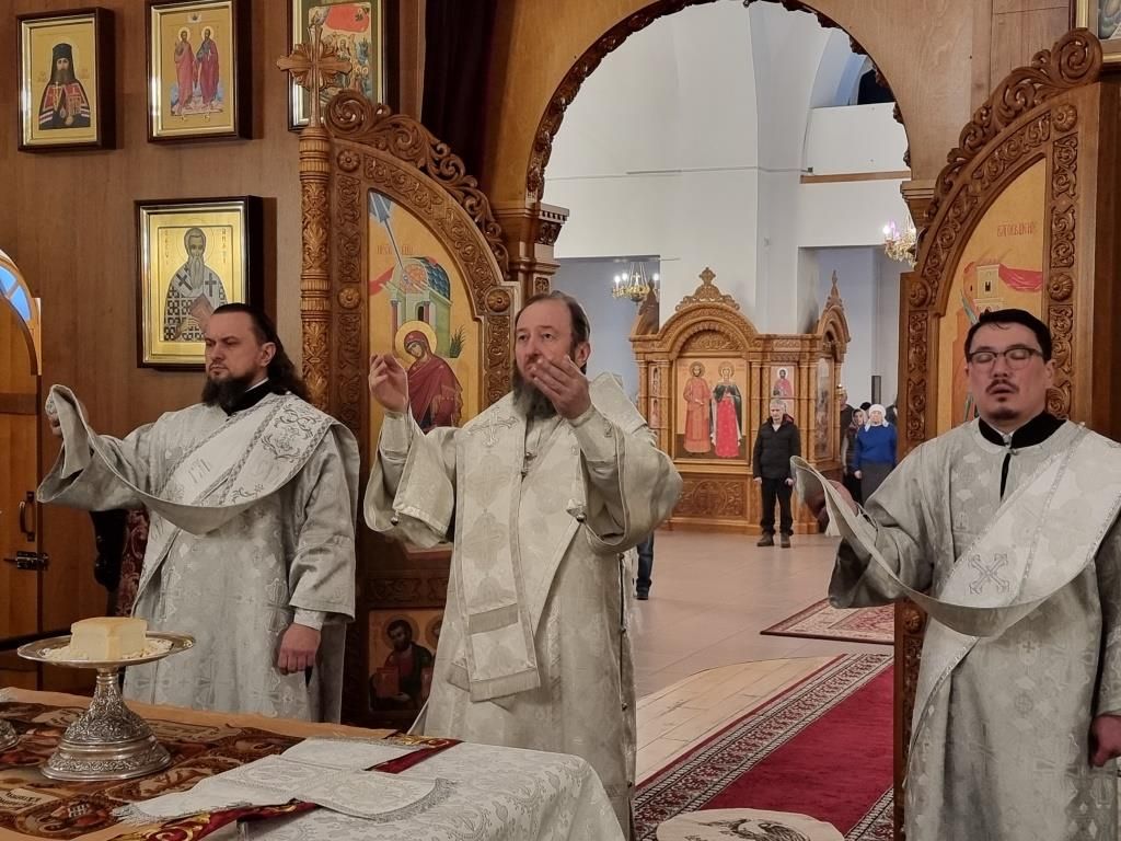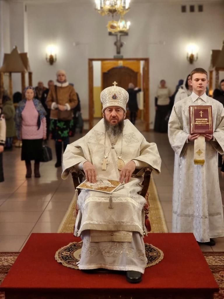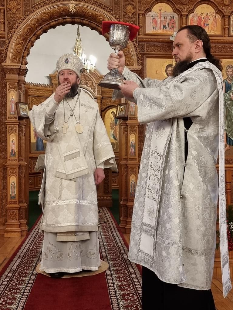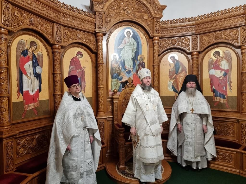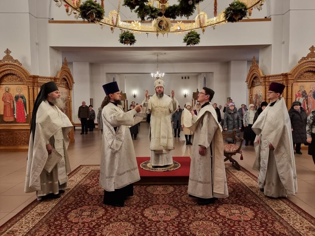 Владыке архиепископу сослужили: ключарь кафедрального собора иеромонах Никодим (Авдеев), иерей Константин Дьяков, секретарь епархии диакон Илия Кван, протодиакон Андрей Дудник.