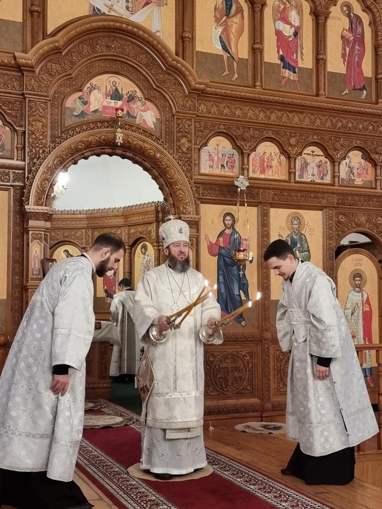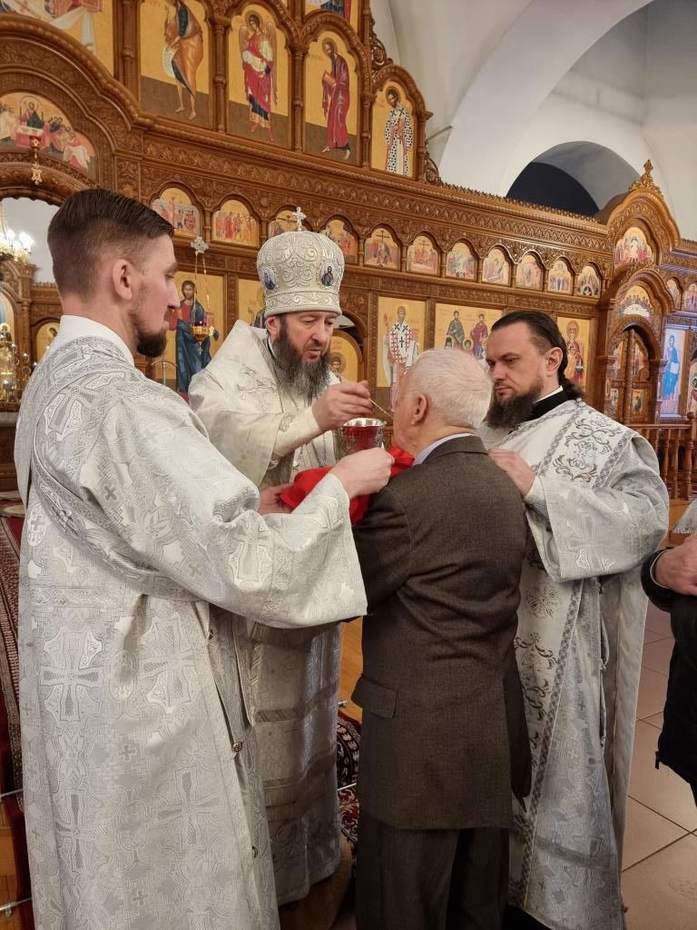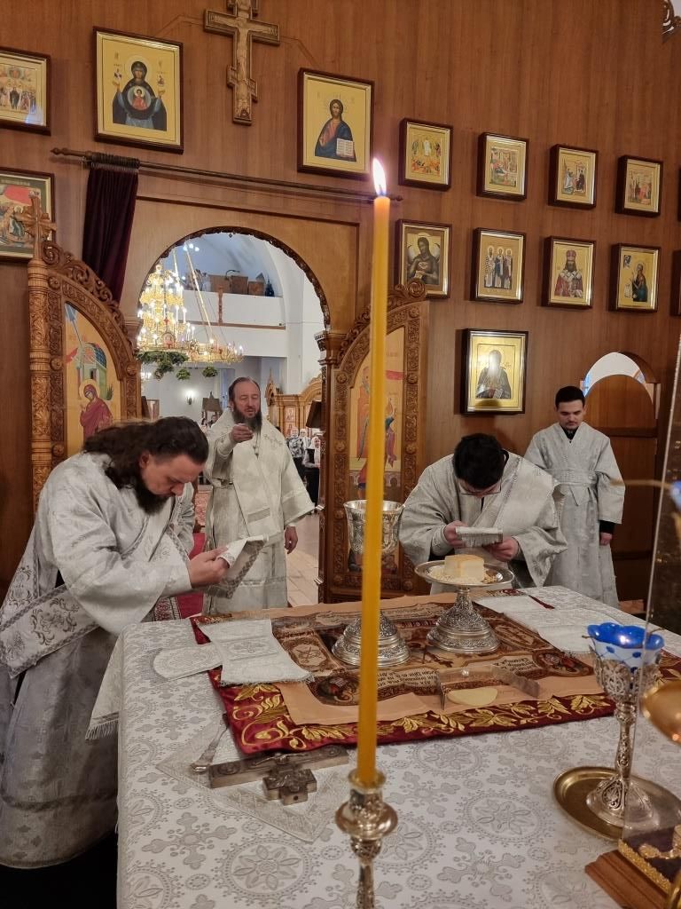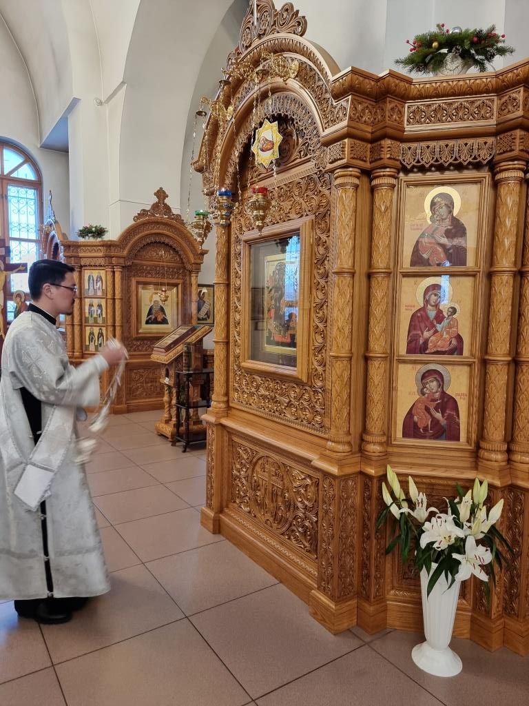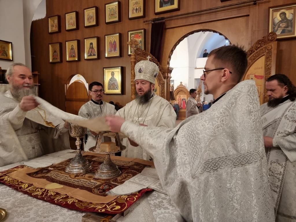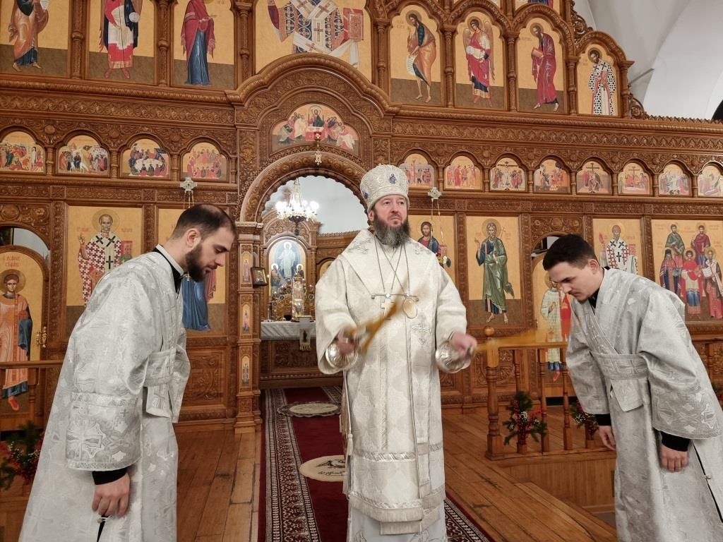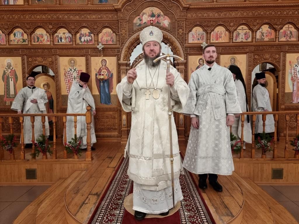 Владыке архиепископу сослужили: ключарь кафедрального собора иеромонах Никодим (Авдеев), иерей Константин Дьяков, секретарь епархии диакон Илия Кван, протодиакон Андрей Дудник.