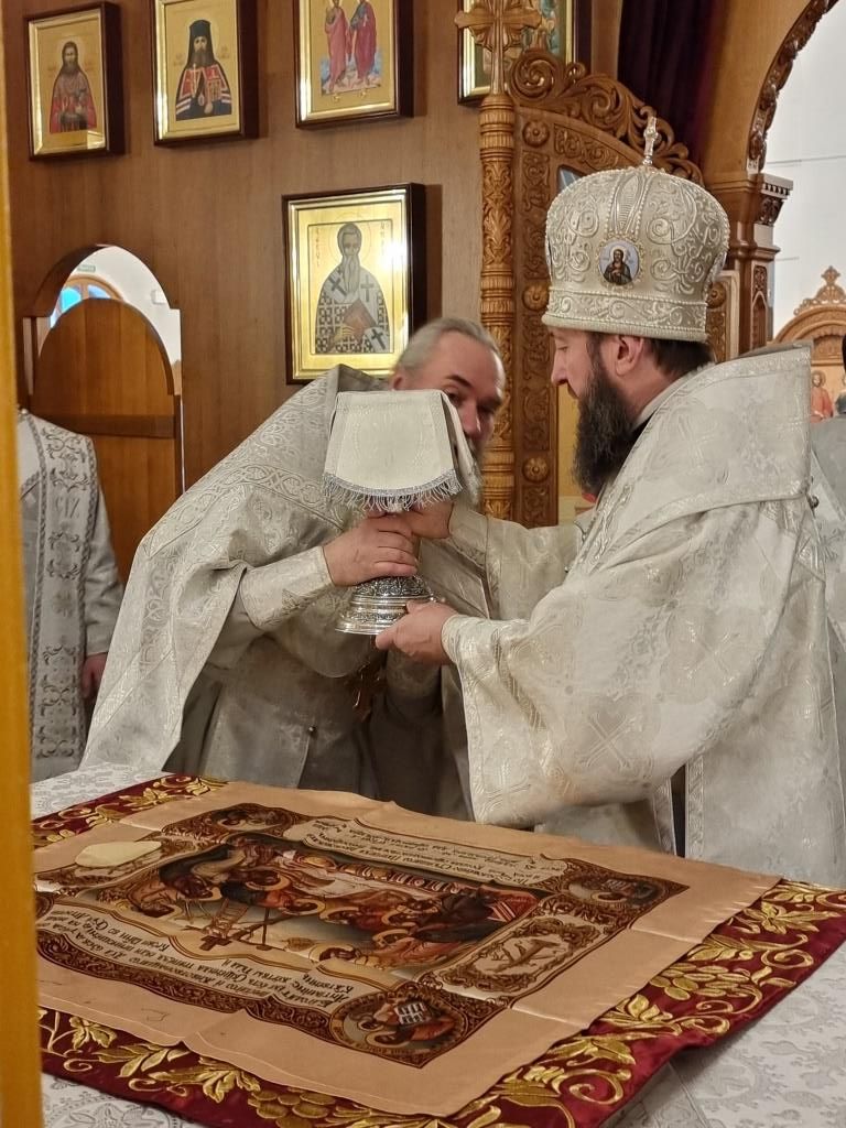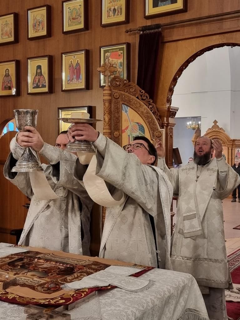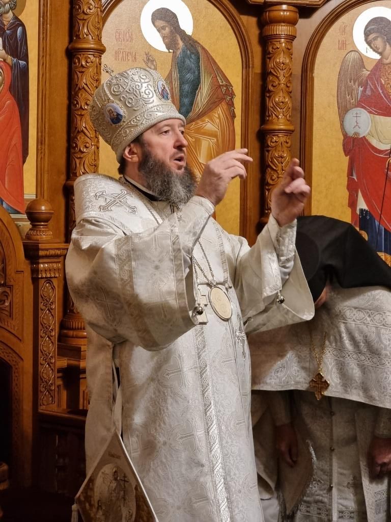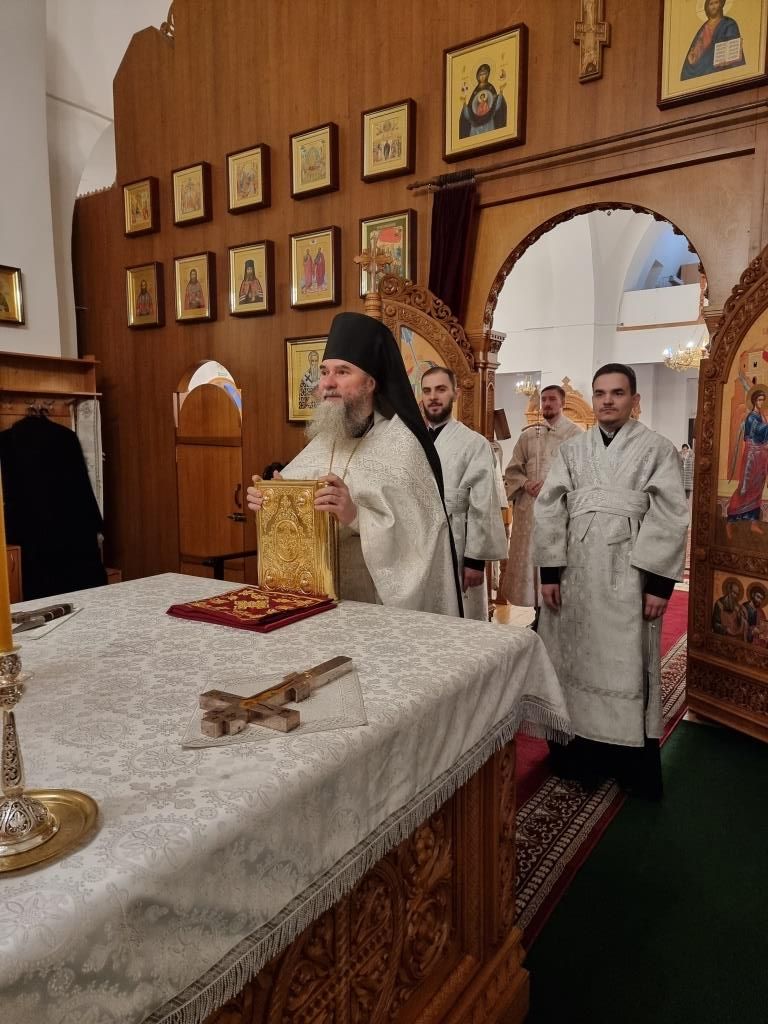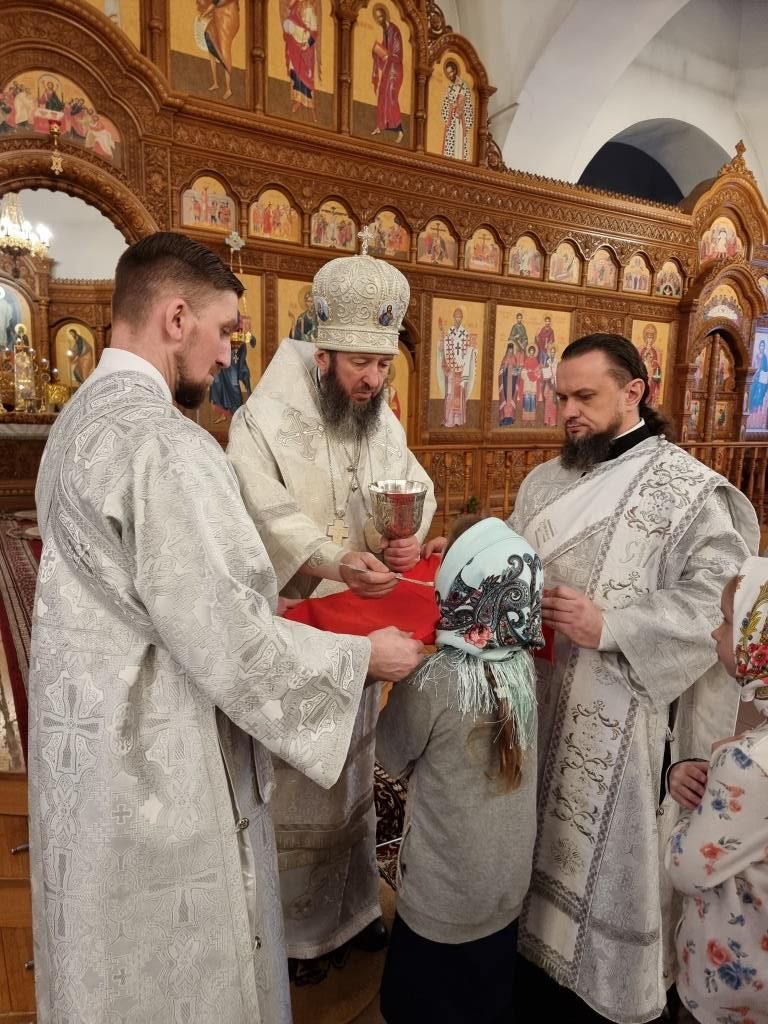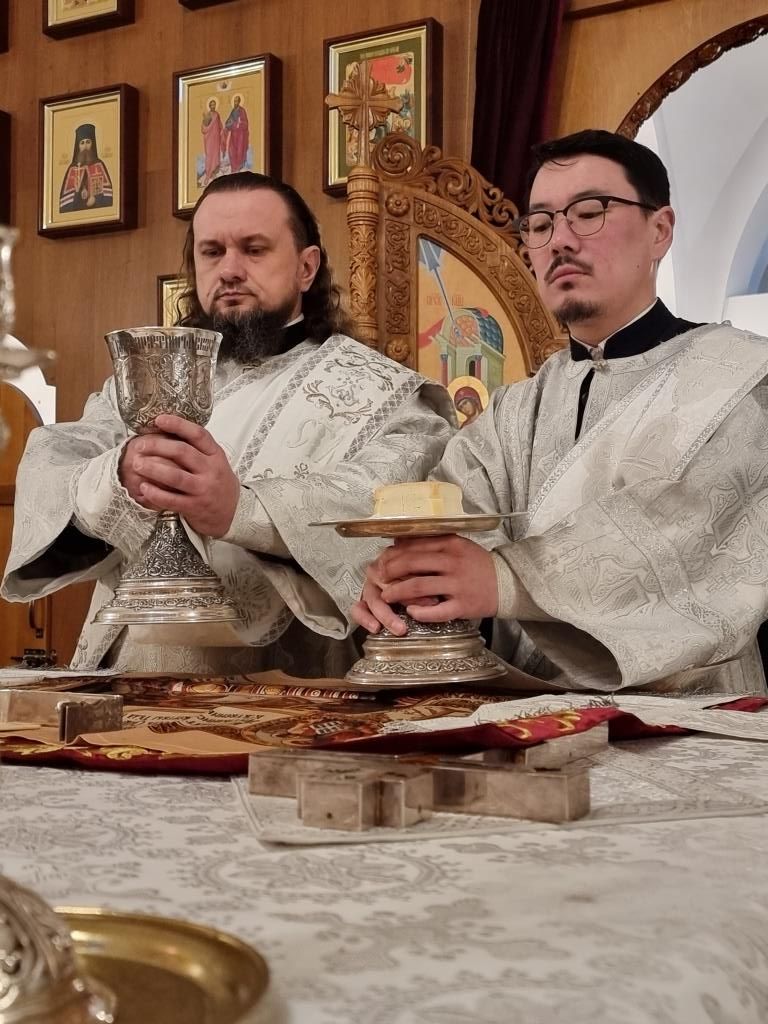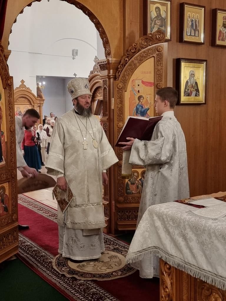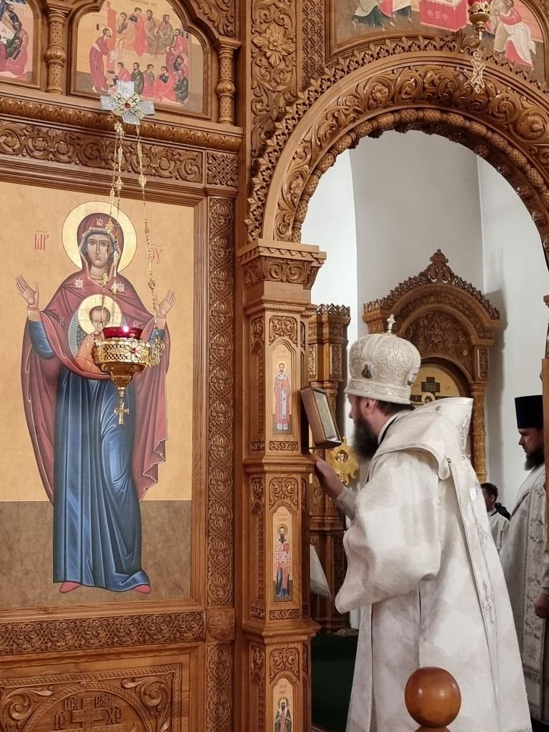 Владыке архиепископу сослужили: ключарь кафедрального собора иеромонах Никодим (Авдеев), иерей Константин Дьяков, секретарь епархии диакон Илия Кван, протодиакон Андрей Дудник.