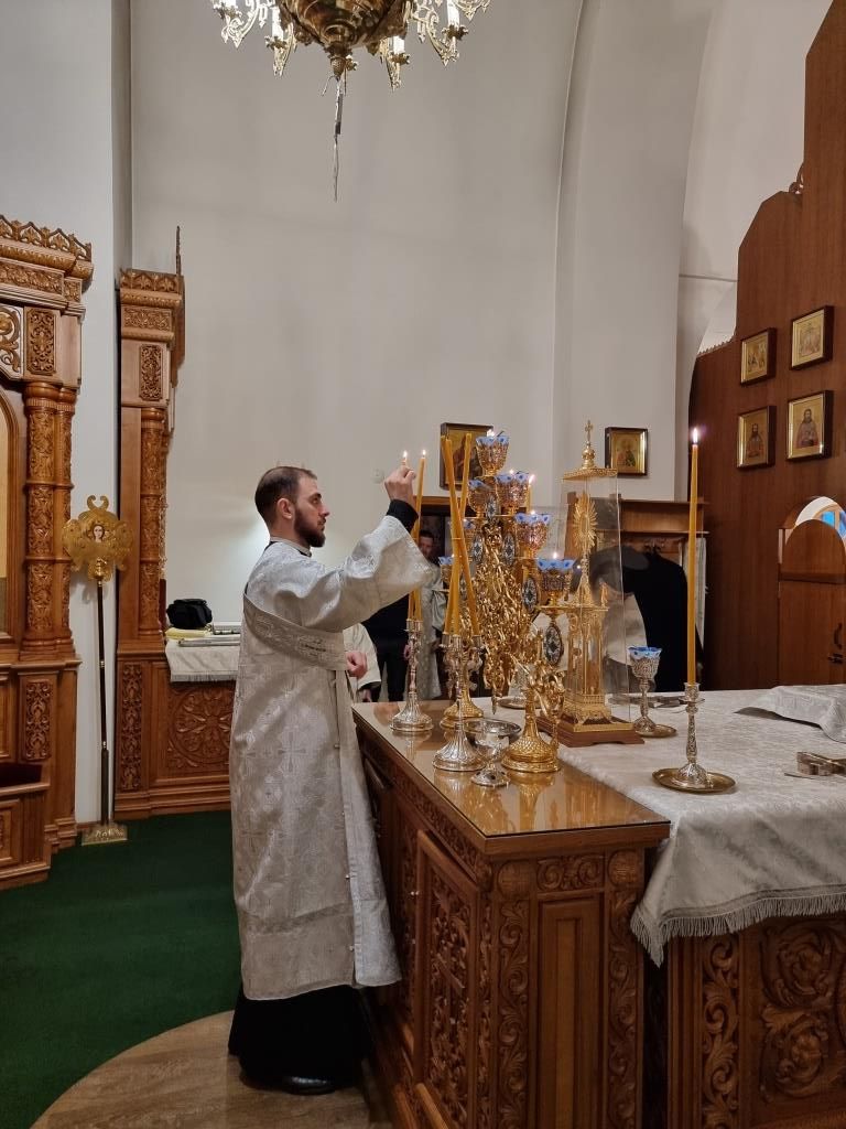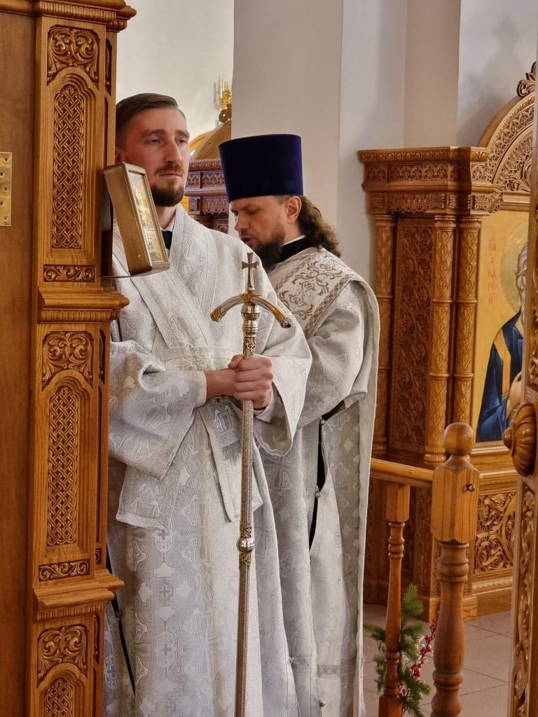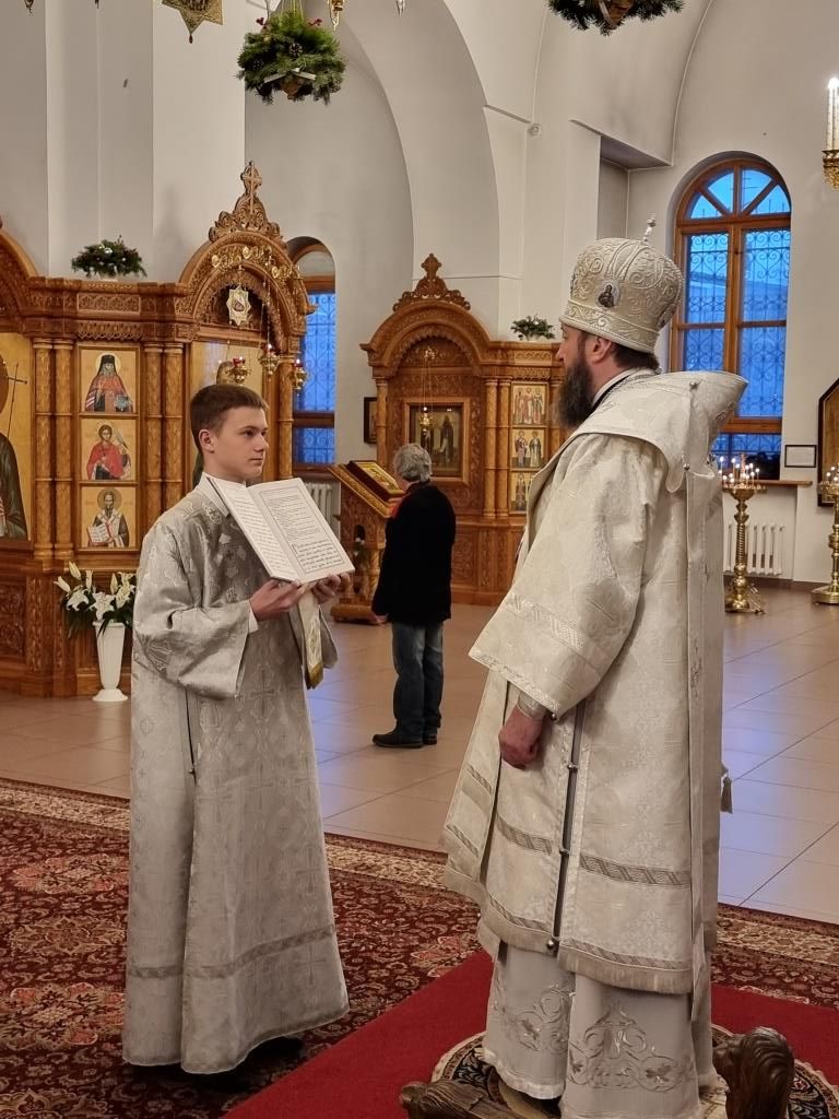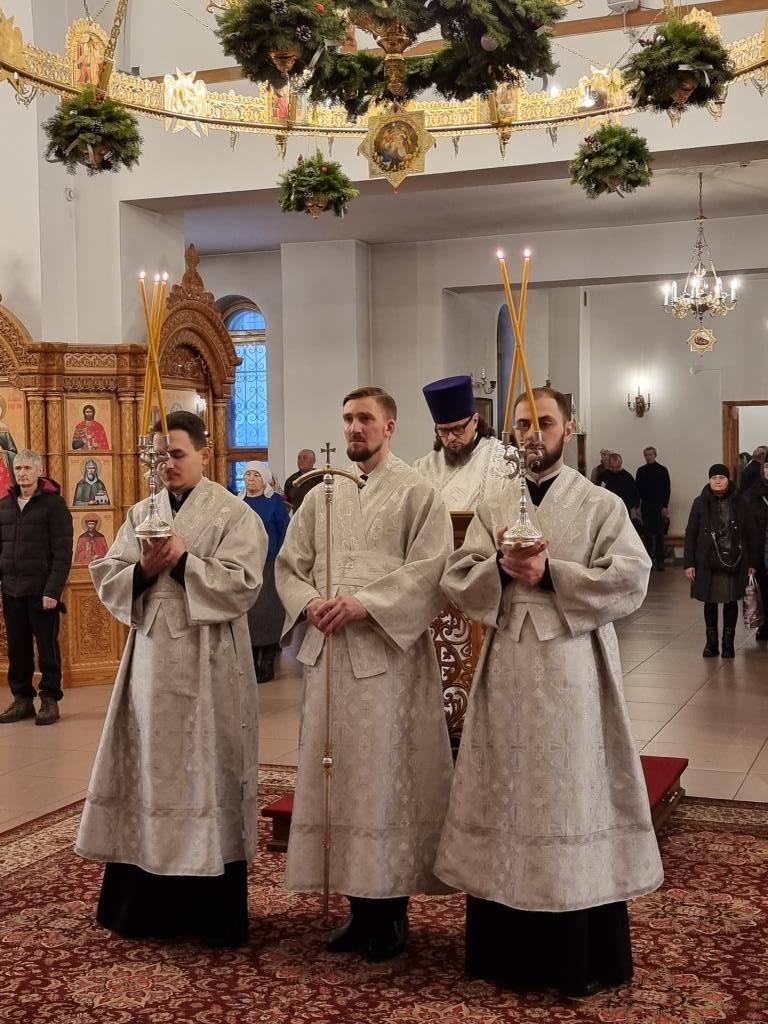 После отпуста Божественной Литургии была совершена Великая вечерня, за которой читались отрывки из Священного Писания Ветхого и Нового Заветов, посвященных рождению Мессии – Сына Божия и Спасителя мира.