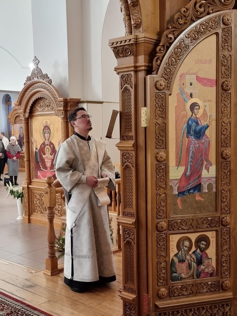 Праздничные песнопения исполнял хор кафедрального собора, регент Н. Романцова. В храме молились сотрудники епархиального управления, насельники Свято-Троицкого мужского монастыря города Усть-Каменогорска и прихожане кафедрального собора.