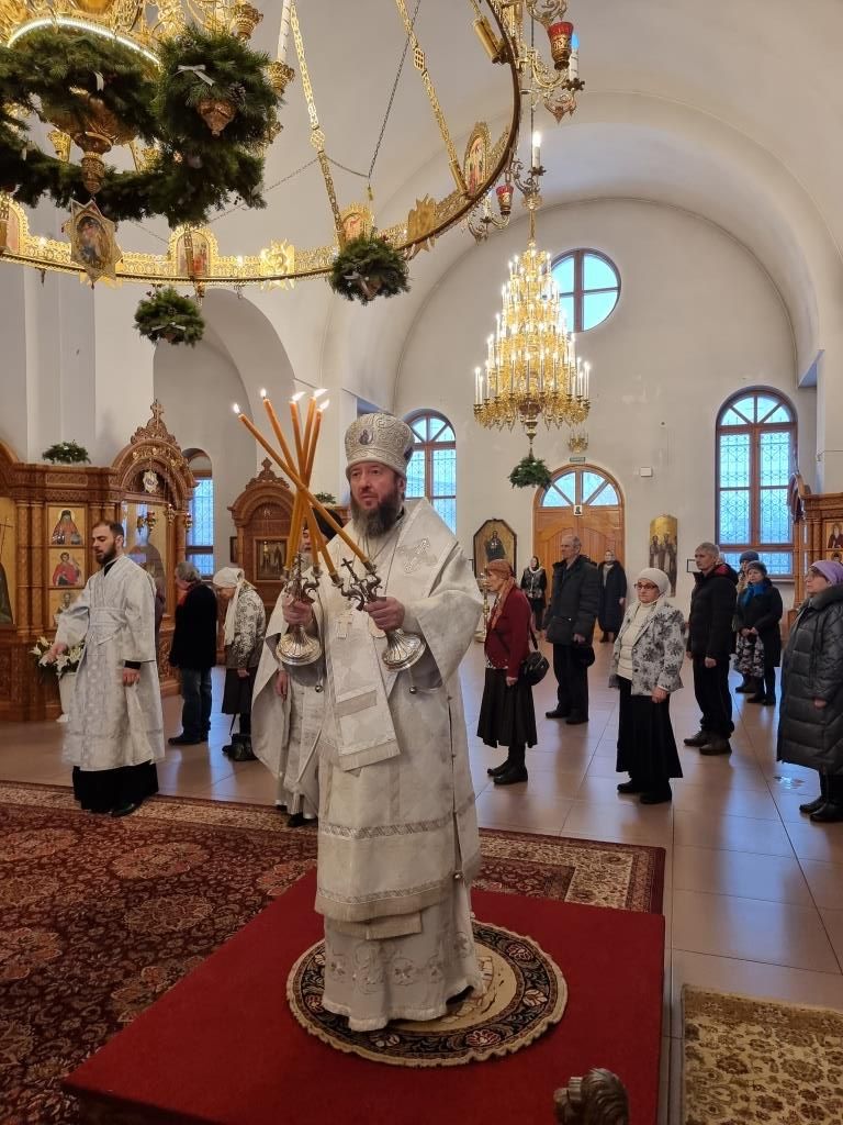 В день предпразднства Рождества Христова в Андреевском кафедральном соборе города Усть-Каменогорска были совершены уставные богослужения – Божественная Литургия святителя Иоанна Златоуста и Великая вечерня, которые возглавил Управляющий Усть-Каменогорской и Семипалатинской епархией Высокопреосвященнейший архиепископ Амфилохий.