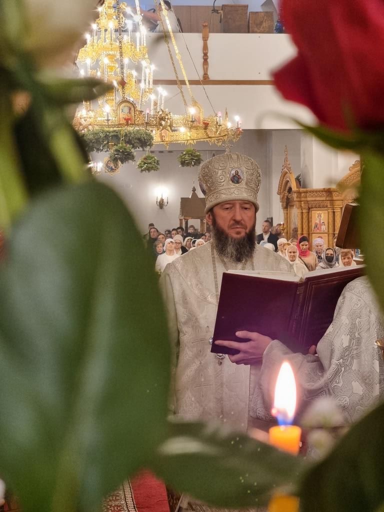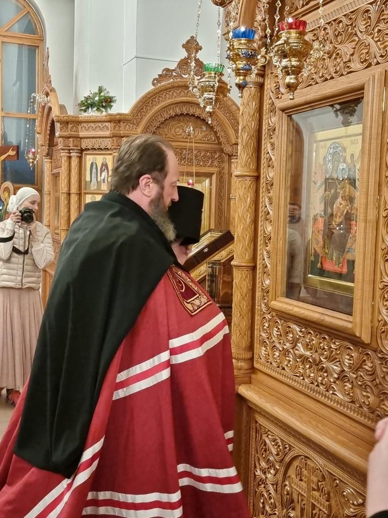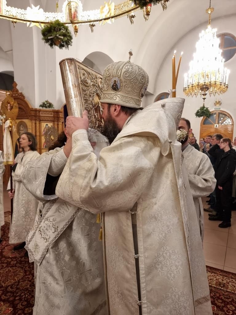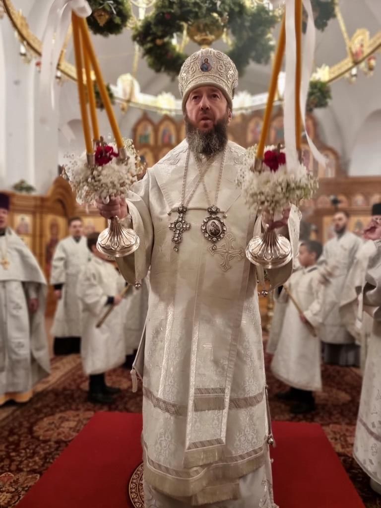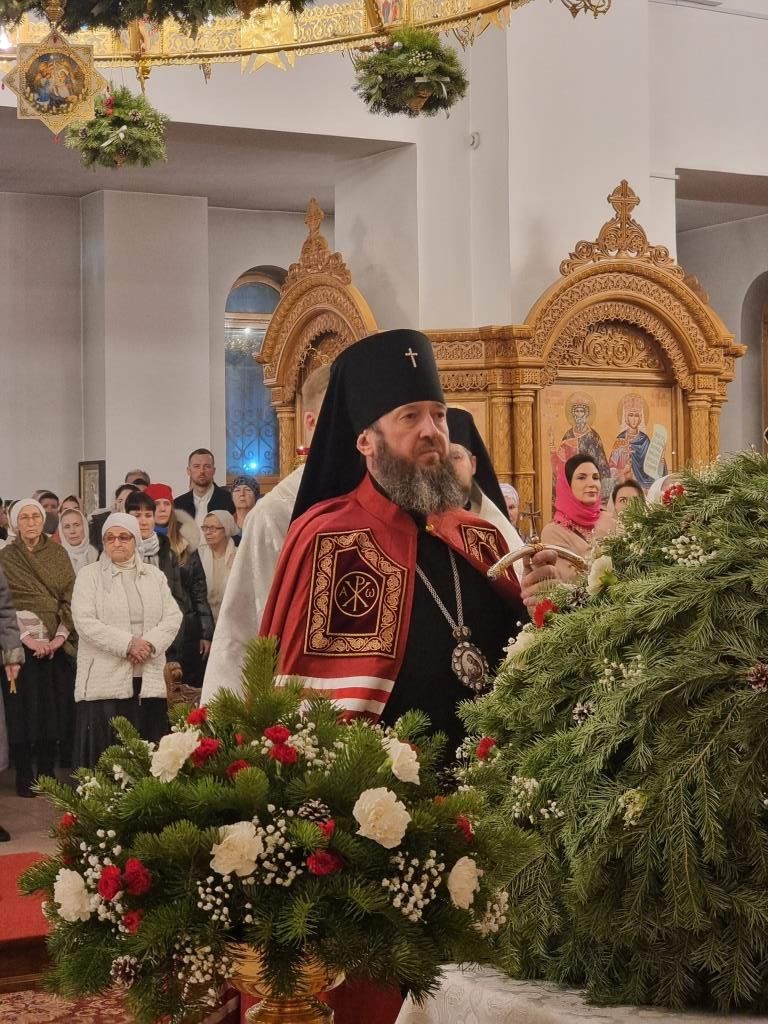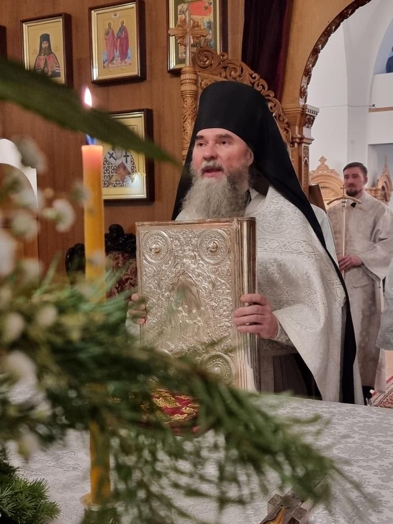 После окончания Божественной Литургии Архипастырь с духовенством и народом Божиим воспел славление Богомладенцу Еммануилу у праздничной иконы. В завершение праздничного богослужения архиепископ Амфилохий поздравил всех собравшихся с Рождеством Христовым и обратился к прихожанам и паломникам со словами святительского наставления: