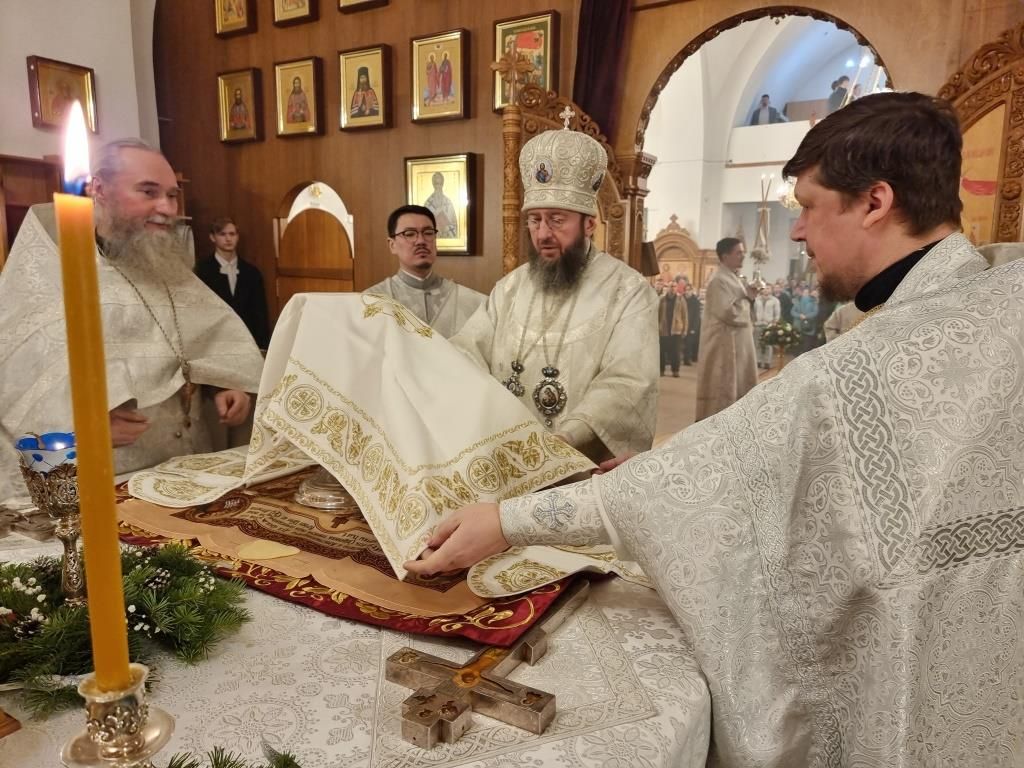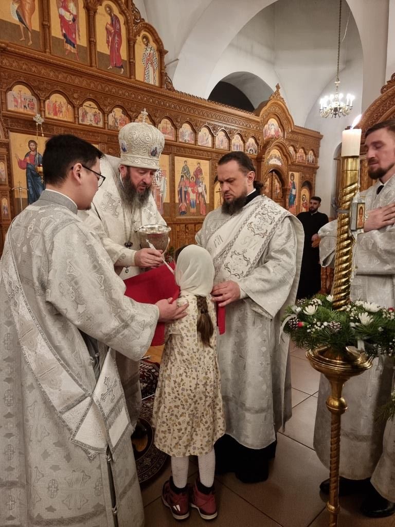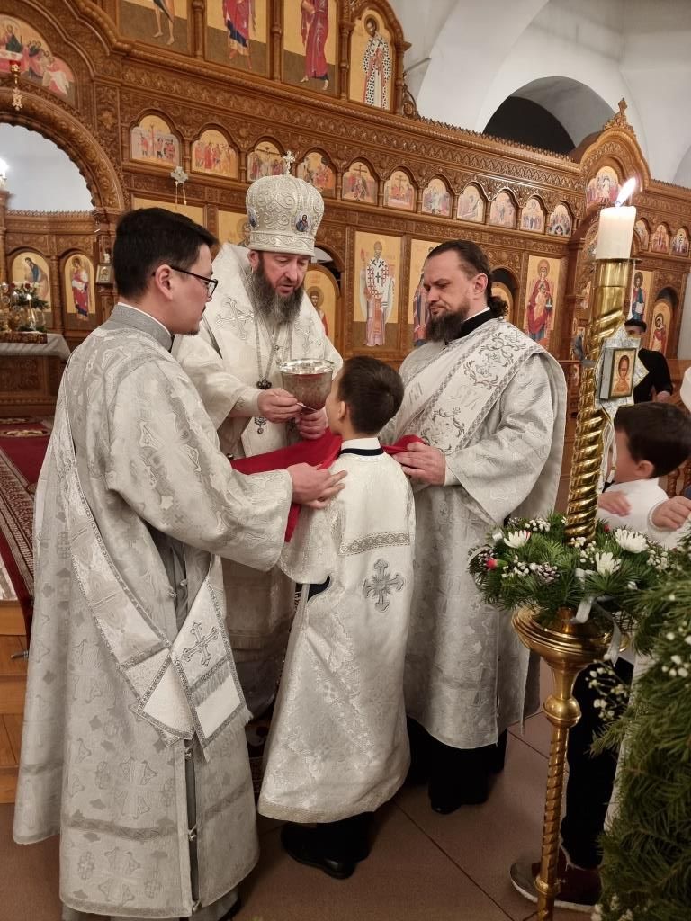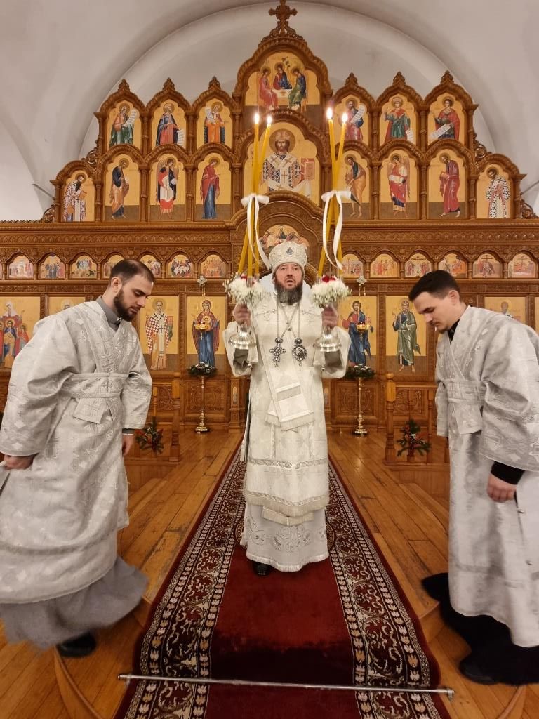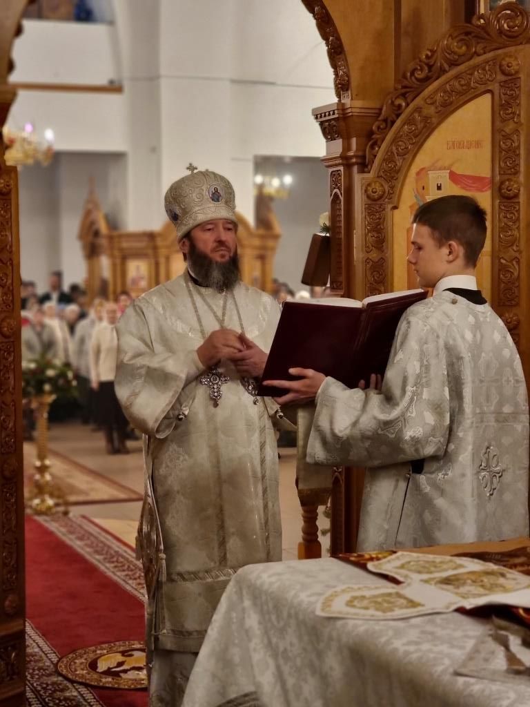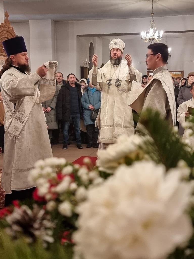 В рождественскую ночь в главном храме Восточного Казахстана, Андреевском кафедральном соборе города Усть-Каменогорска, Высокопреосвященнейший архиепископ Усть-Каменогорский и Семипалатинский Амфилохий возглавил служение Божественной Литургии святителя Василия Великого. Накануне в кафедральном соборе были совершены уставные богослужения Рождественского Сочельника и нáвечерия Рождества Христова. Перед началом ночной Божественной Литургии в соборе совершалась исповедь для желающих приобщиться Святых Христовых Таин в светлую рождественскую ночь.