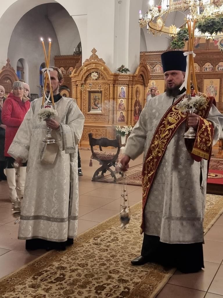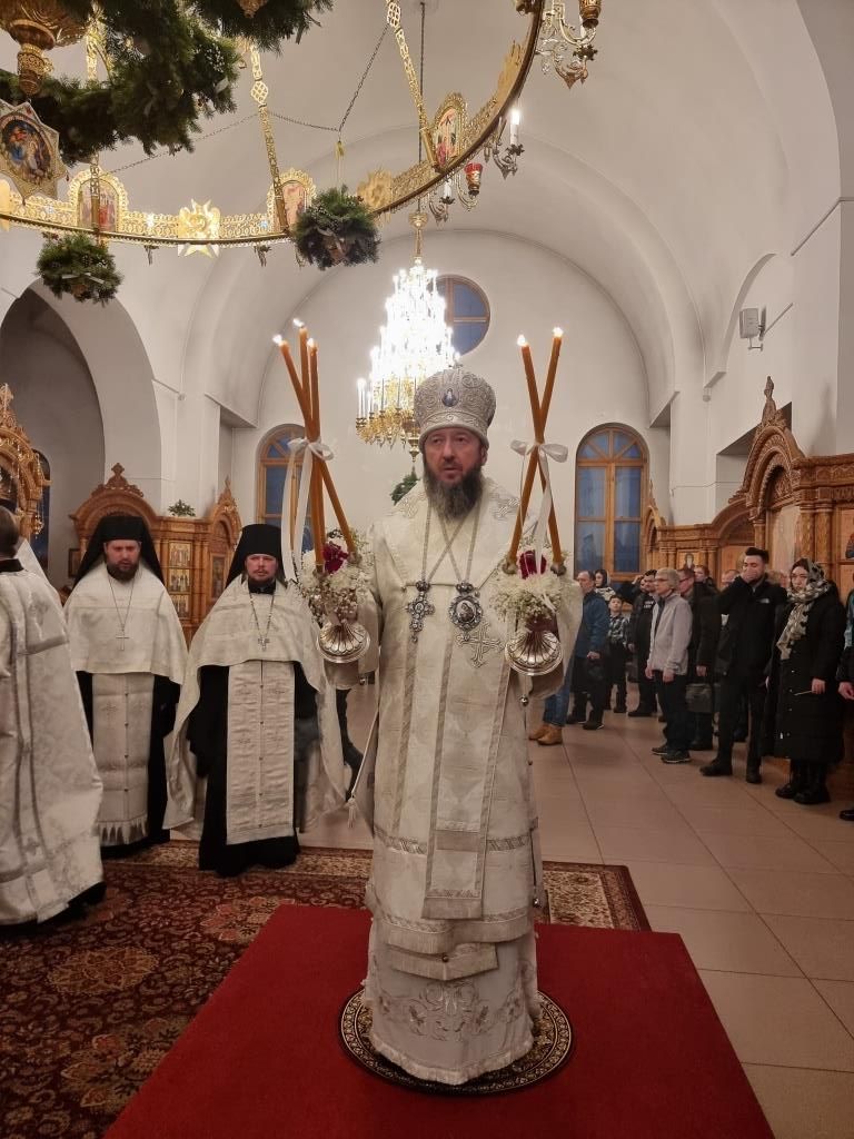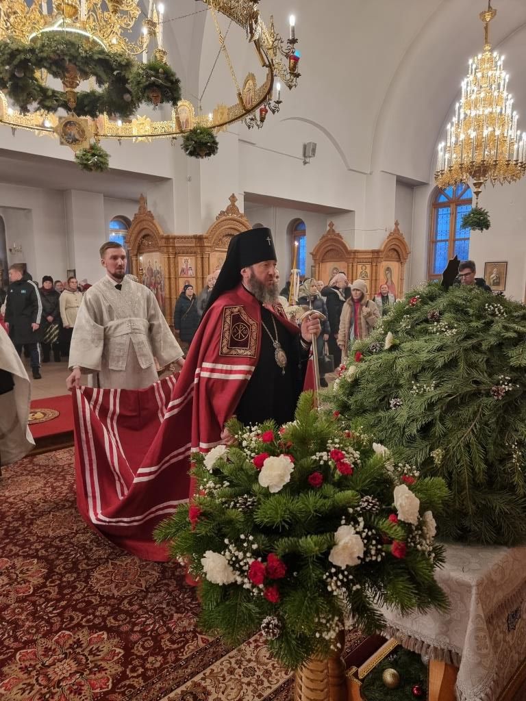 Вечером 7 января 2024 года Высокопреосвященнейший архиепископ Усть-Каменогорский и Семипалатинский Амфилохий совершил праздничную великую вечерню в Свято-Андреевском кафедральном соборе города Усть-Каменогорска. Его Высокопреосвященству сослужили: благочинный Усть-Каменогорского церковного округа иеромонах Силуан (Магилев), настоятель Зиновьевского храма города Усть-Каменогорска иеромонах Мефодий (Шевчук), клирики кафедрального собора иерей Роман Подрезов и иерей Константин Дьяков, ключарь Покровского собора города Усть-Каменогорска иерей Иоанн Толмачев, протодиакон Андрей Дудник, диакон Кирилл Нарушин.
