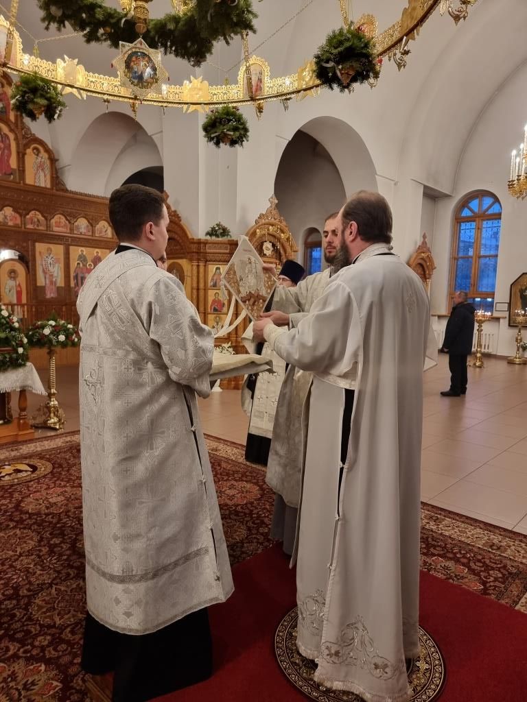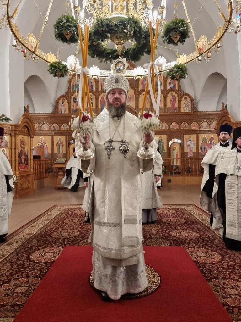 В завершение вечернего богослужения Владыка архиепископ по традиции принял поздравления с праздником Рождества Христова от духовенства и мирян.