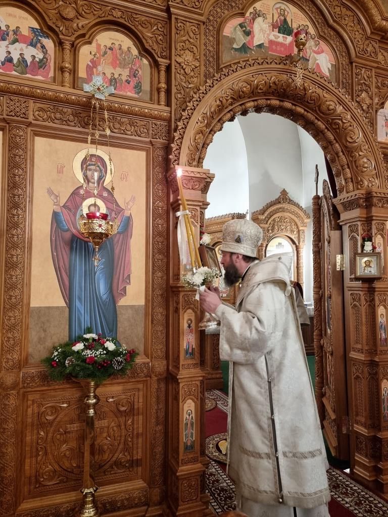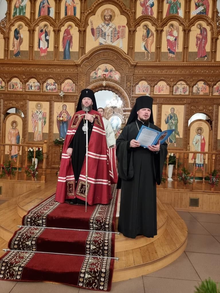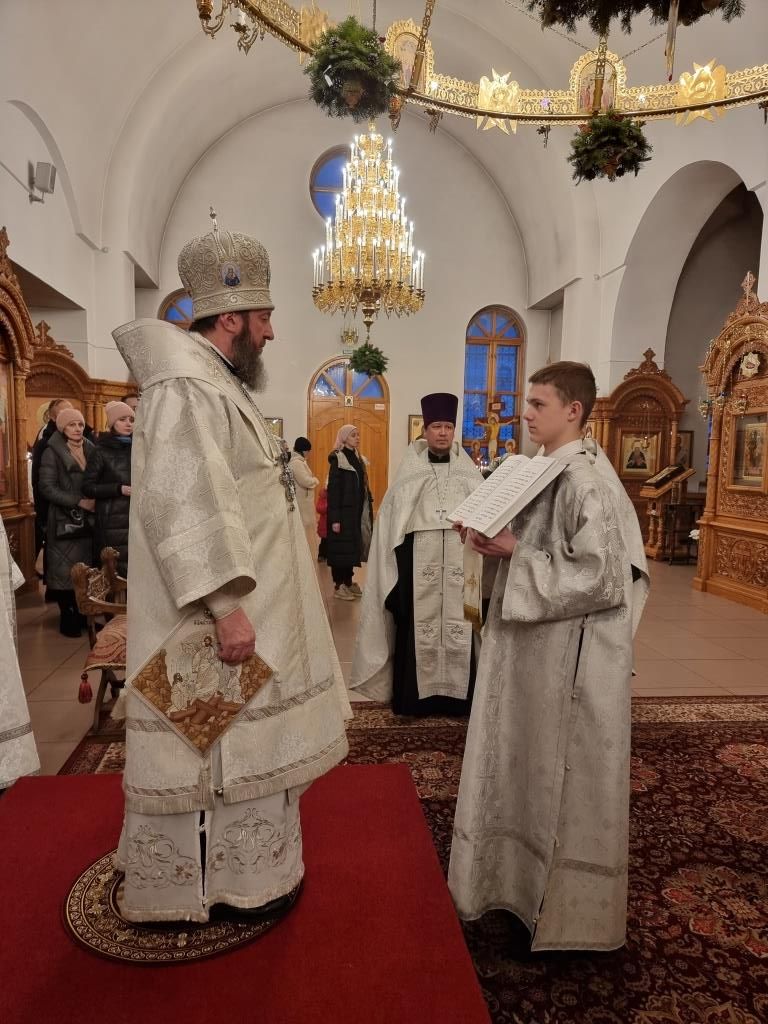 По окончании вечерни иеромонах Силуан (Магилев) огласил Рождественское послание архиепископа Амфилохия духовенству, монашествующим и боголюбивой пастве Усть-Каменогорской и Семипалатинской епархии.