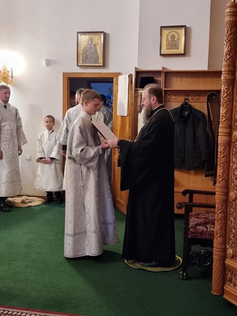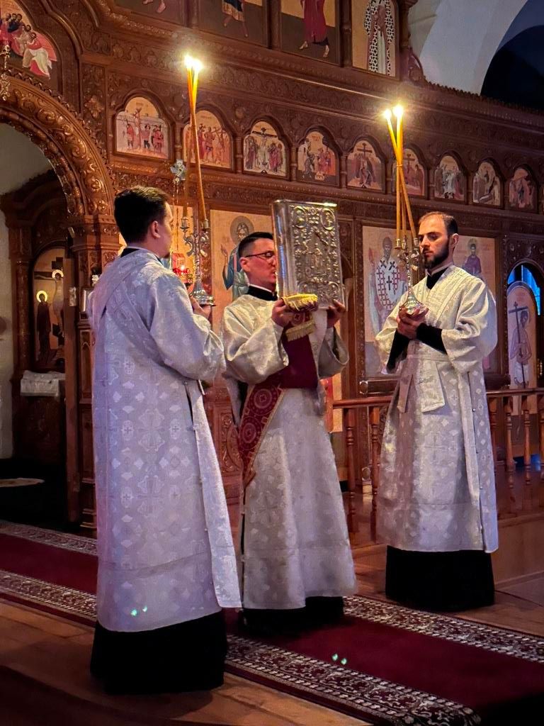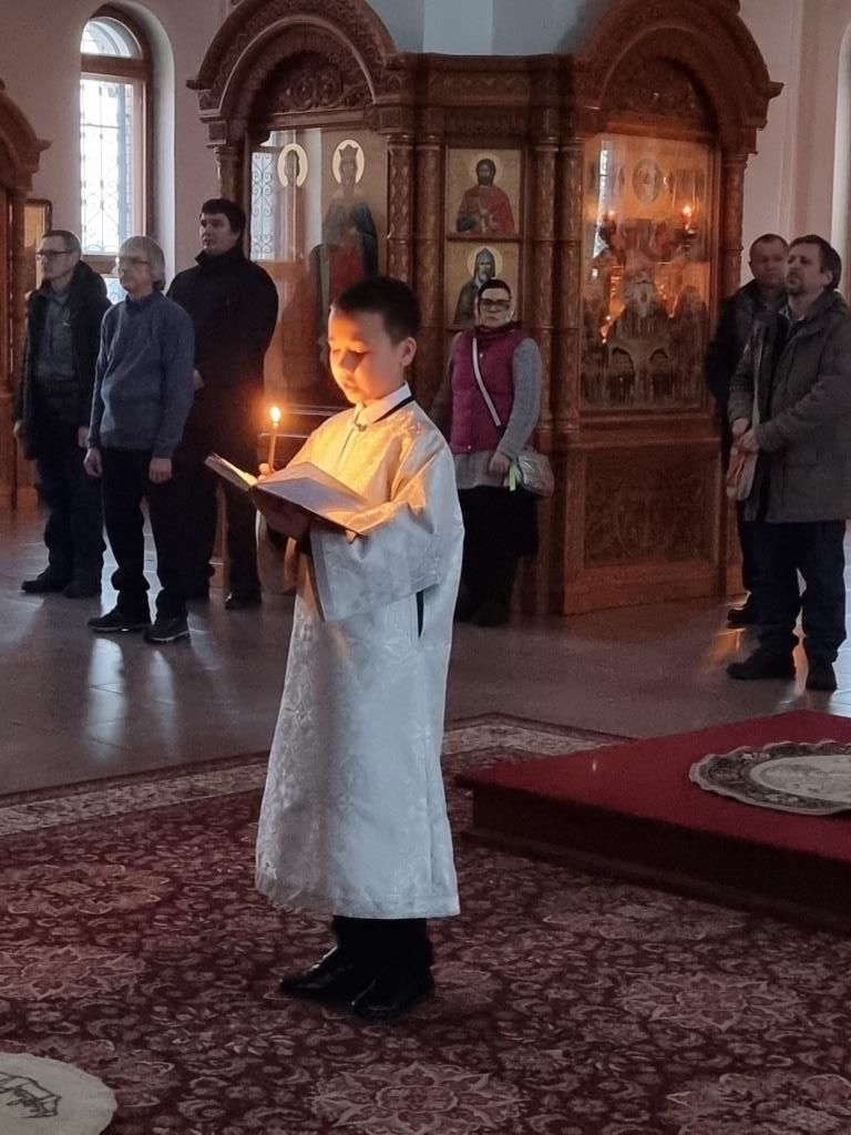 Песнопения праздничного вечернего богослужения исполнял хор Андреевского собора под управлением регента Н. Романцовой. За богослужением молились прихожане собора, насельники Свято-Троицкого мужского монастыря города Усть-Каменогорска и сотрудники епархиального управления. После чтения праздничного евангельского зачала архиепископ Амфилохий помазал клир и народ Божий освященным елеем.