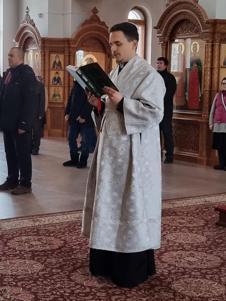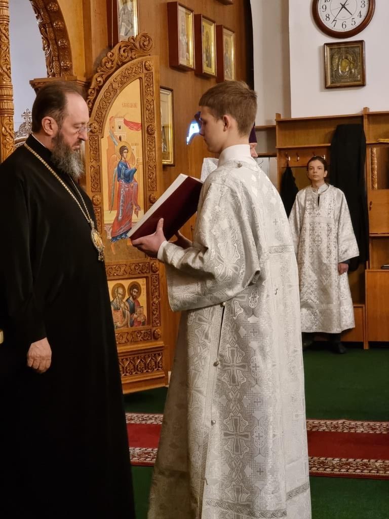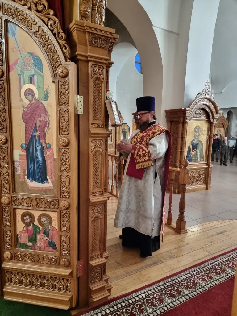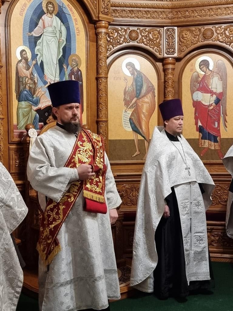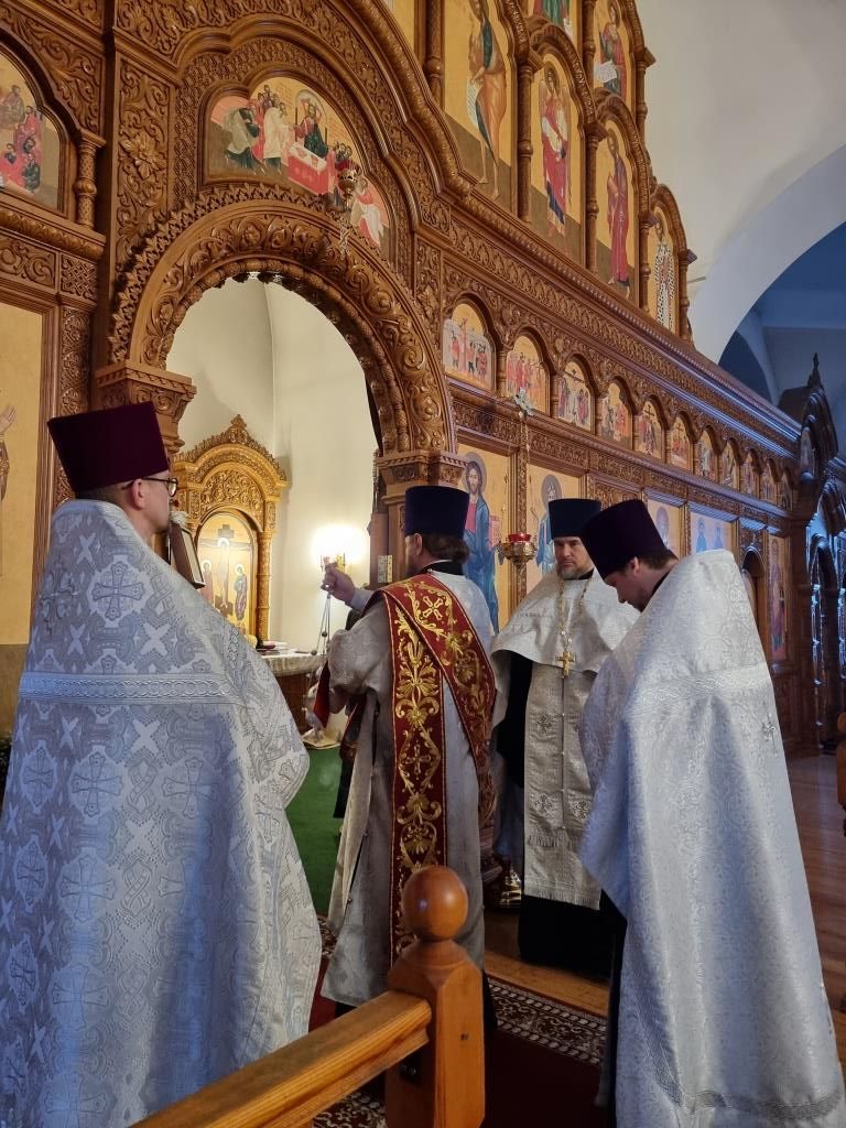 Владыке архиепископу сослужили: ключарь кафедрального собора иеромонах Никодим (Авдеев), клирики собора иерей Виталий Адаменков, иерей Роман Подрезов, иерей Константин Дьяков, секретарь епархии диакон Илия Кван, протодиакон Андрей Дудник.