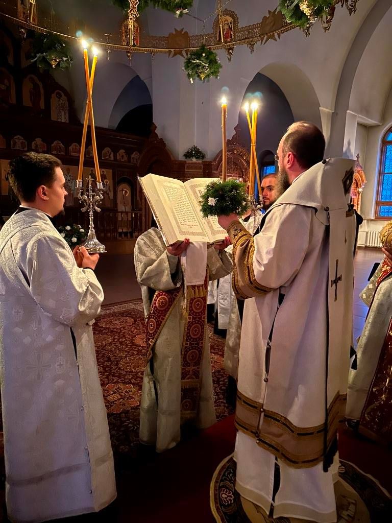 Высокопреосвященнейший архиепископ Усть-Каменогорский и Семипалатинский Амфилохий возглавил служение Всенощного бдения в Андреевском кафедральном соборе города Усть-Каменогорска накануне великого праздника Обрезания Господня и дня памяти Василия Великого.