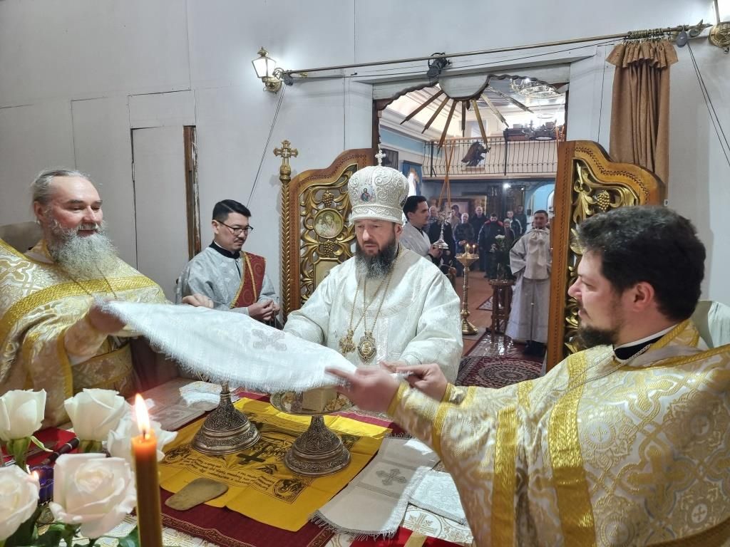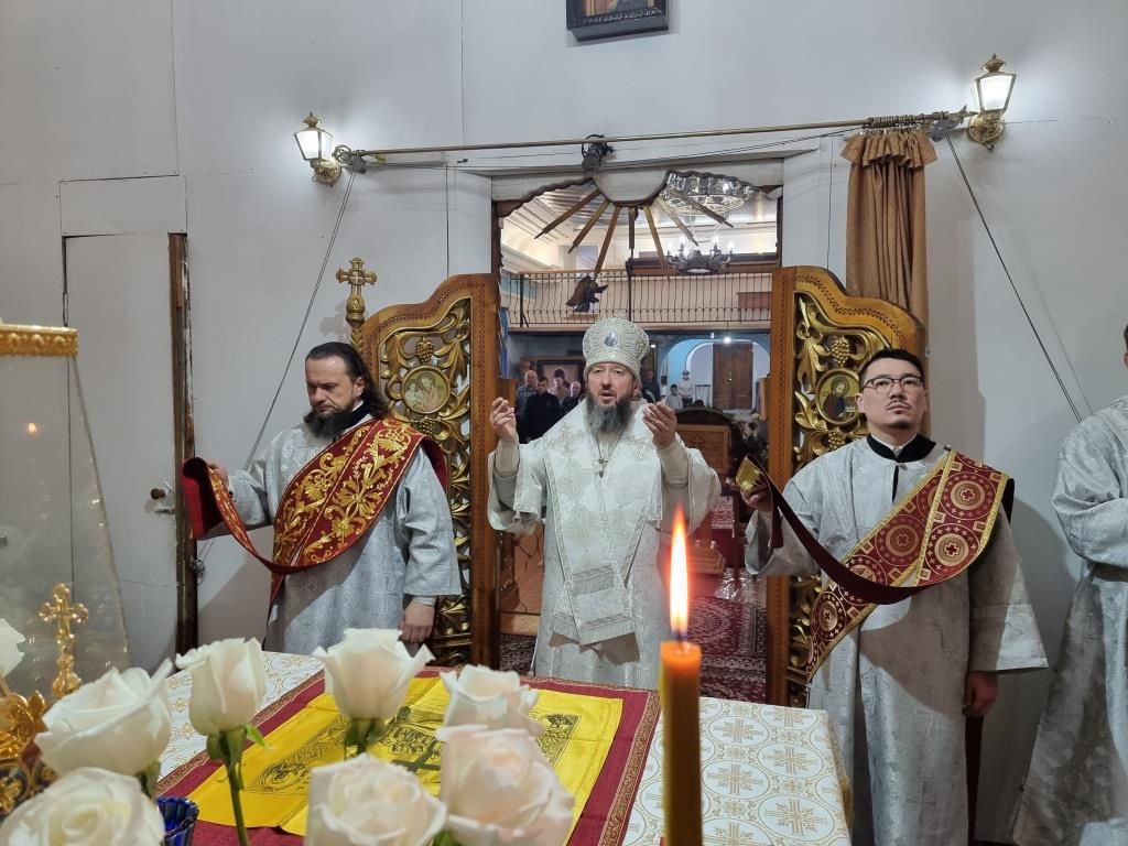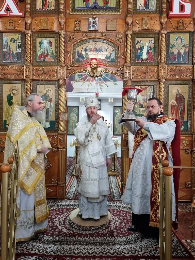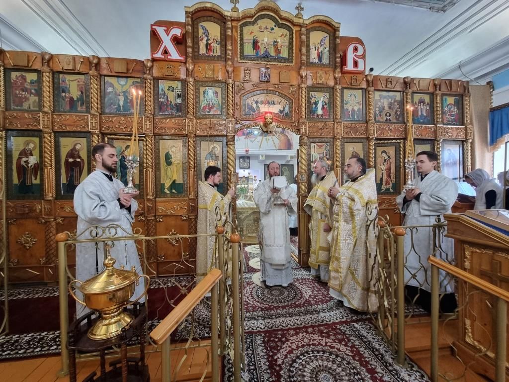 В воскресный день после праздника Крещения Господня архиепископ Усть-Каменогорский и Семипалатинский Амфилохий посетил православную общину Богородице-Рождественского храма города Усть-Каменогорска, где совершил праздничную Божественную Литургию святителя Иоанна Златоуста. Архипастырю сослужили: благочинный Усть-Каменогорского церковного округа иеромонах Силуан (Магилев), настоятель Богородице-Рождественского храма иеромонах Севастиан (Андрющенко), ключарь Андреевского кафедрального собора иеромонах Никодим (Авдеев), секретарь епархии диакон Илия Кван, протодиакон Андрей Дудник.