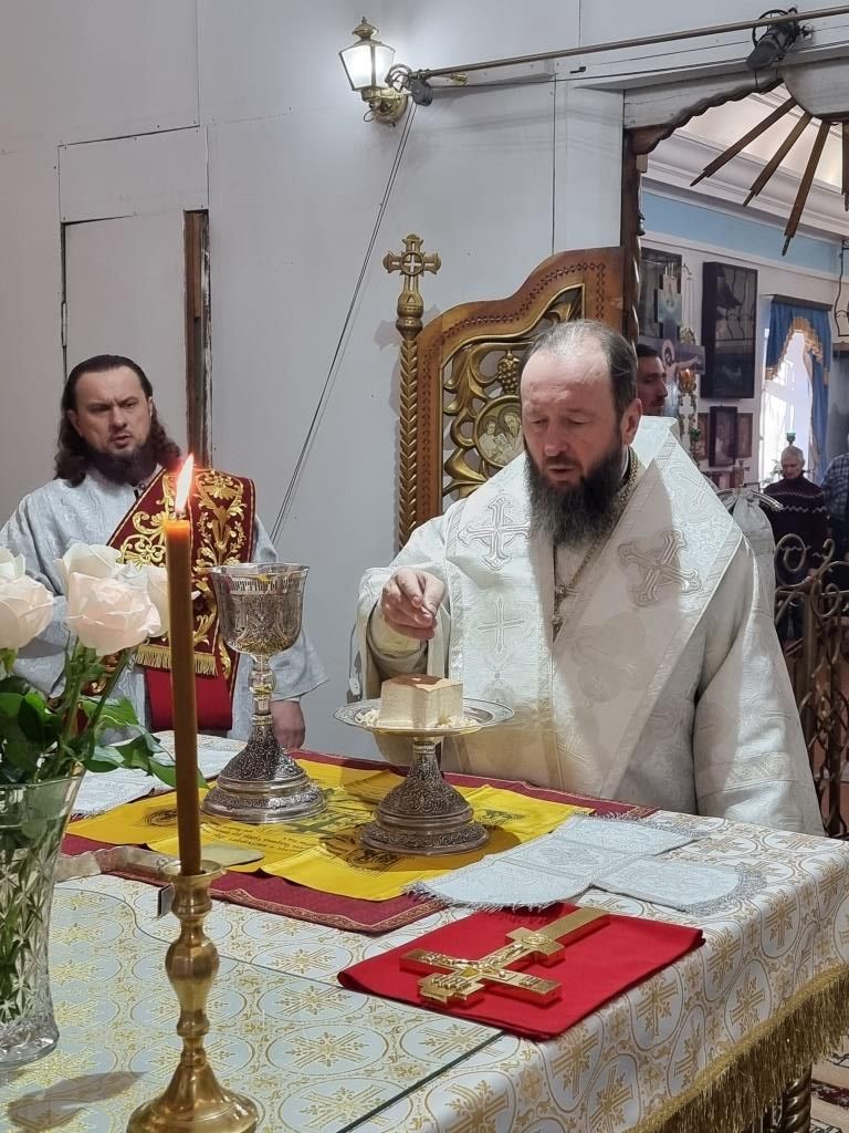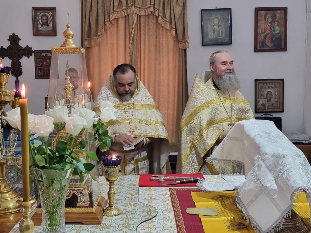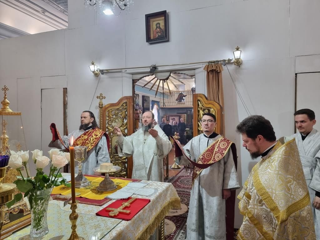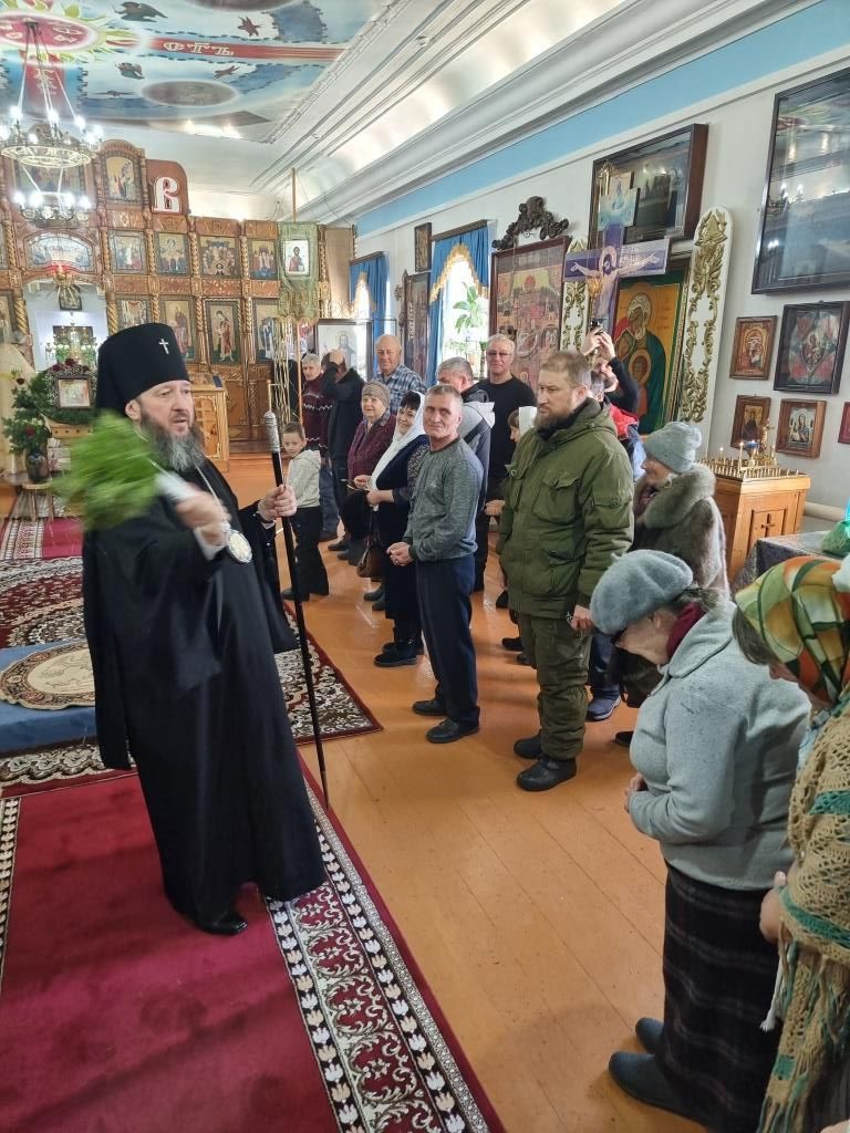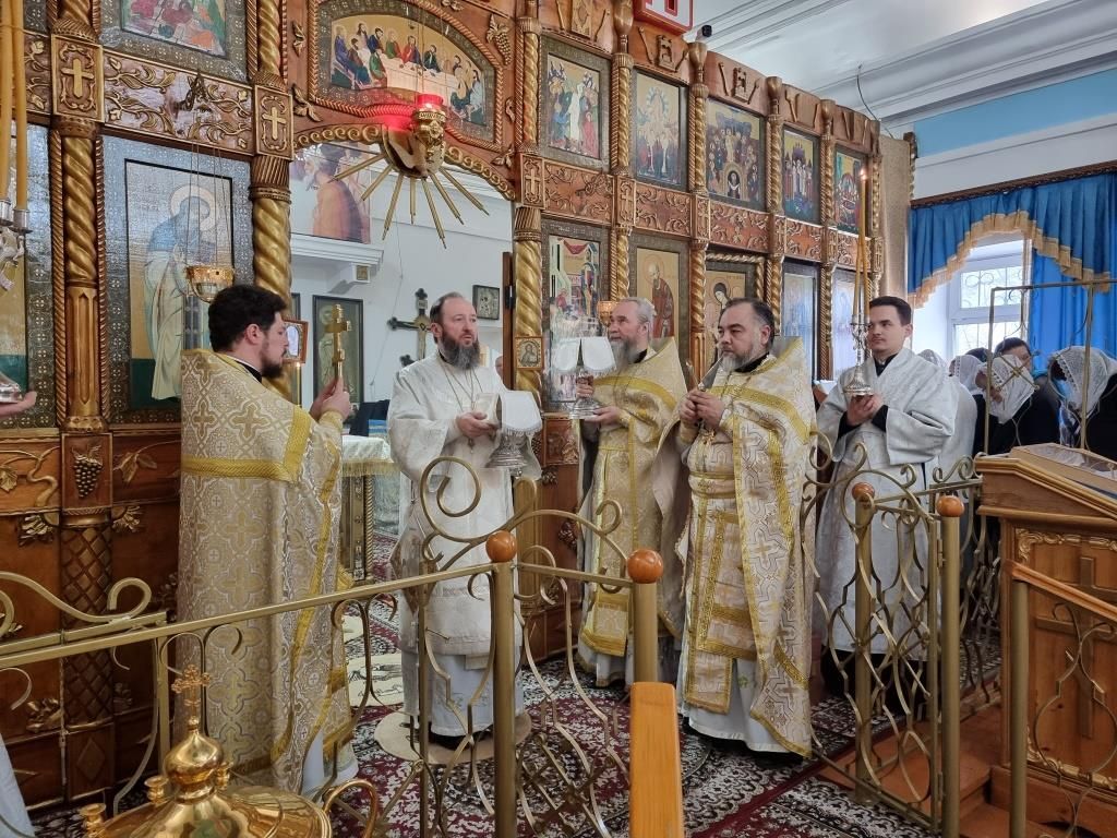 После проповеди Его Высокопреосвященство призвал Божие благословение на паству и окропил прихожан великой агиасмой. Богослужение завершилось братской трапезой.