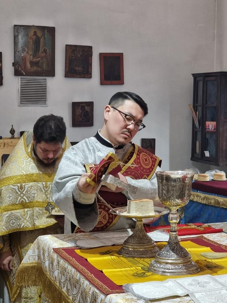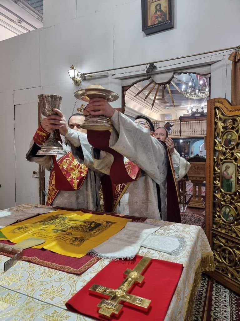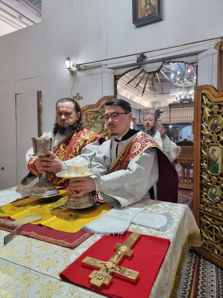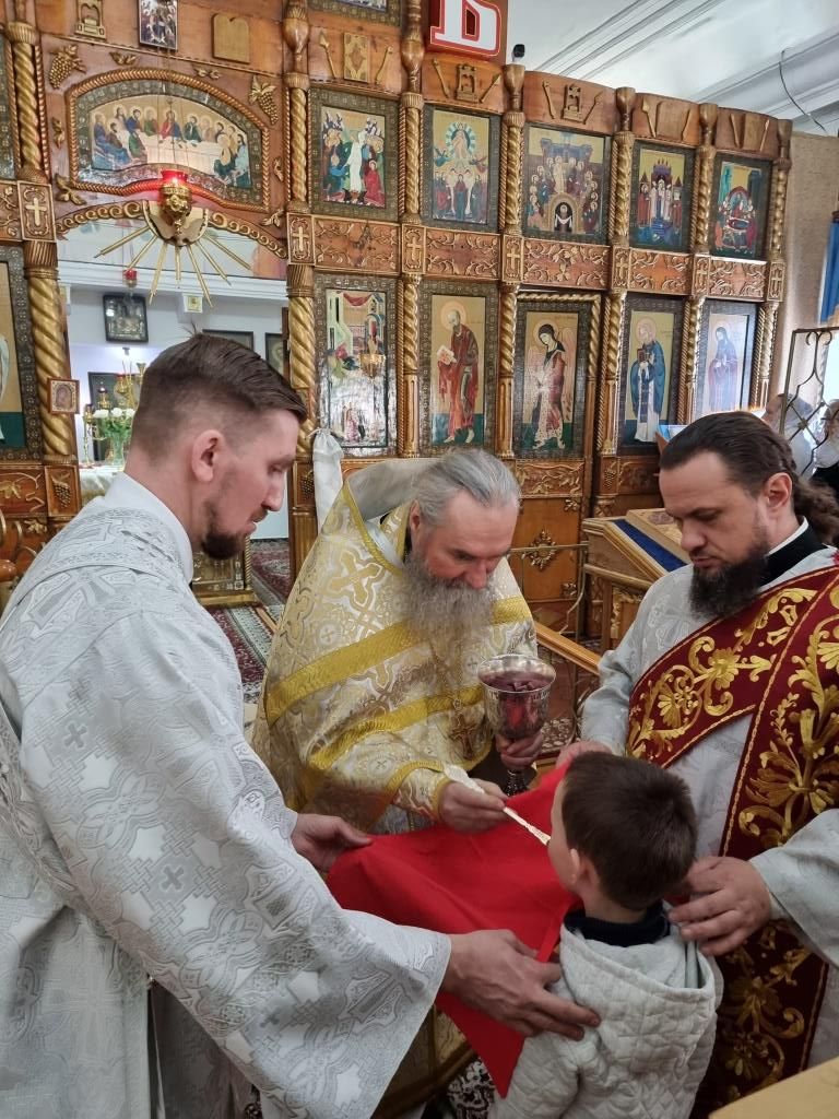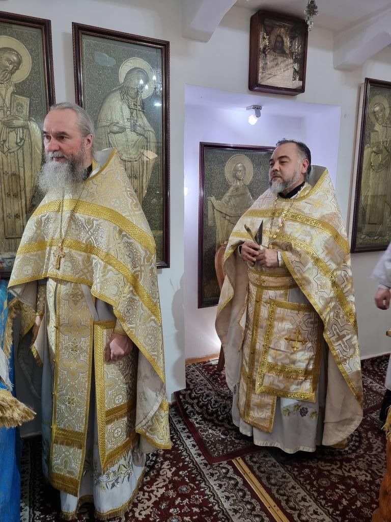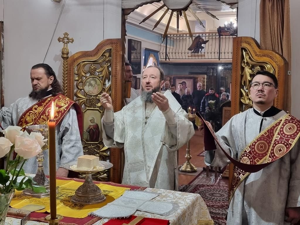 После проповеди Его Высокопреосвященство призвал Божие благословение на паству и окропил прихожан великой агиасмой. Богослужение завершилось братской трапезой.