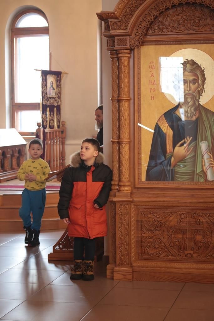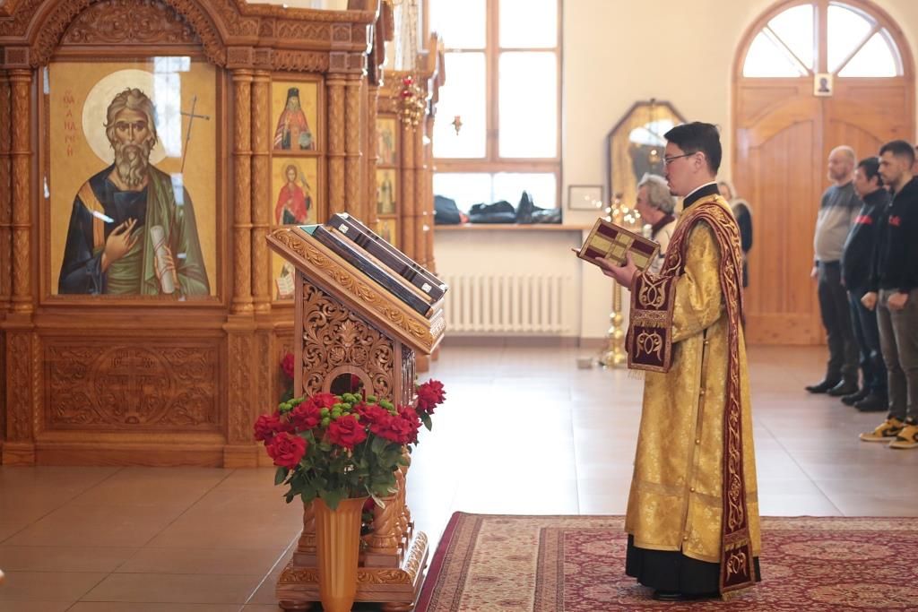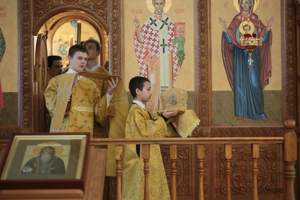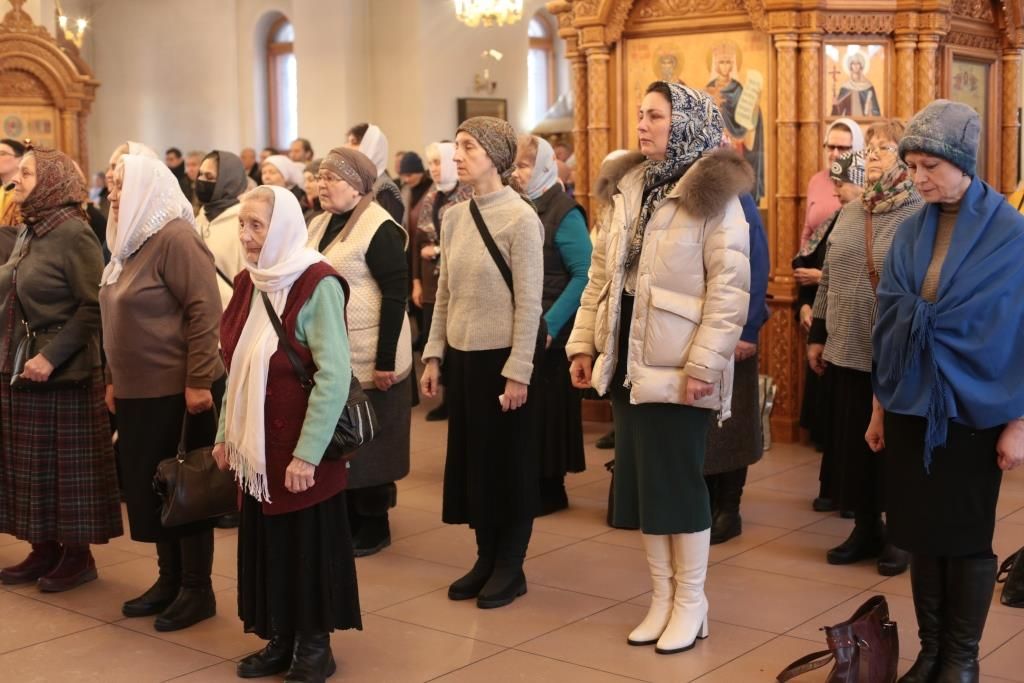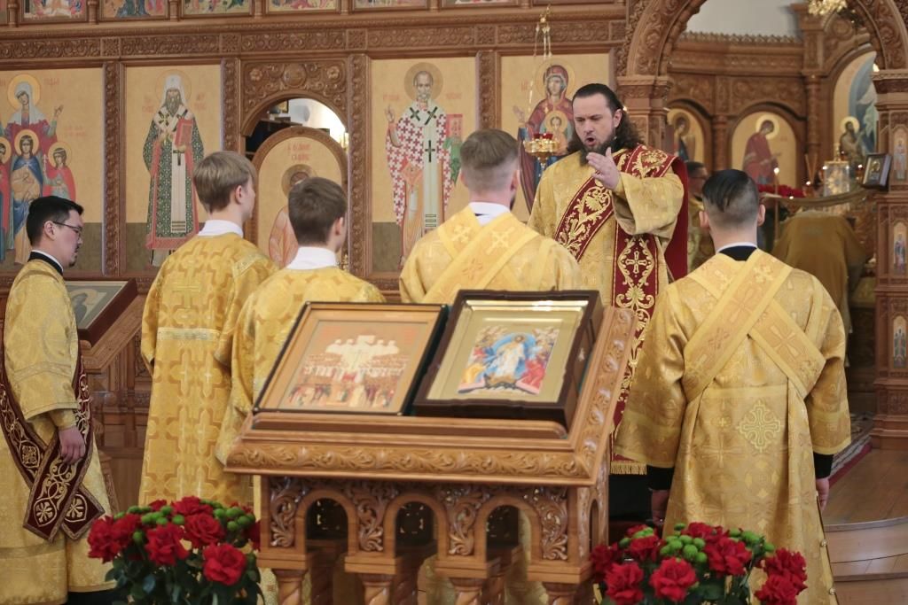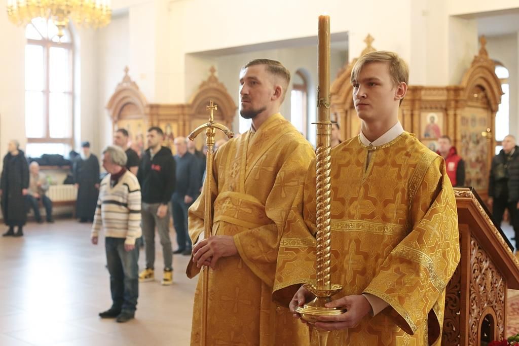 Песнопения Литургии и праздника святых новомучеников исполнял хор Андреевского кафедрального собора. За воскресным богослужением молились сотрудники епархиального управления, насельники Свято-Троицкого мужского монастыря города Усть-Каменогорска, прихожане кафедрального собора, преподаватели и воспитанники Центральной воскресной школы. Перед причастием мирян проповедовал священник Константин Дьяков.
