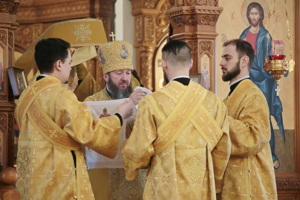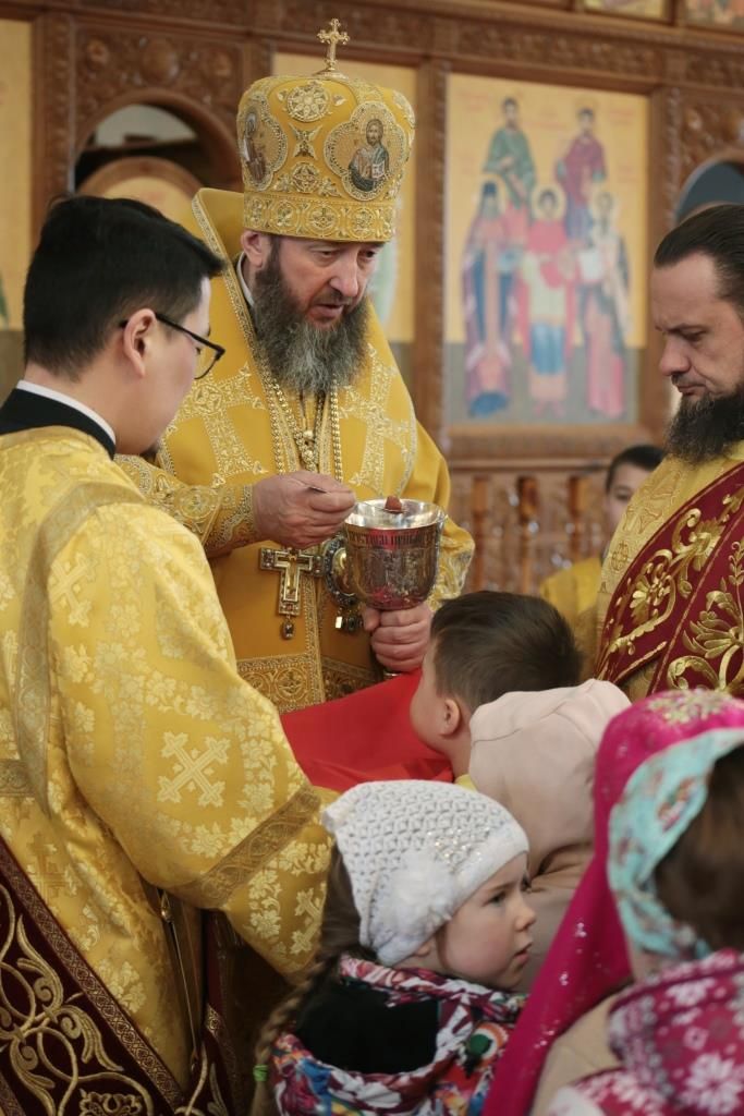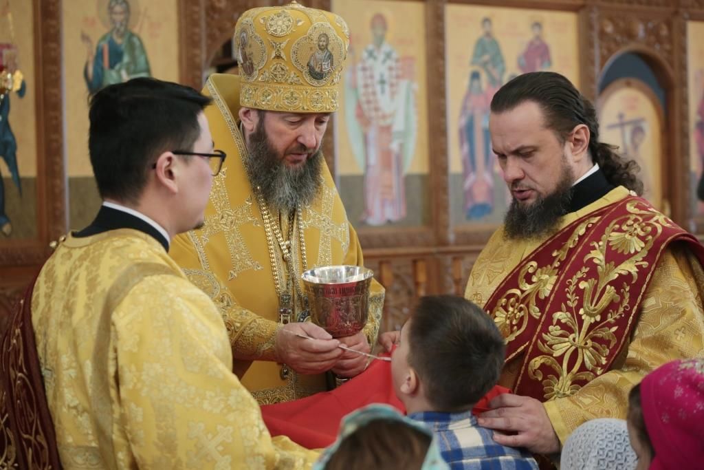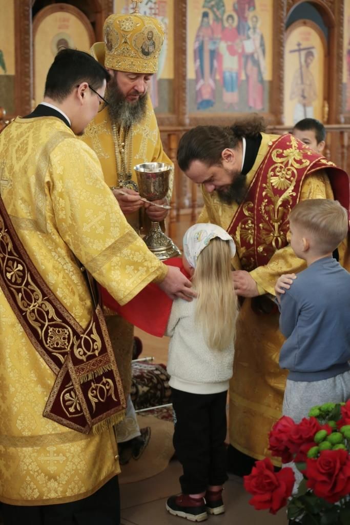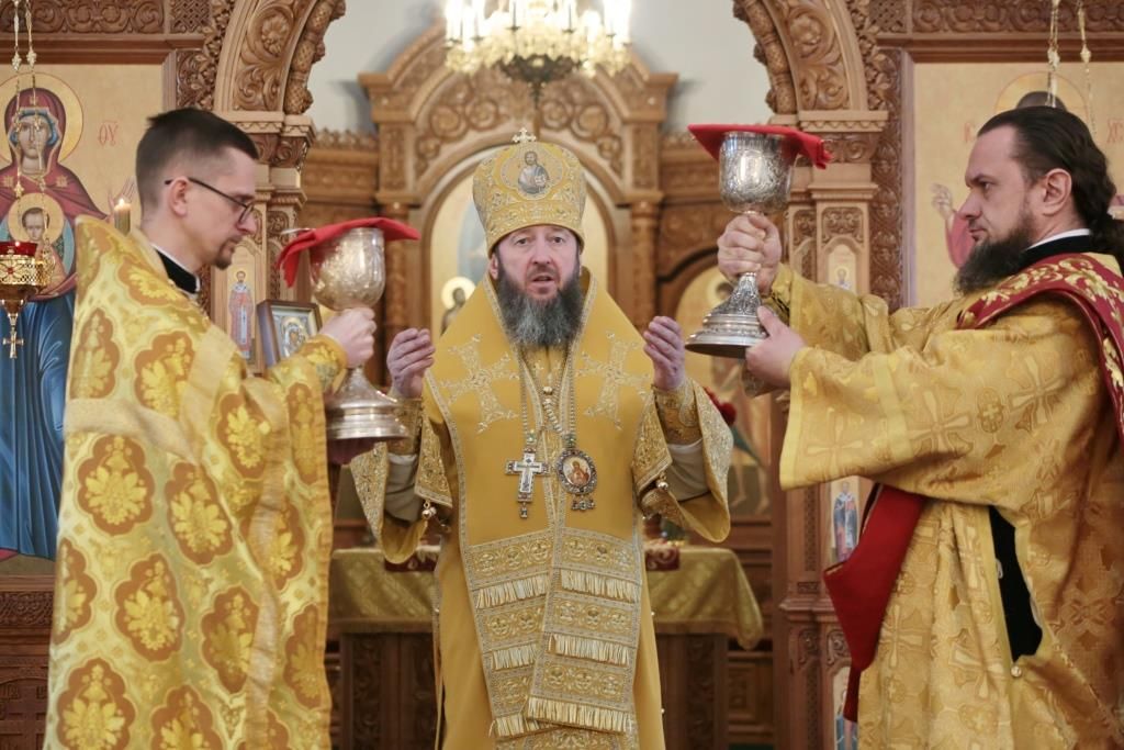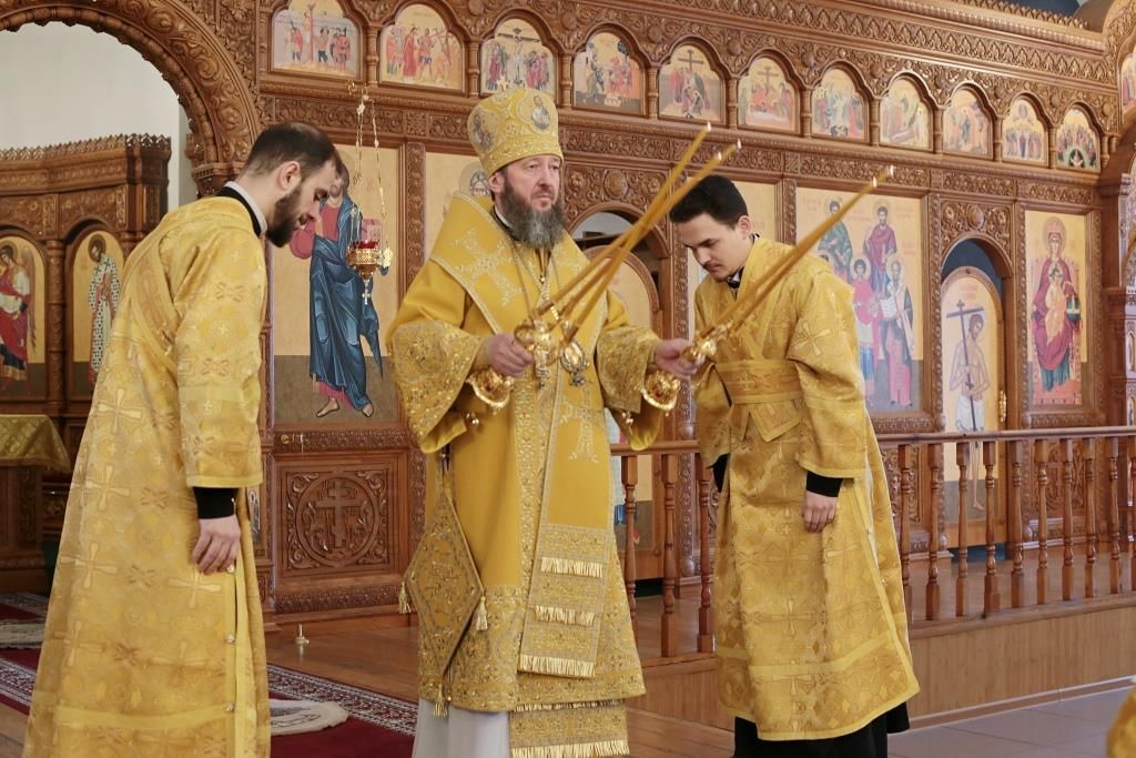 Воскресным утром Высокопреосвященнейший архиепископ Усть-Каменогорский и Семипалатинский Амфилохий возглавил служение Божественной Литургии святителя Иоанна Златоуста в Андреевском кафедральном соборе епархиального центра. Владыке архиепископу сослужили: ключарь Андреевского кафедрального собора иеромонах Никодим (Авдеев), клирик собора иерей Константин Дьяков, секретарь епархии диакон Илия Кван, протодиакон Андрей Дудник.
