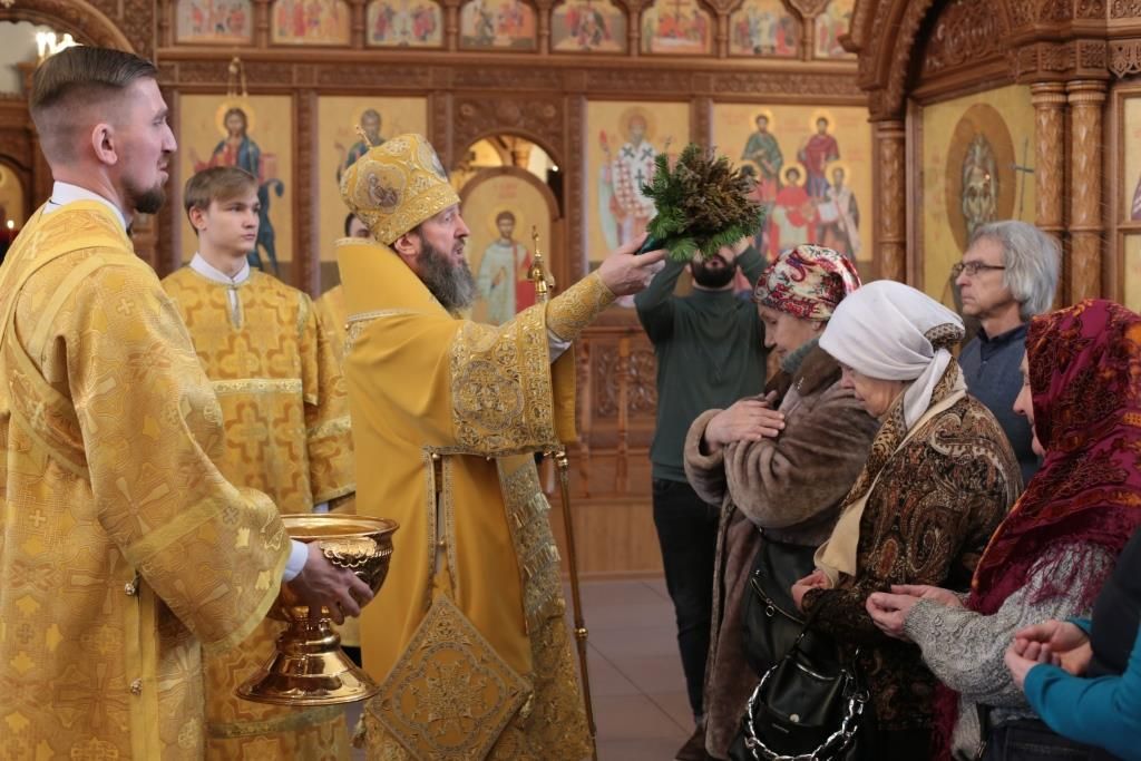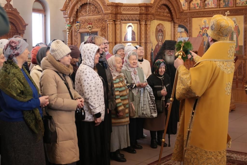 После проповеди Владыка архиепископ призвал Божие благословение на паству и окропил прихожан святой водой.