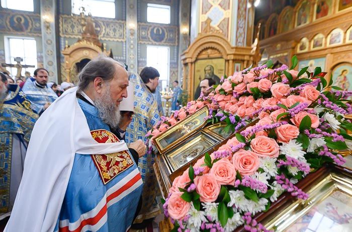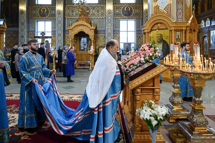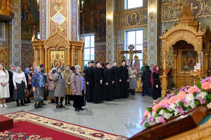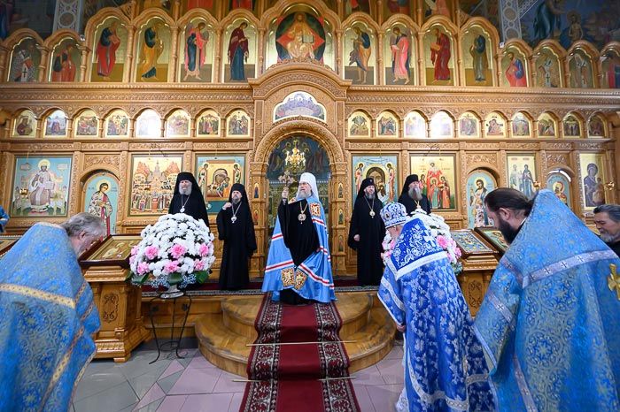 За богослужением возносились сугубые молитвы о приснопамятных казахстанских иерархах: – архиепископе Софонии (Сокольском, †1877 г.) и епископе Никоне (Богоявленском, †1897 г.), погребенных у алтаря Софийского собора, и подвижнике благочестия митрополите Иосифе (Чернове, †1975 г.), чья гробница находится в Софийском соборе; сугубо поминались настоятельницы, насельницы, строители, жертвователи и благоукрасители обители, преставившиеся ко Господу.