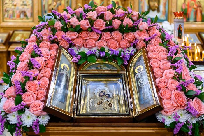 На аналое в центре храма находился келейный образ, принадлежавший приснопамятному старцу-святителю митрополиту Иосифу (Чернову) – Иверская икона Божией Матери.