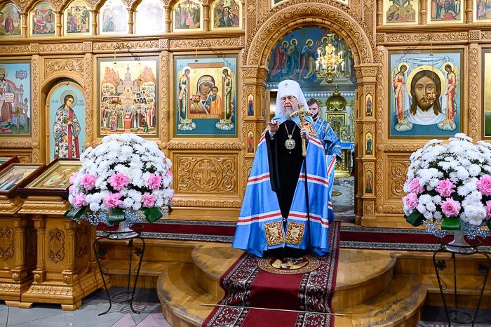 После славления митрополит Александр поздравил архипастырей, матушку игумению, духовенство и прихожан с престольным праздником, воскресным днем, открывшим собой подготовительный период к Великому посту, и обратился к собравшимся со словом поучения.