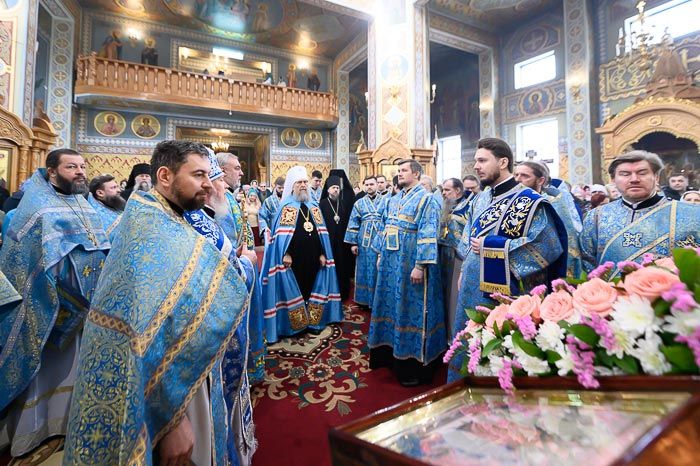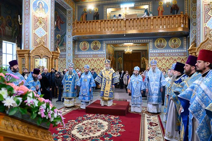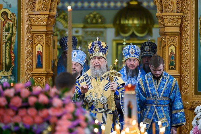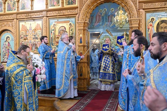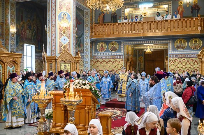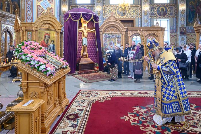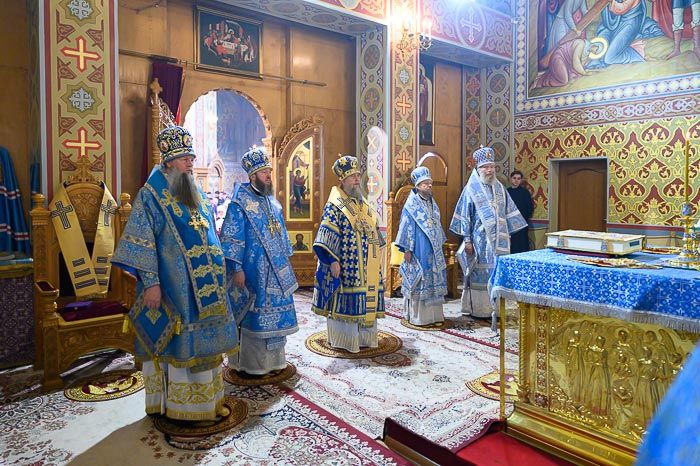 В Софийском соборе Иверско-Серафимовского женского монастыря города Алма-Аты, где пребывает чтимый список с явленной Иверской иконы Божией Матери, праздничную Божественную Литургию возглавил митрополит Астанайский и Казахстанский Александр.