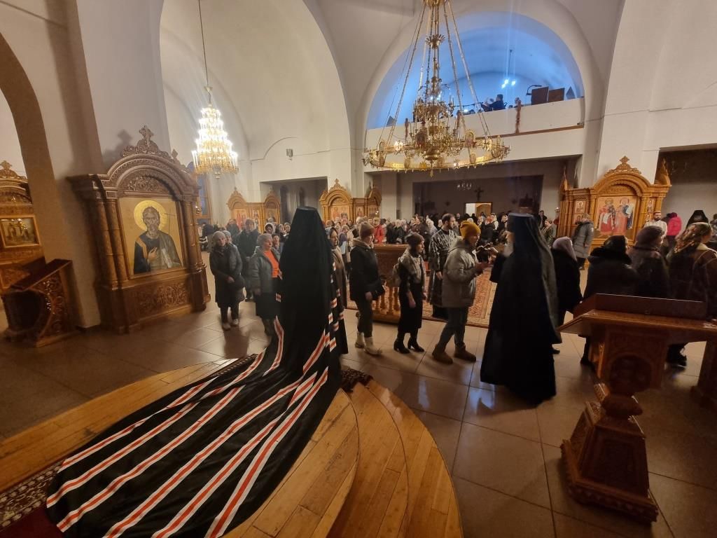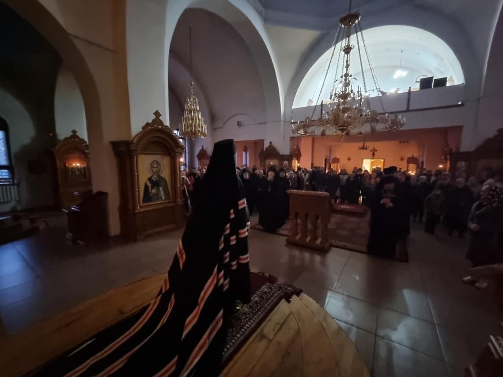 После пения великого прокимна и закрытия Царских врат духовенство переоблачилось в великопостные черные ризы. После отпуста вечерни Владыка Амфилохий произнёс слова назидания и прочитал молитву на начало Святой Четыредесятницы.