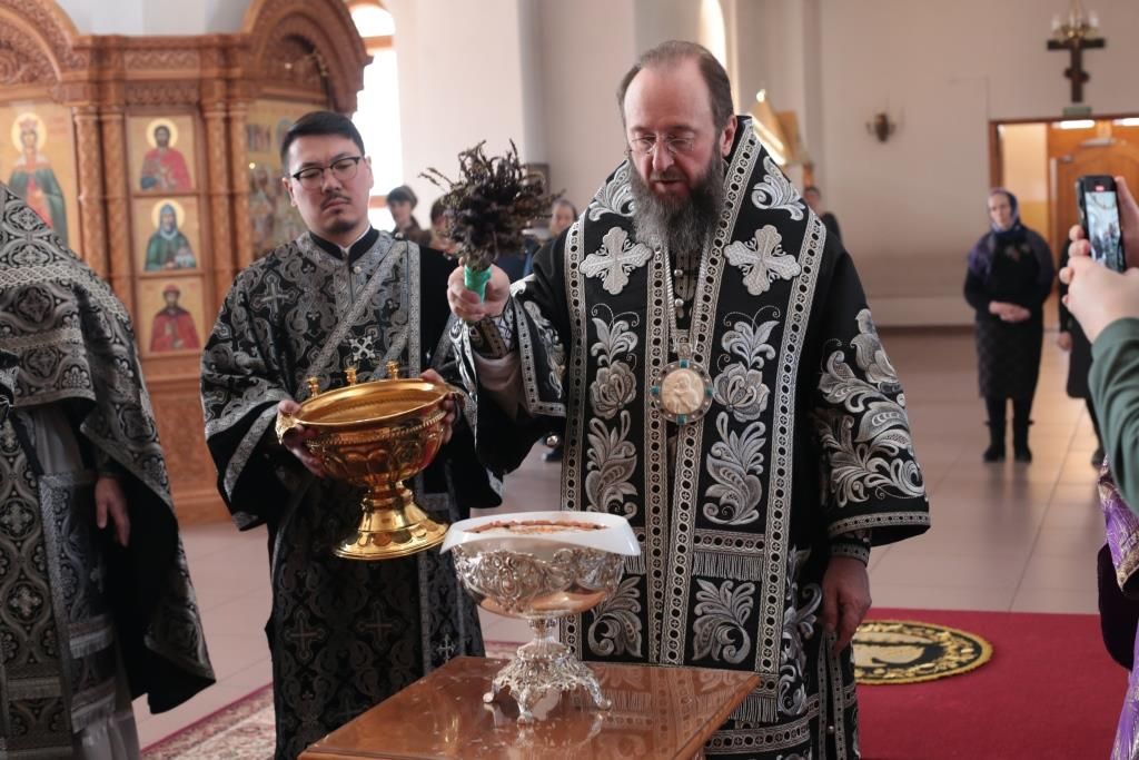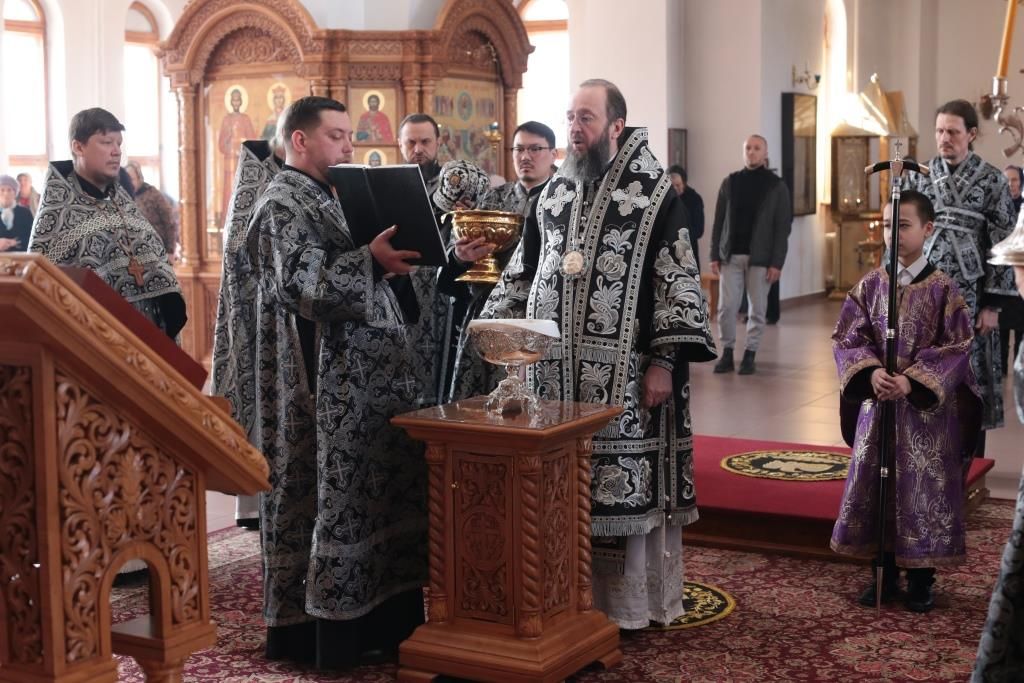 Управляющий Усть-Каменогорской и Семипалатинской епархией Высокопреосвященнейший архиепископ Амфилохий совершил Божественную Литургию Преждеосвященных Даров в главном храме Рудного Алтая. Владыке архиепископу сослужили клирики собора.