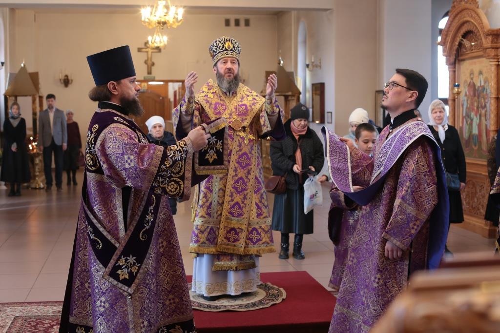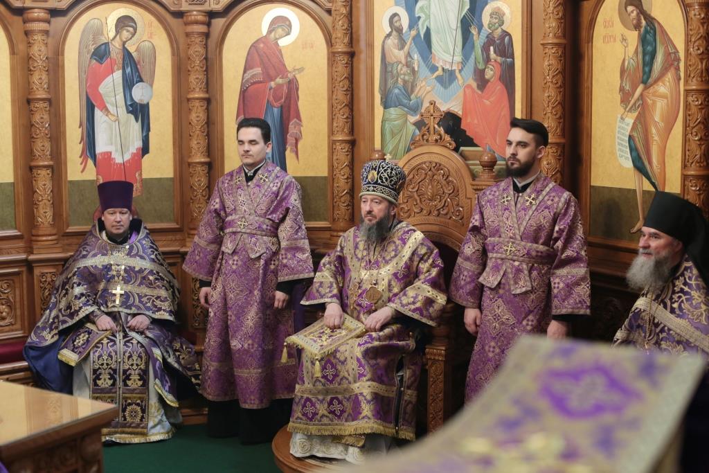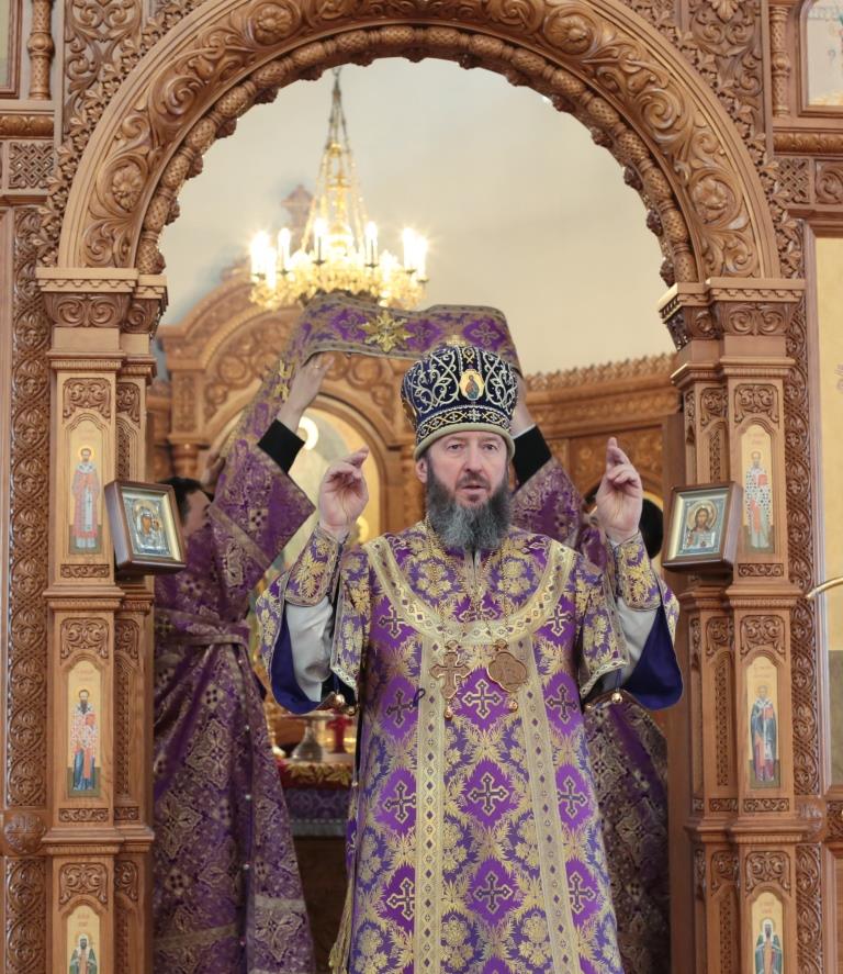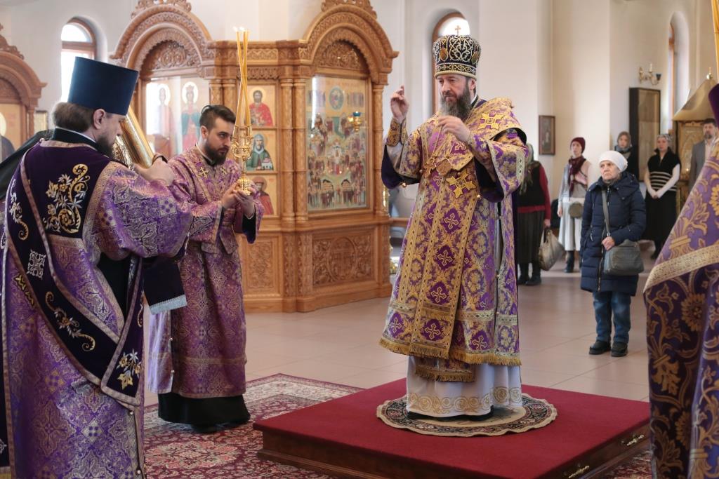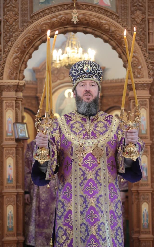 После окончания Божественной Литургии Владыка Амфилохий поздравил всех собравшихся с окончанием первой седмицы Святой Четыредесятницы и обратился к молящимся со словами поучения.